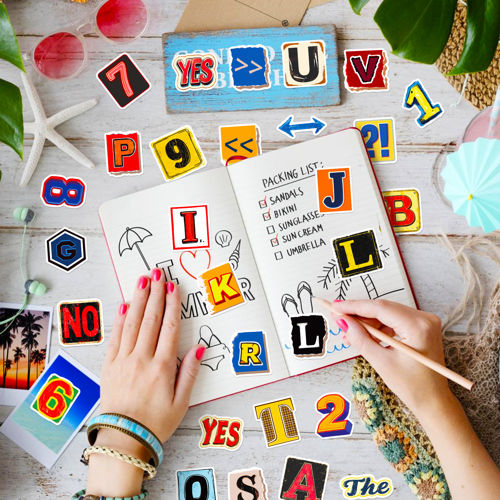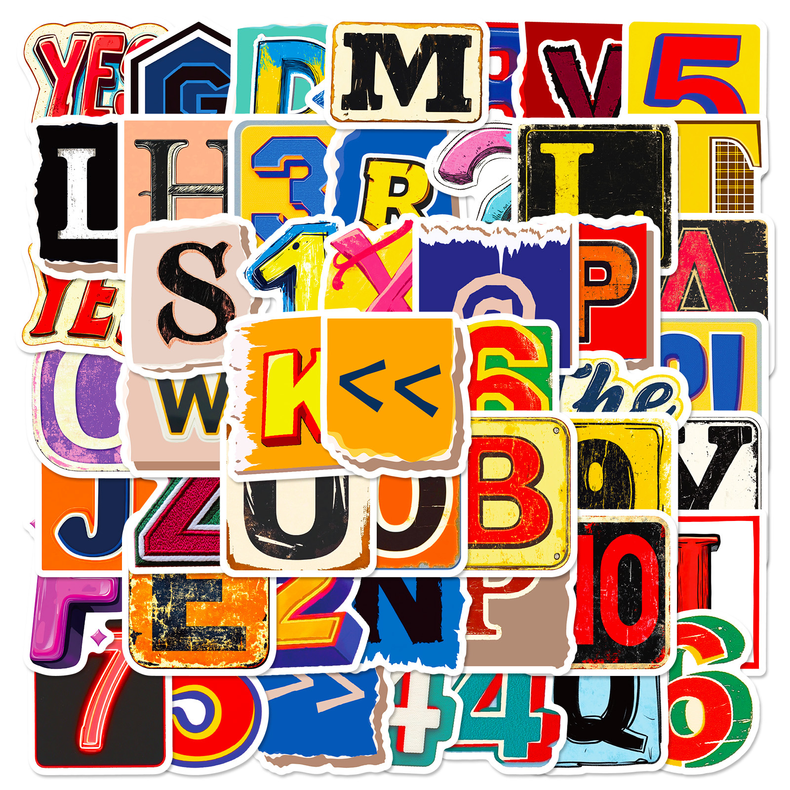 50 창조적 인 명암 컬러 복고풍 영어 편지 낙서 스티커 DIY 전화 쉘 스케이트 보드 헬멧 장식 스티커스토어 가기