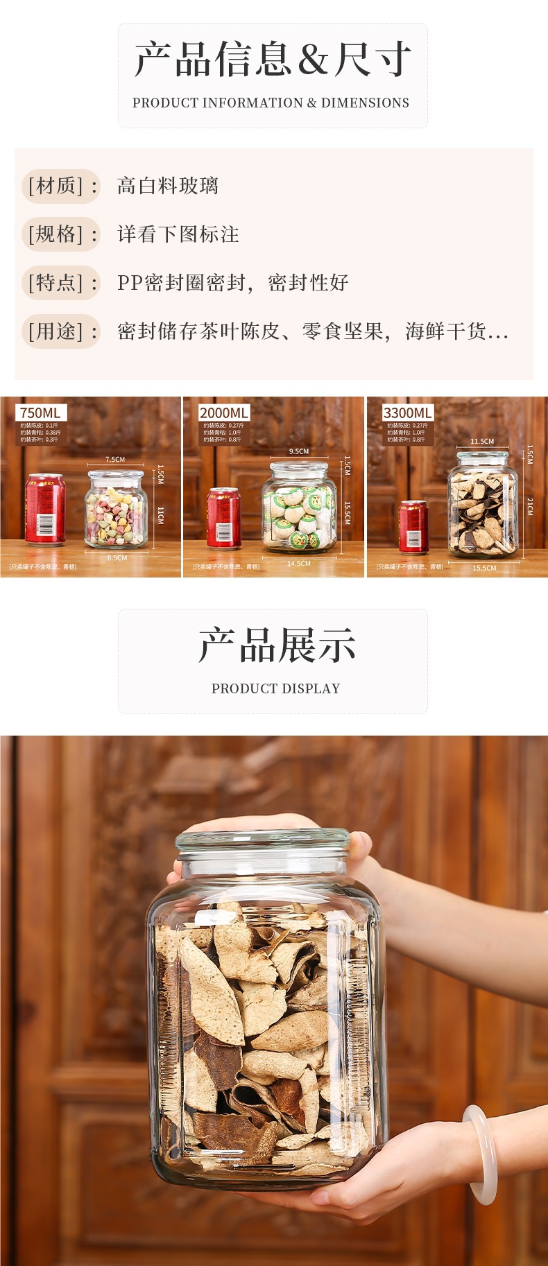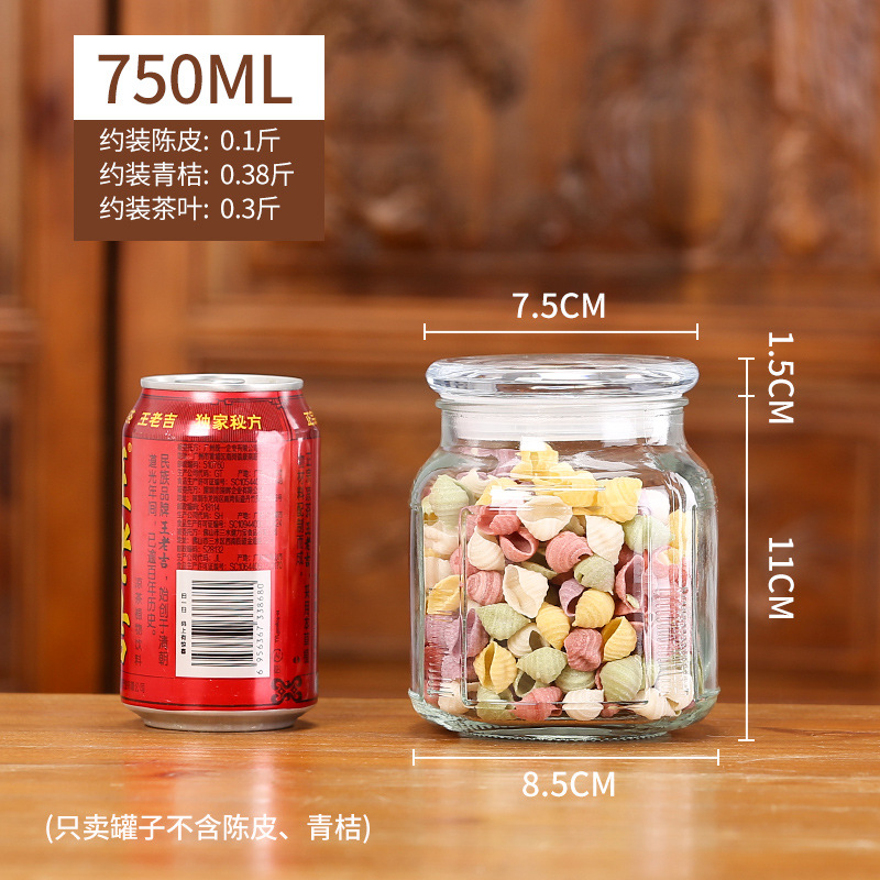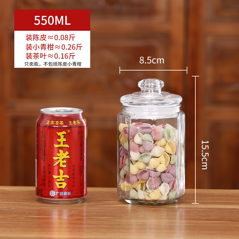유리 병 커피 콩 구연산 껍질 봉인 항아리 뚜껑 팔각형 병 가정용 의약 재료 저장 항아리 대형 차 항아리스토어 가기