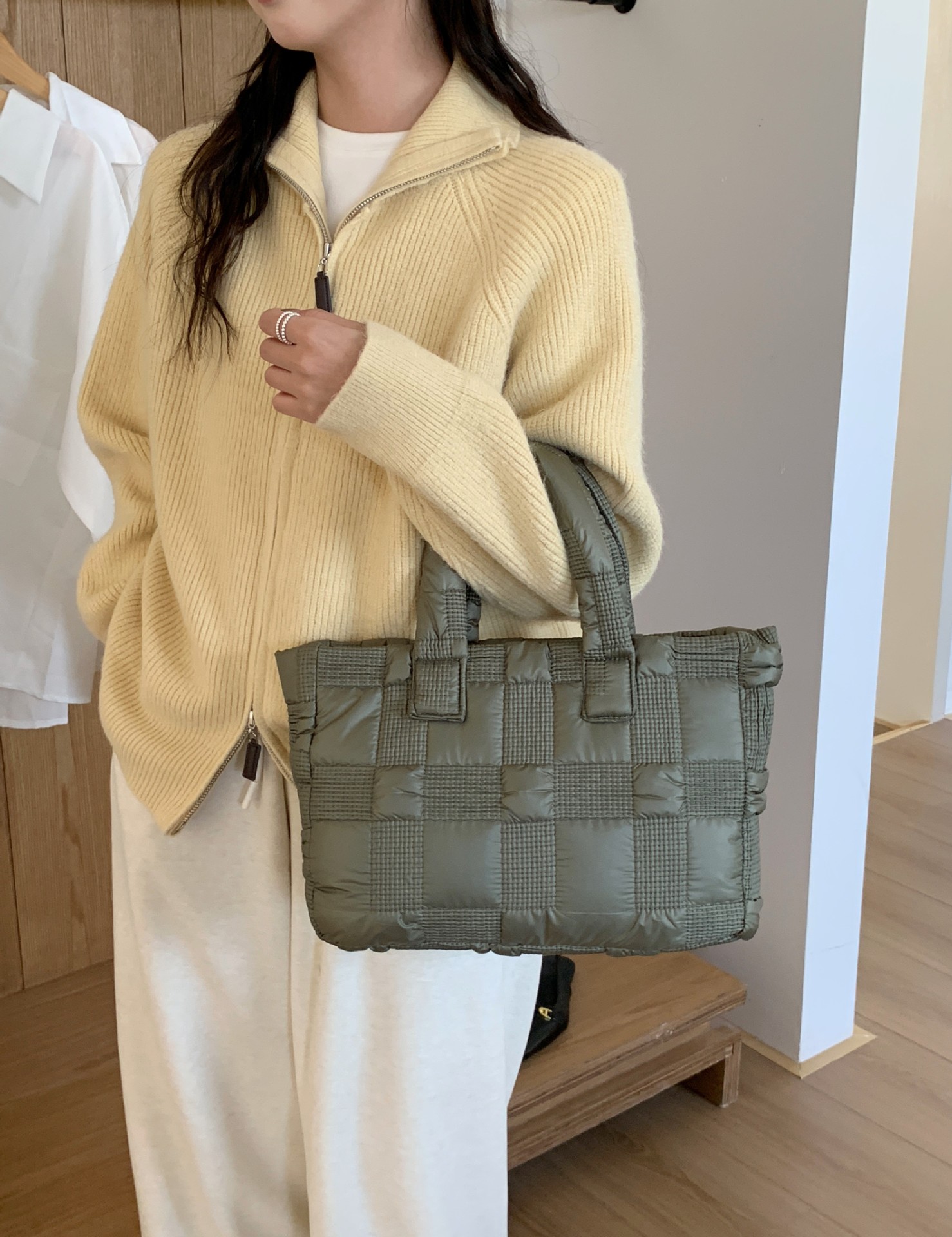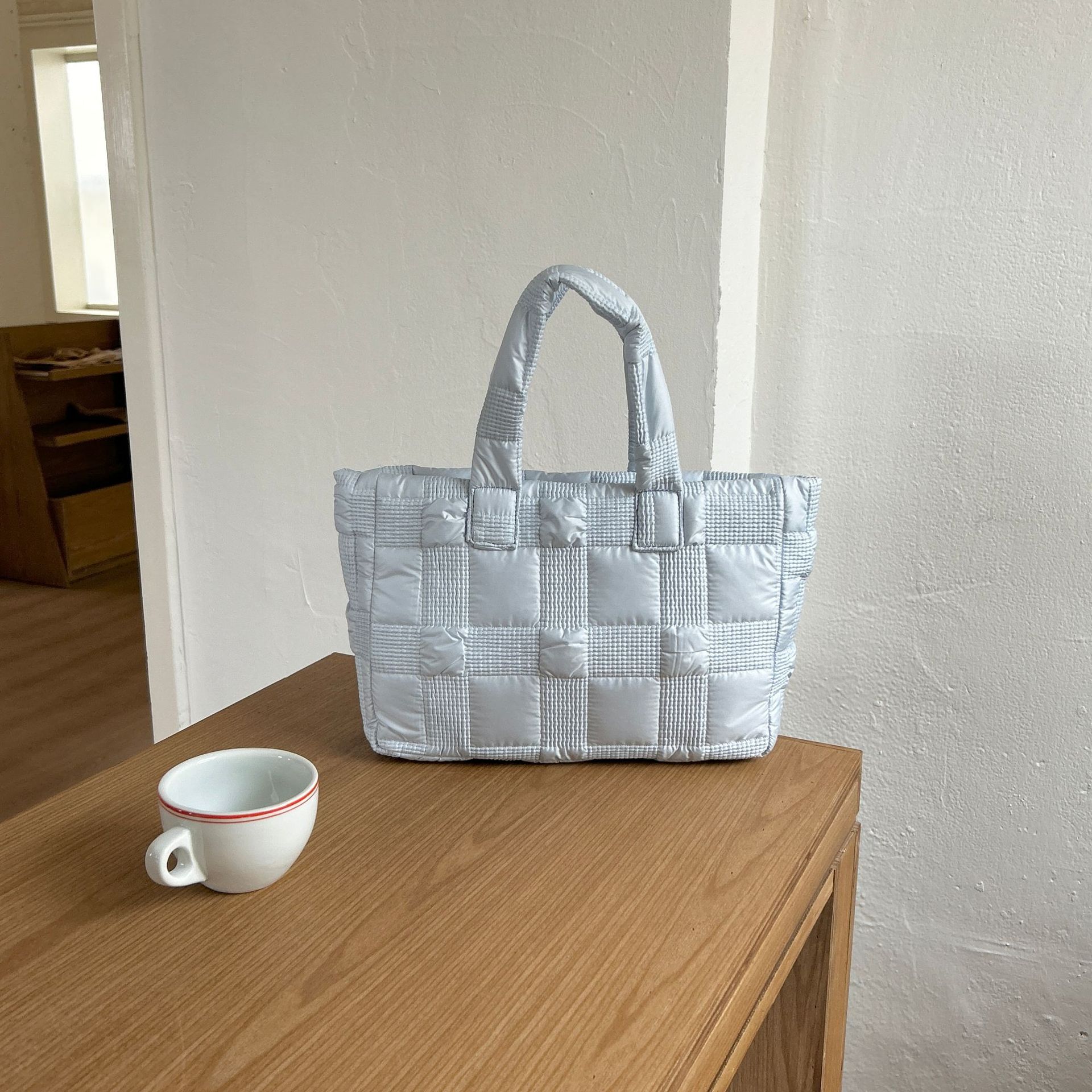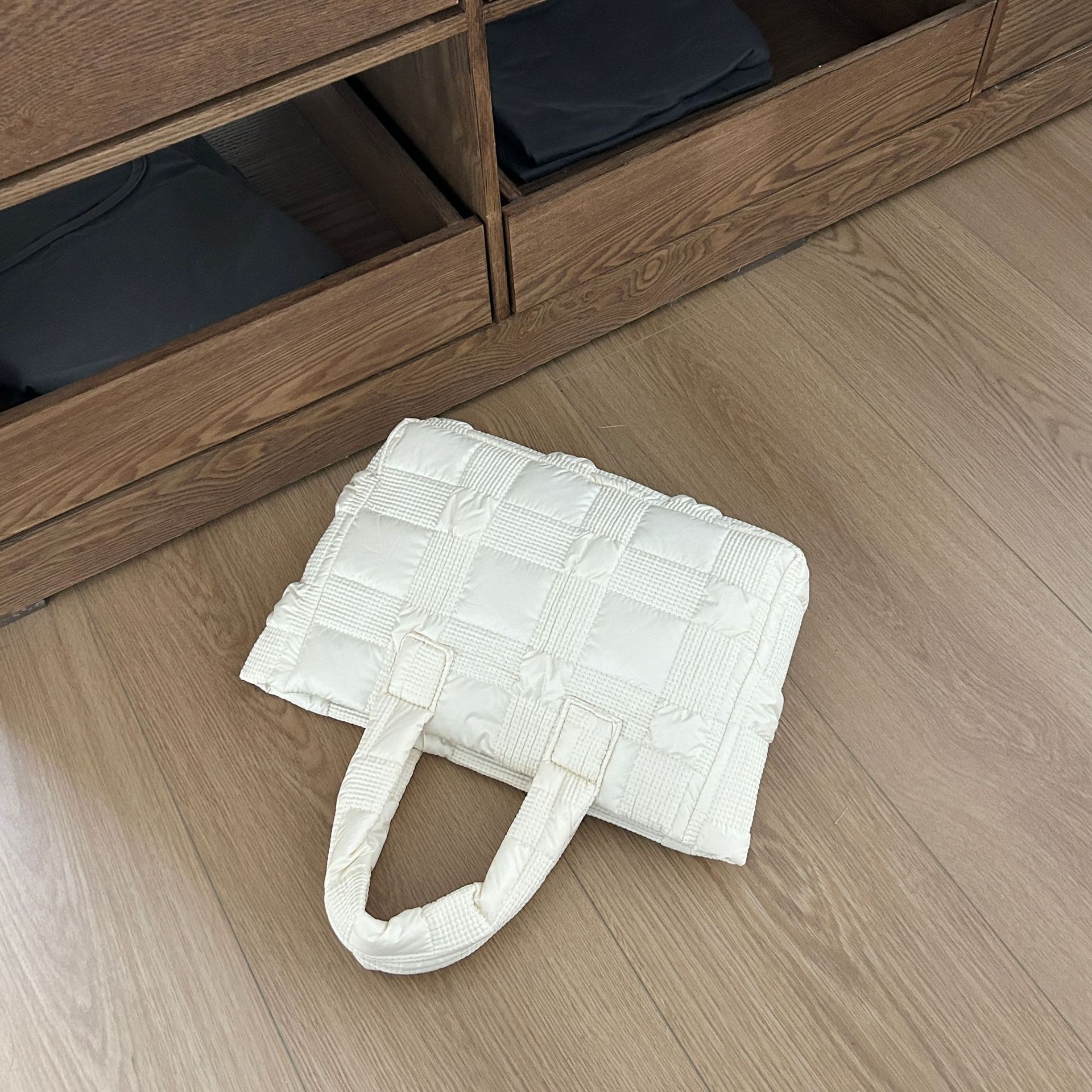 2024 겨울 새 토트 백 여성 대용량 다이아몬드 격자 무늬 소프트 국수 지퍼 가방 여성 캐주얼 경량 야외 면화 가방스토어 가기