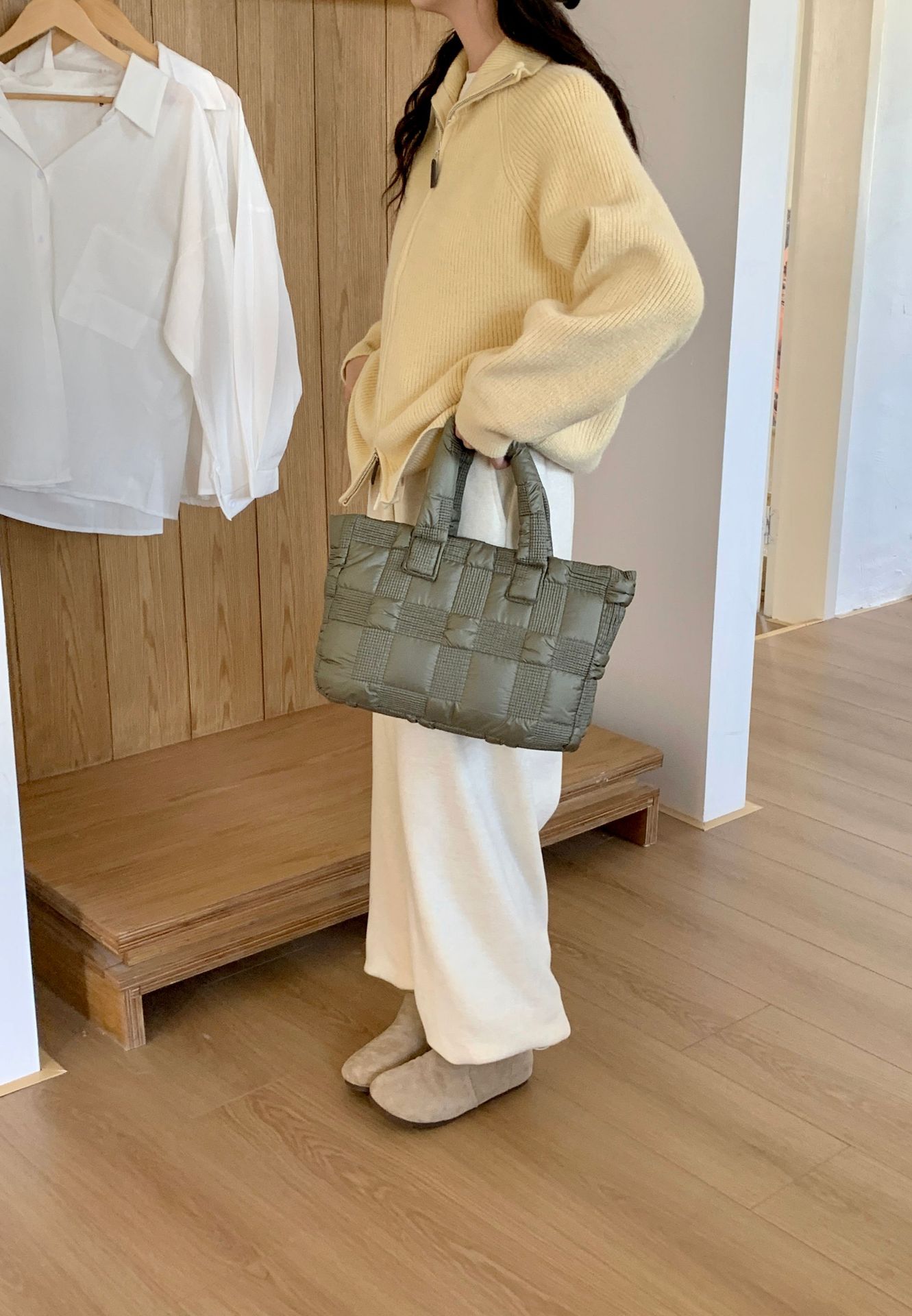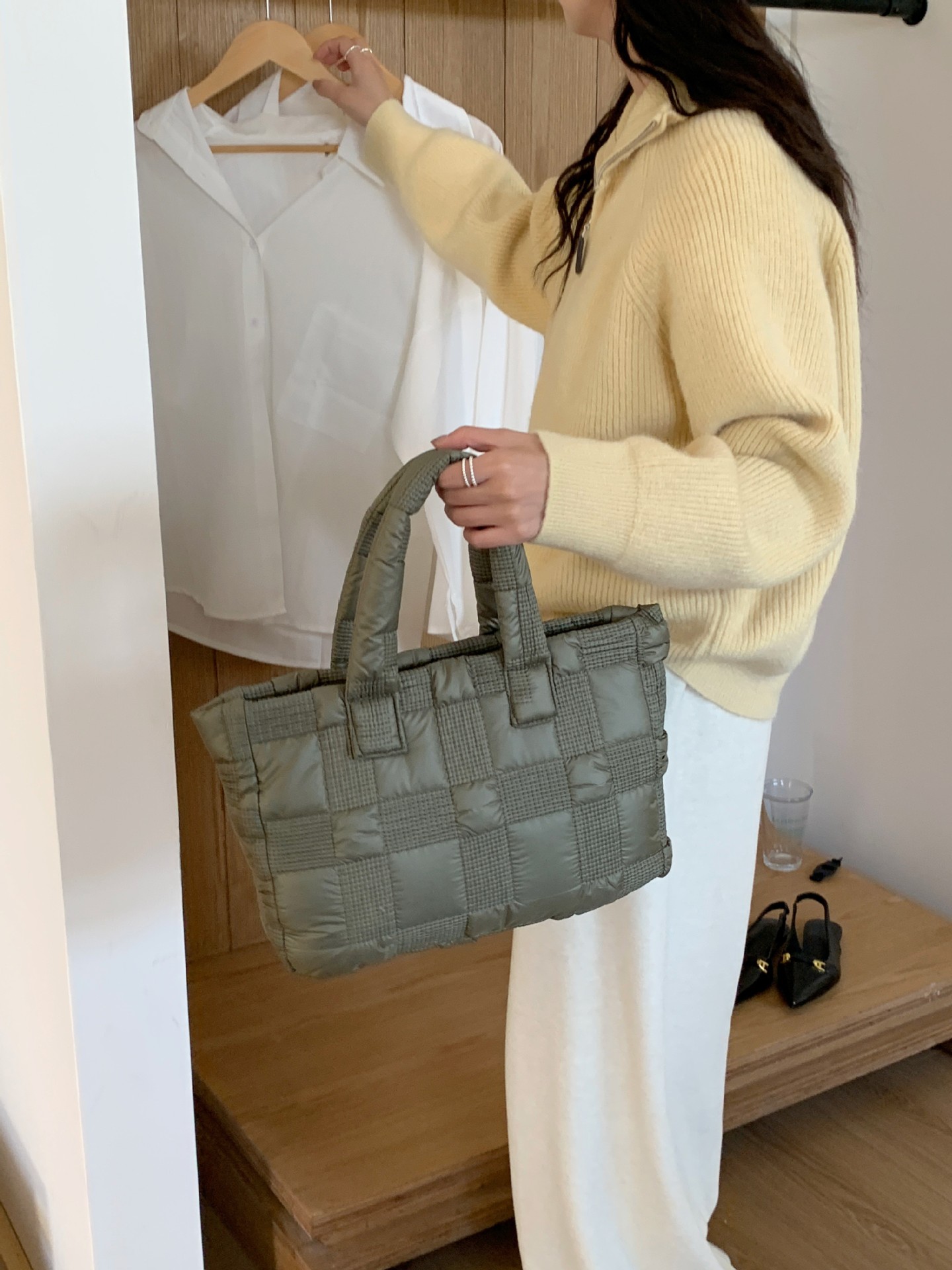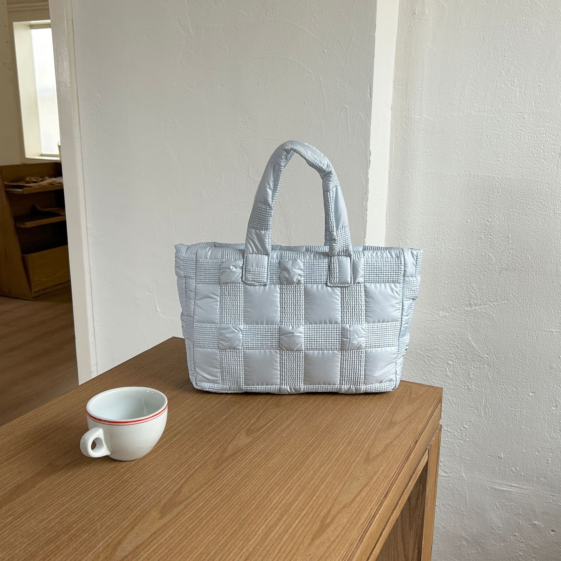 2024 겨울 새 토트 백 여성 대용량 다이아몬드 격자 무늬 소프트 국수 지퍼 가방 여성 캐주얼 경량 야외 면화 가방스토어 가기