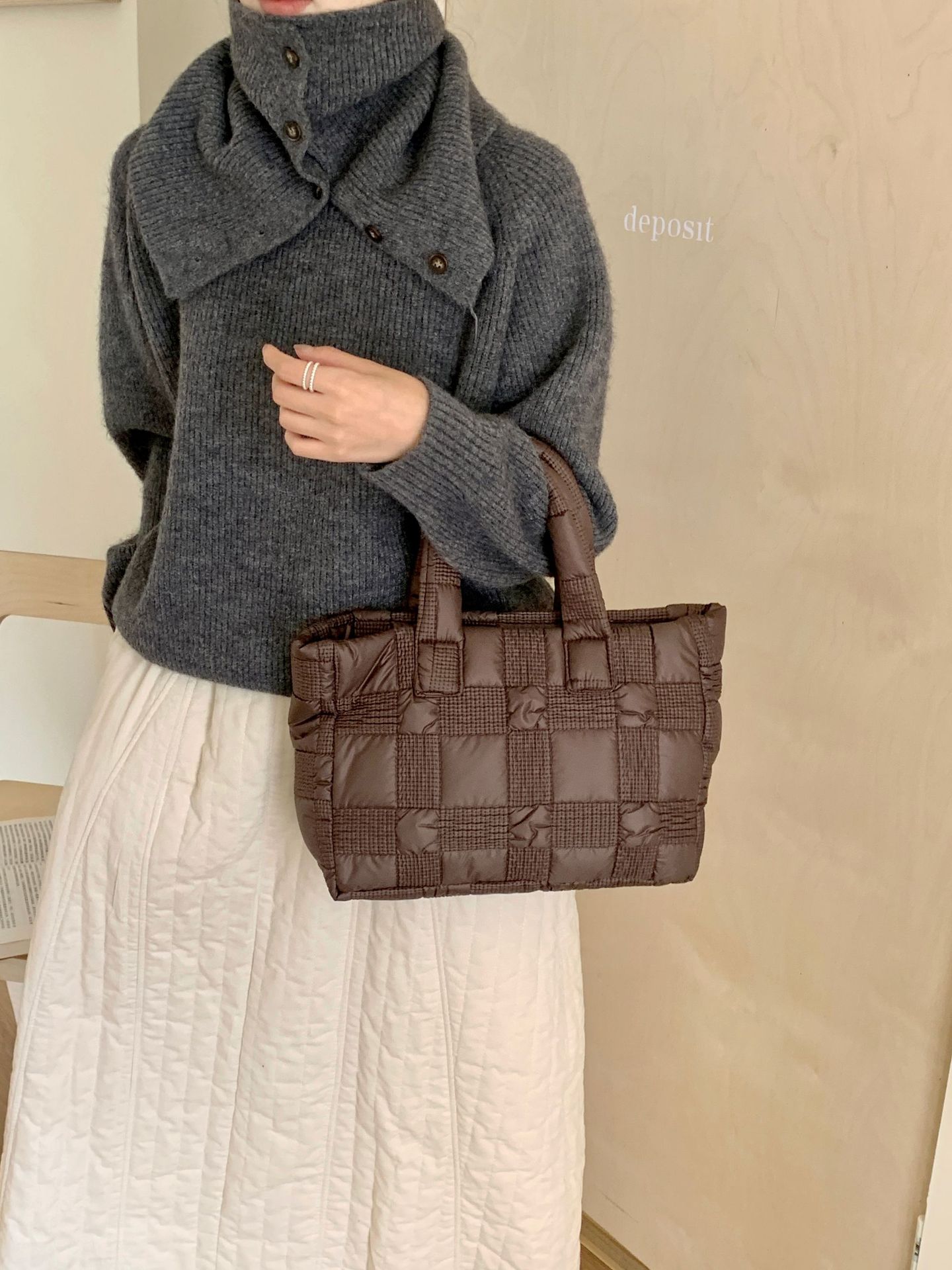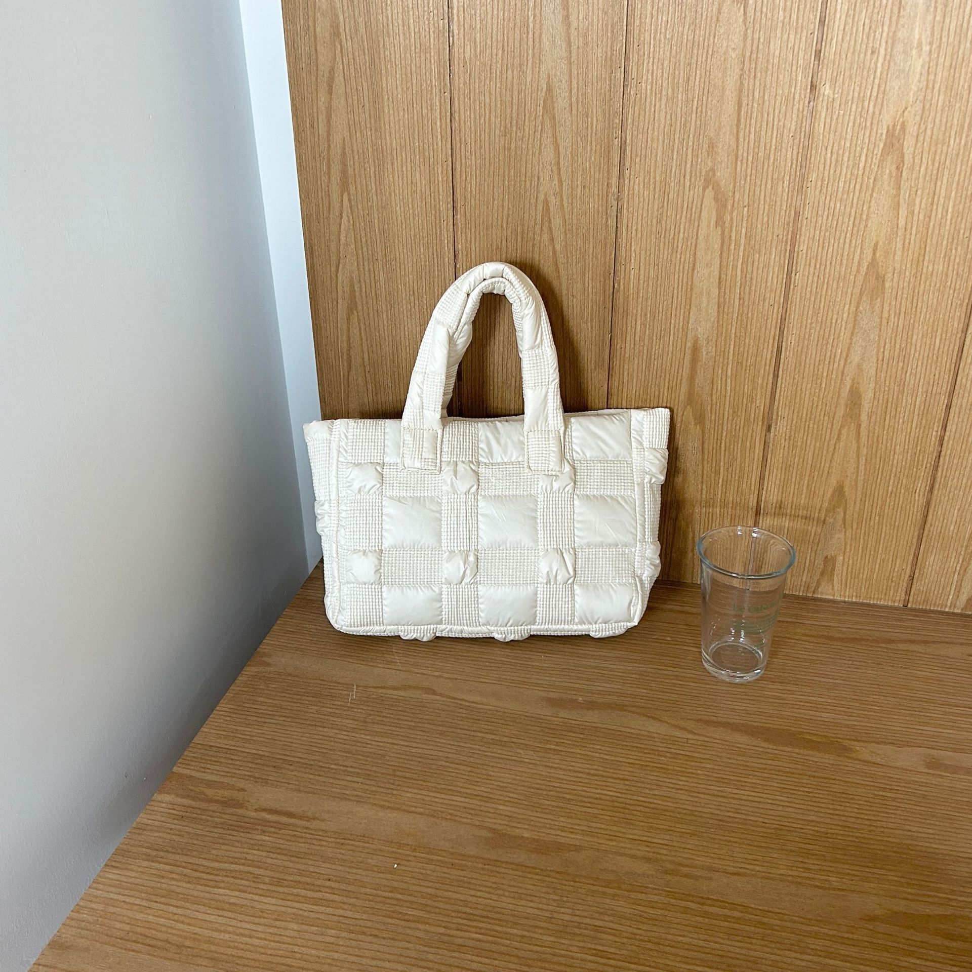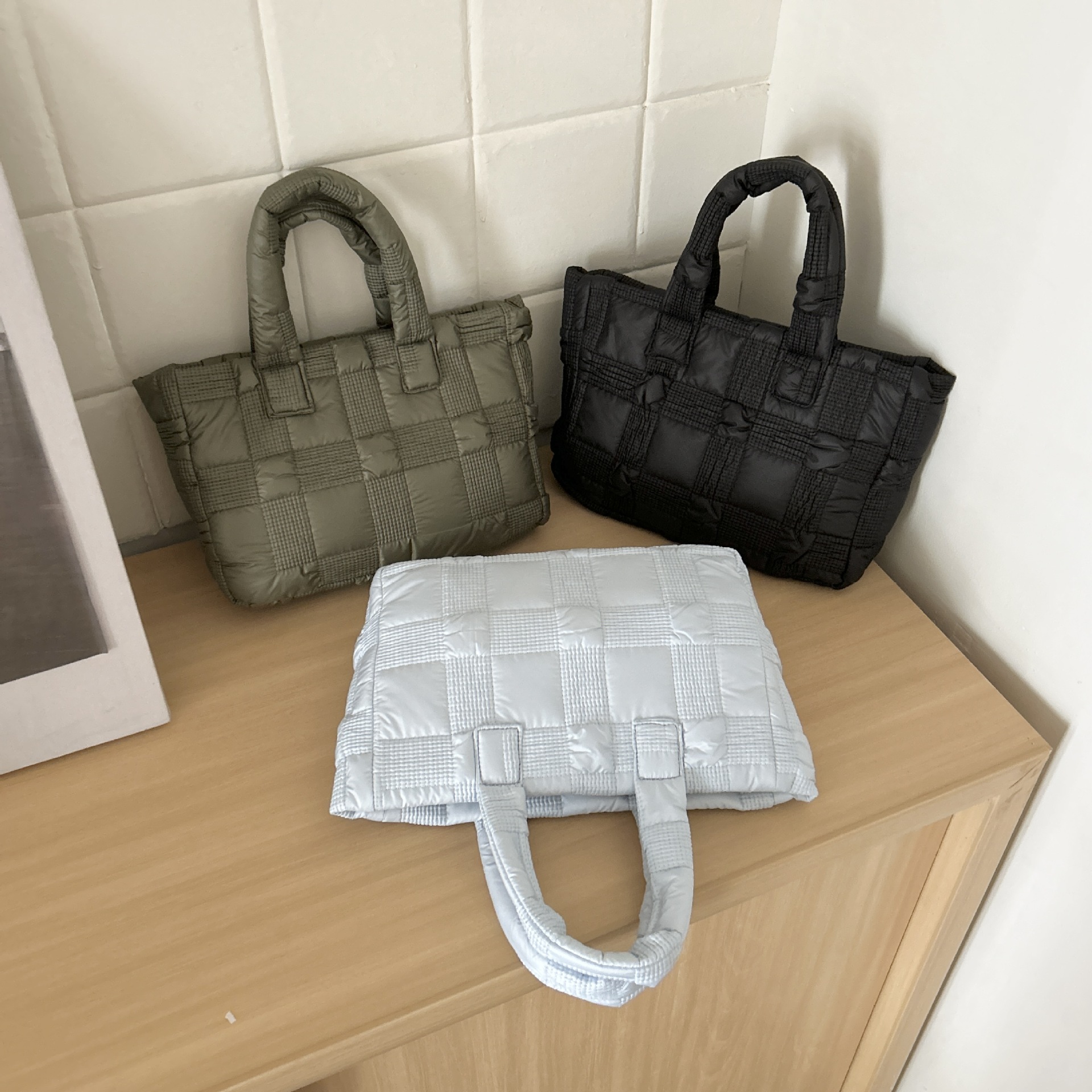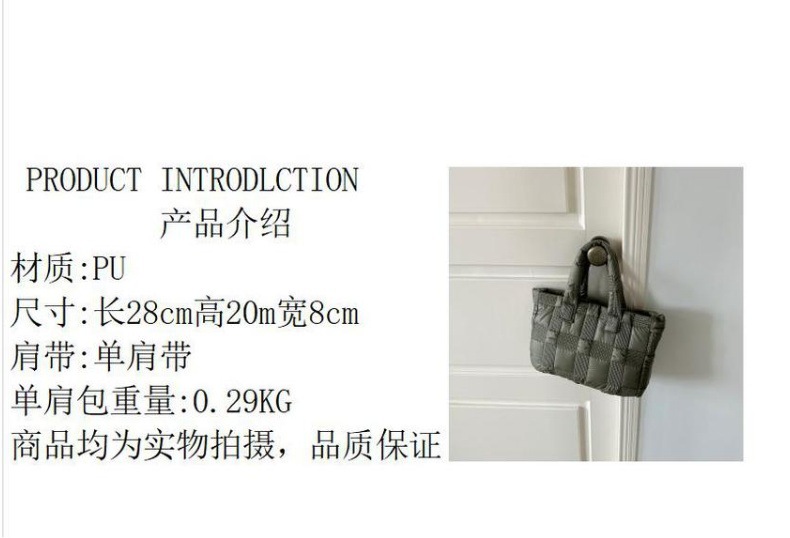 2024 겨울 새 토트 백 여성 대용량 다이아몬드 격자 무늬 소프트 국수 지퍼 가방 여성 캐주얼 경량 야외 면화 가방