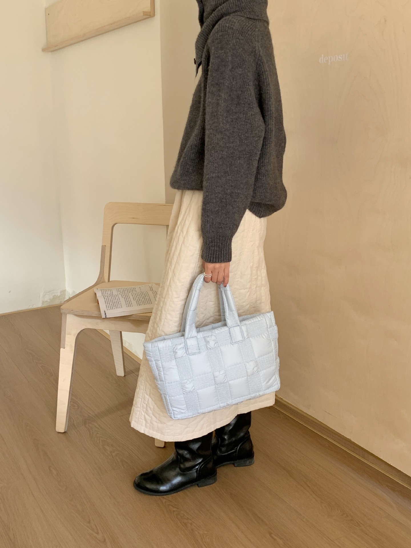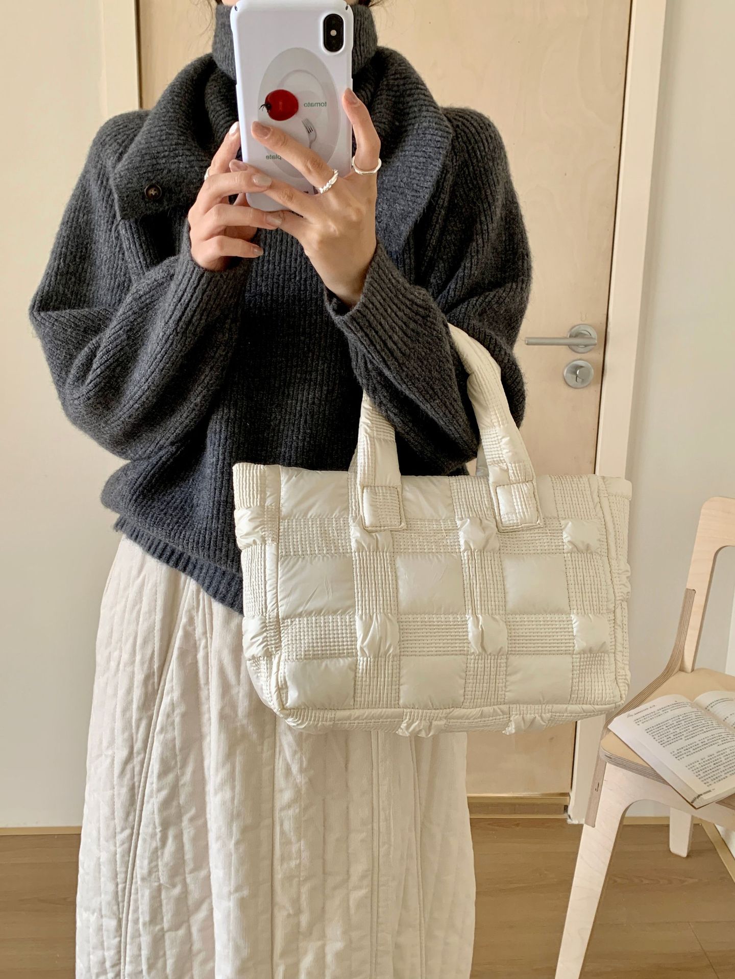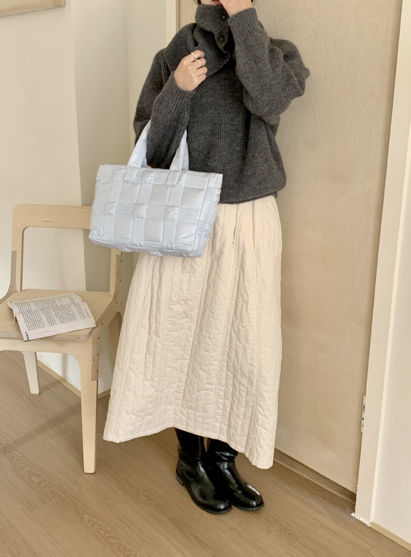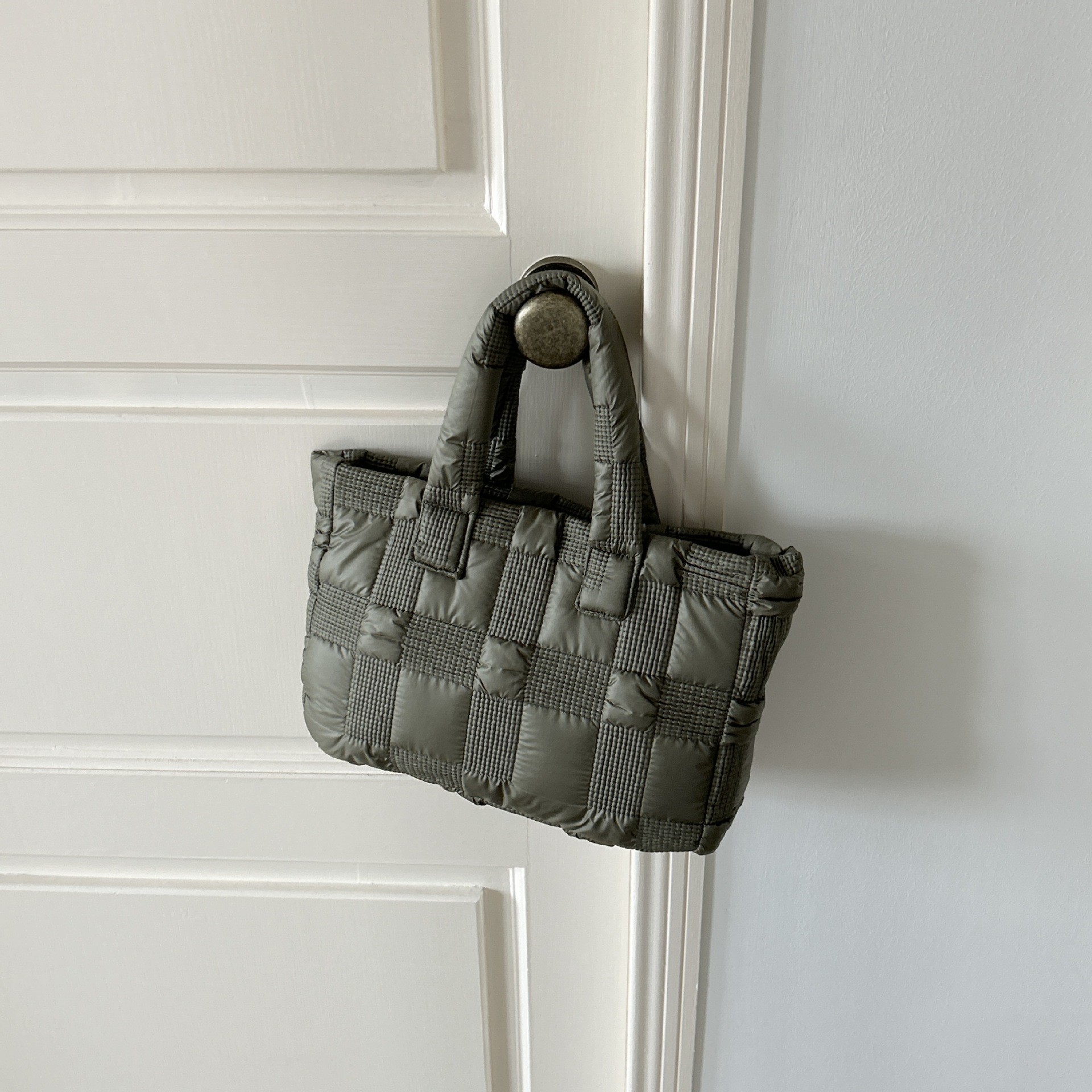 2024 겨울 새 토트 백 여성 대용량 다이아몬드 격자 무늬 소프트 국수 지퍼 가방 여성 캐주얼 경량 야외 면화 가방