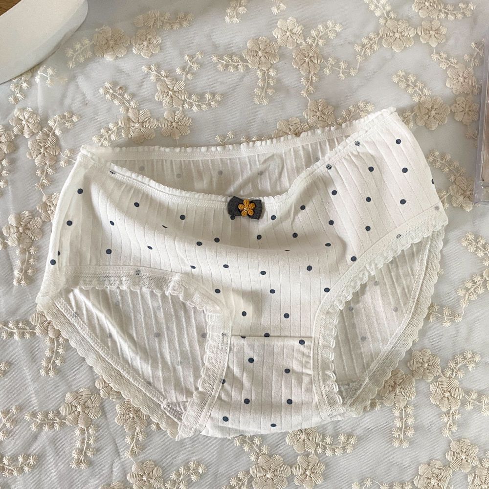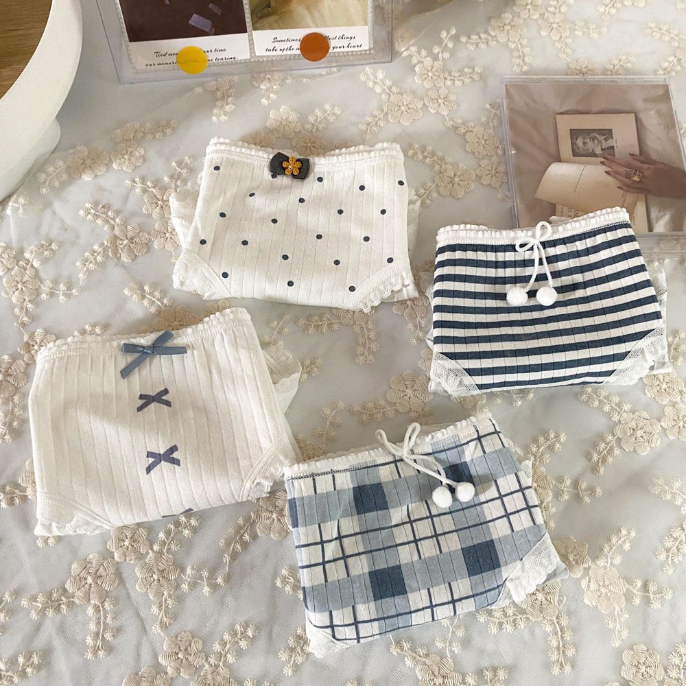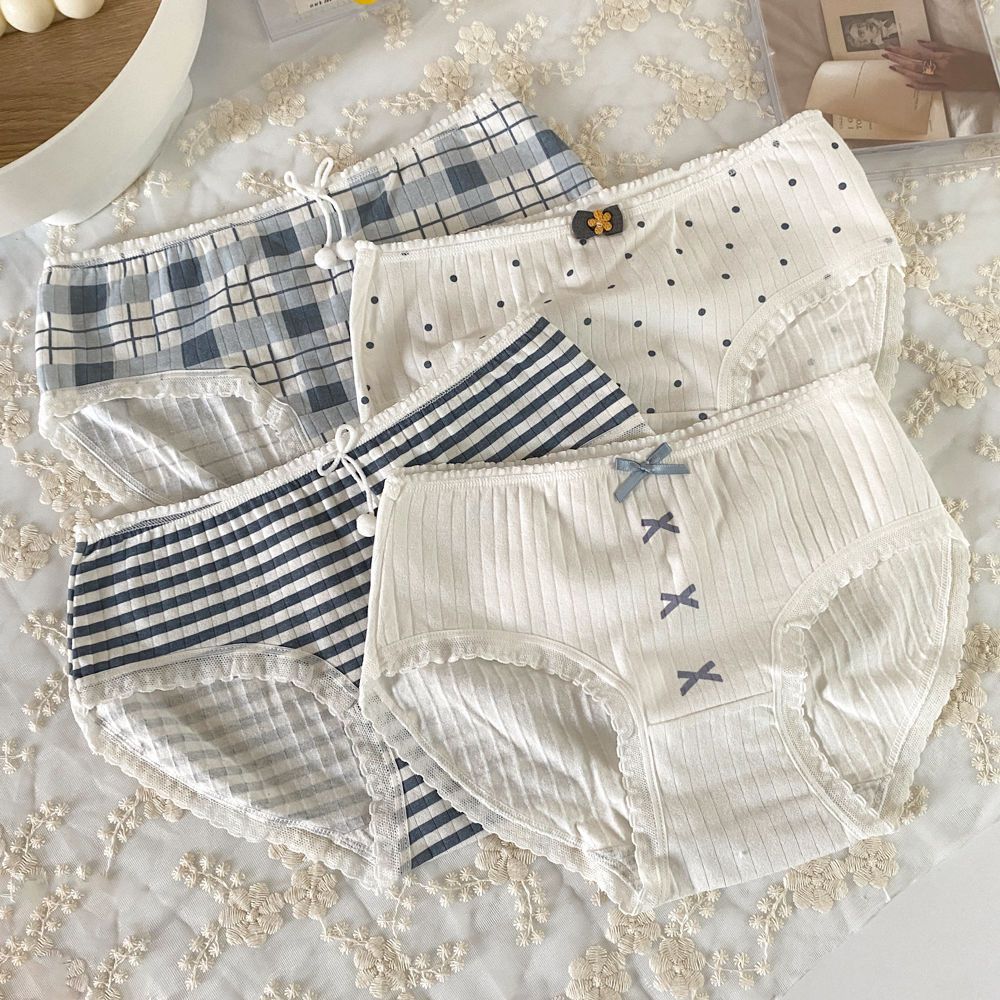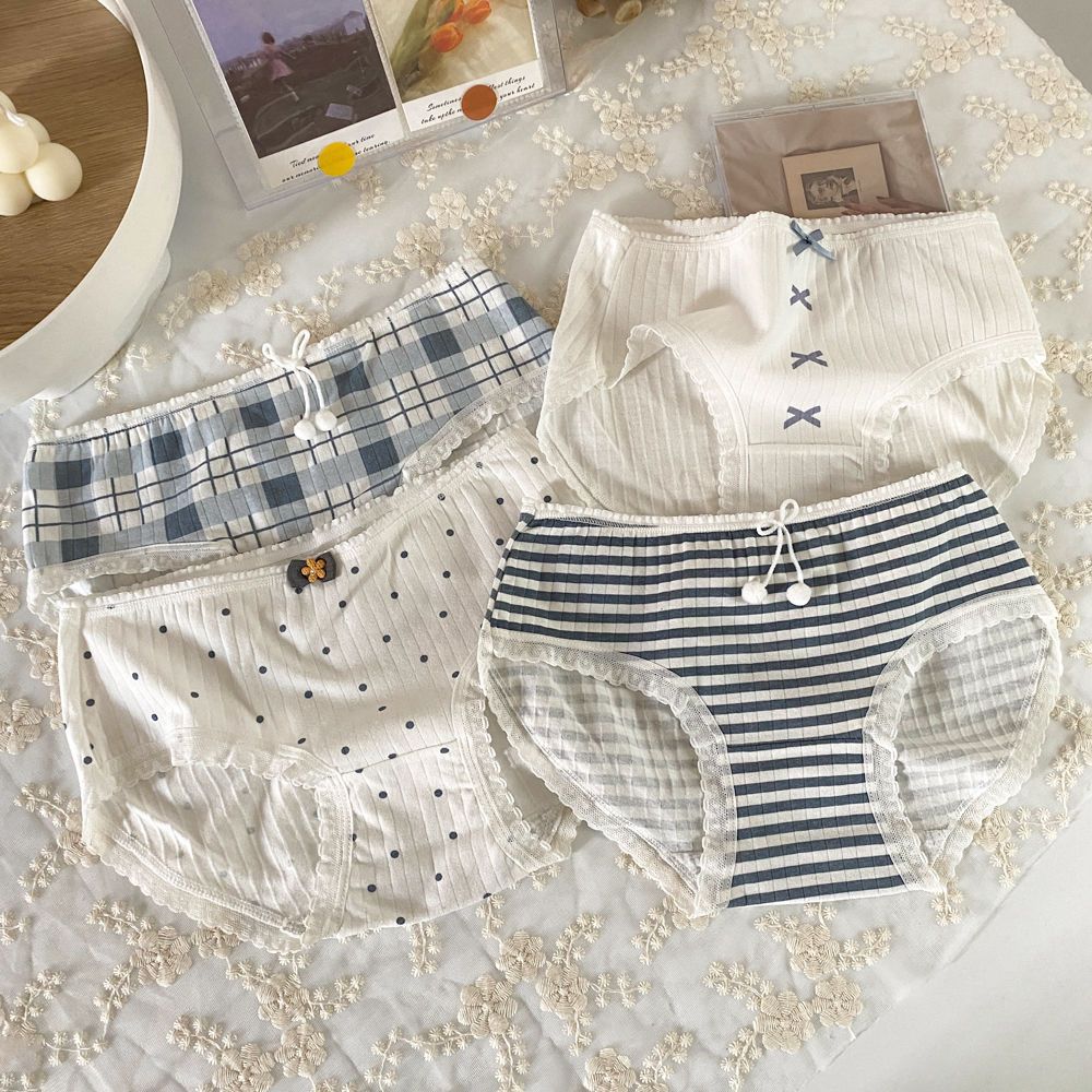 간단한 일본 활 헤이즈 블루 코튼 속옷 여성의 중간 허리 안티 박테리아 크로트 소녀의 귀여운 학생 브리프