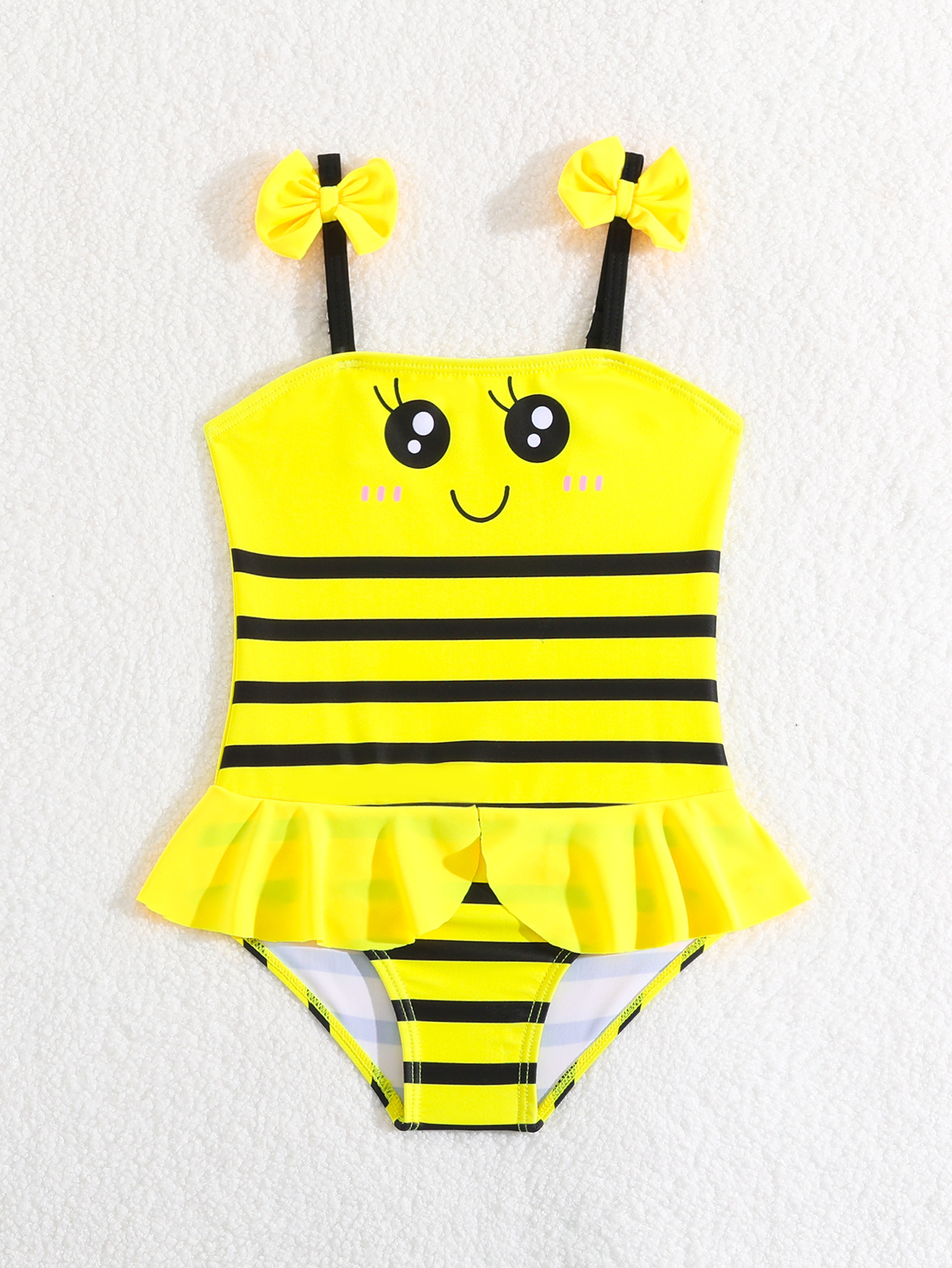 2024 년 새 어린이 원피스 수영복 중형 어린이 크로스보더 걸스 여름 대외 무역 꿀벌 귀여운 여자 수영복