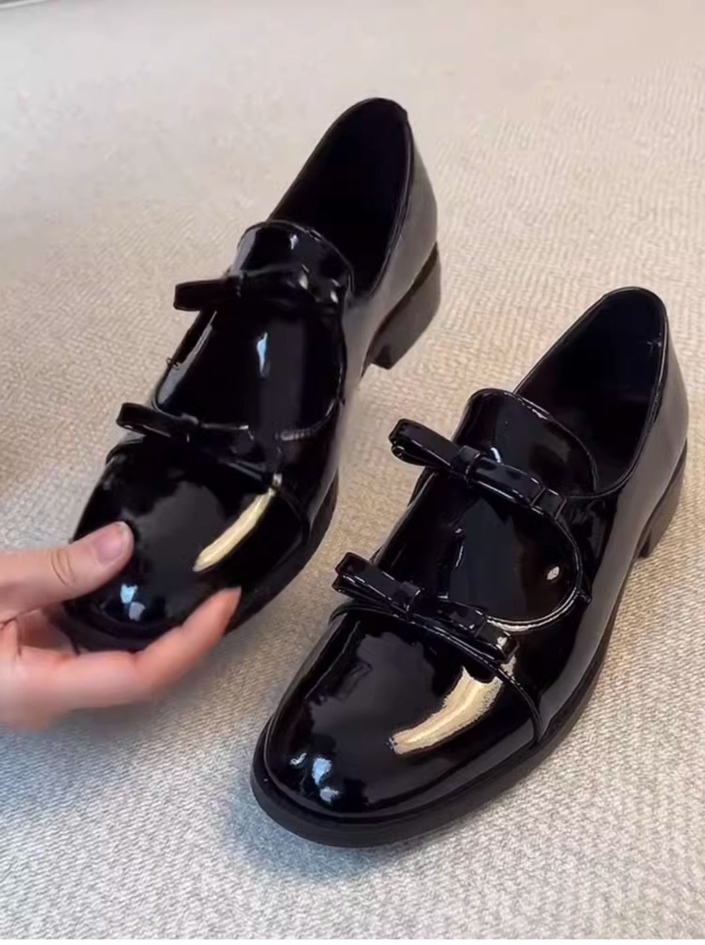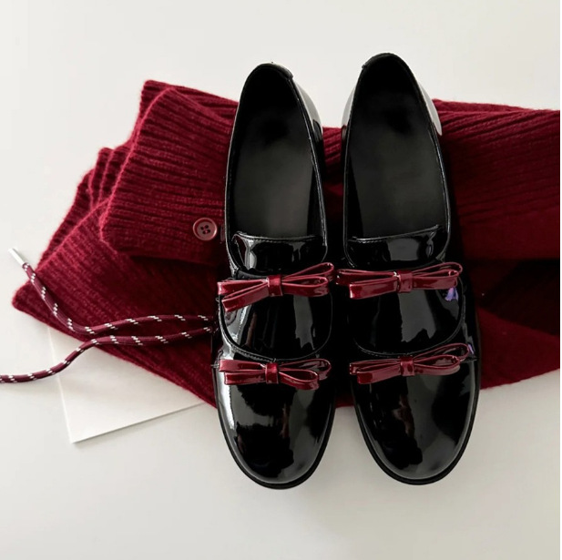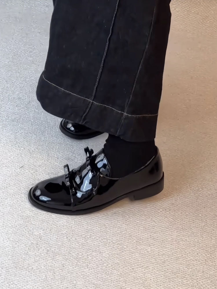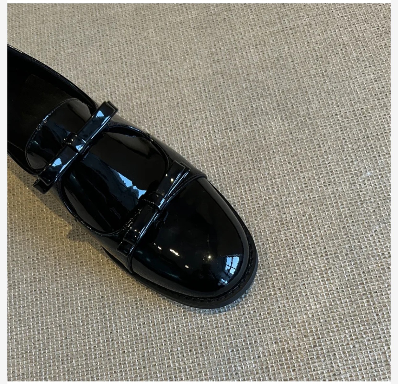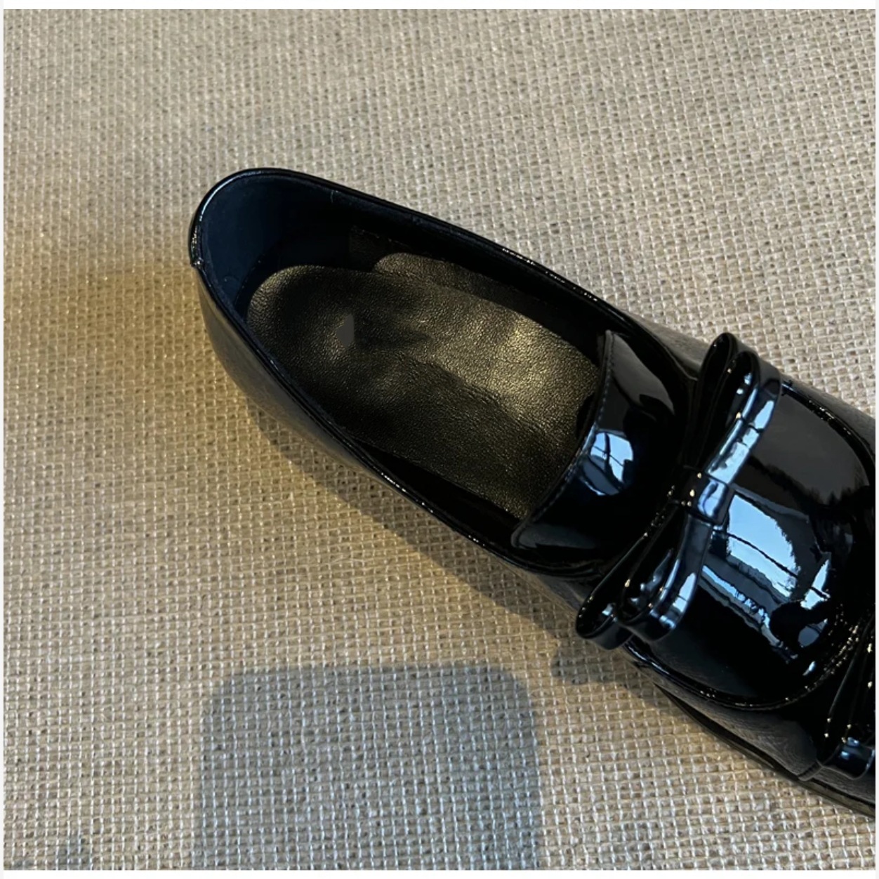 정품 가죽 레트로 리본 두꺼운 밑창 작은 가죽 신발, 다용도 라운드 토 슬립온 로퍼, 플랫 슈즈스토어 가기