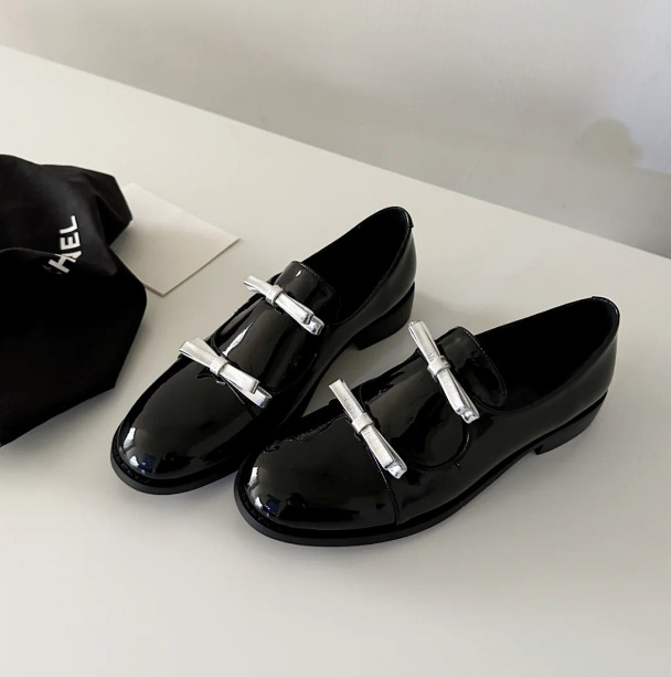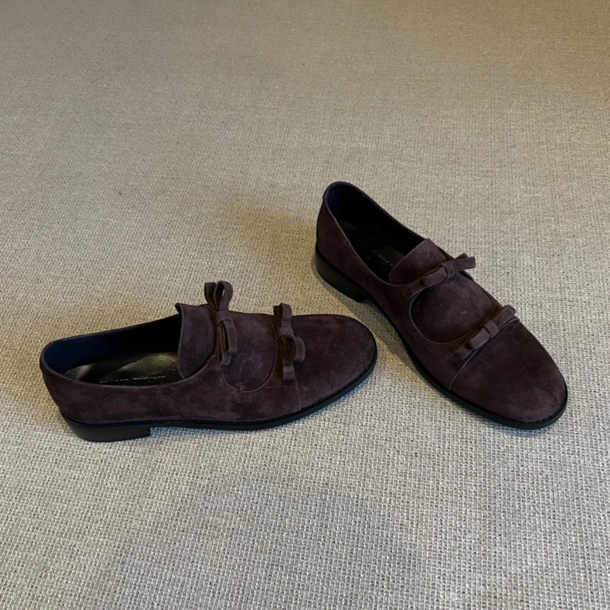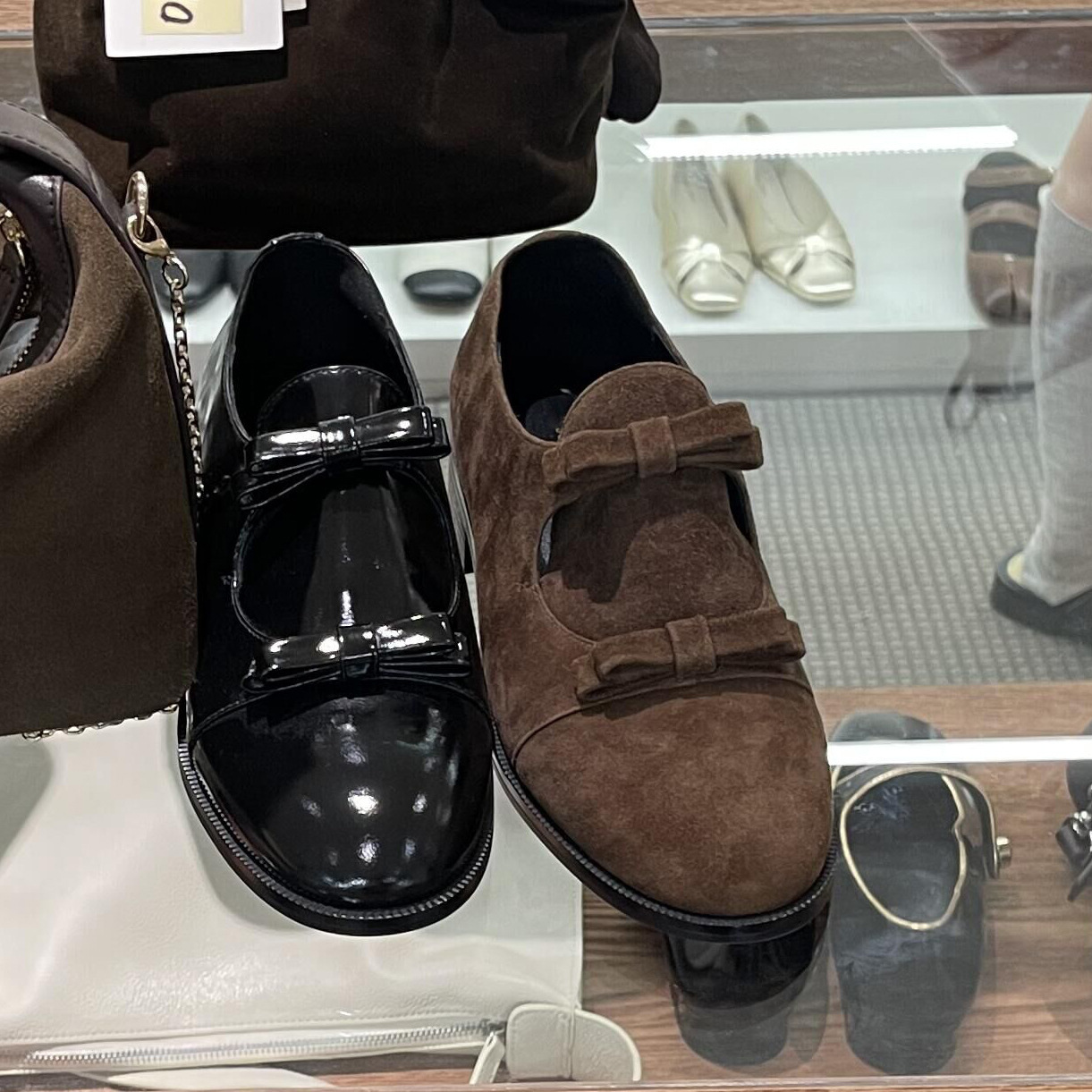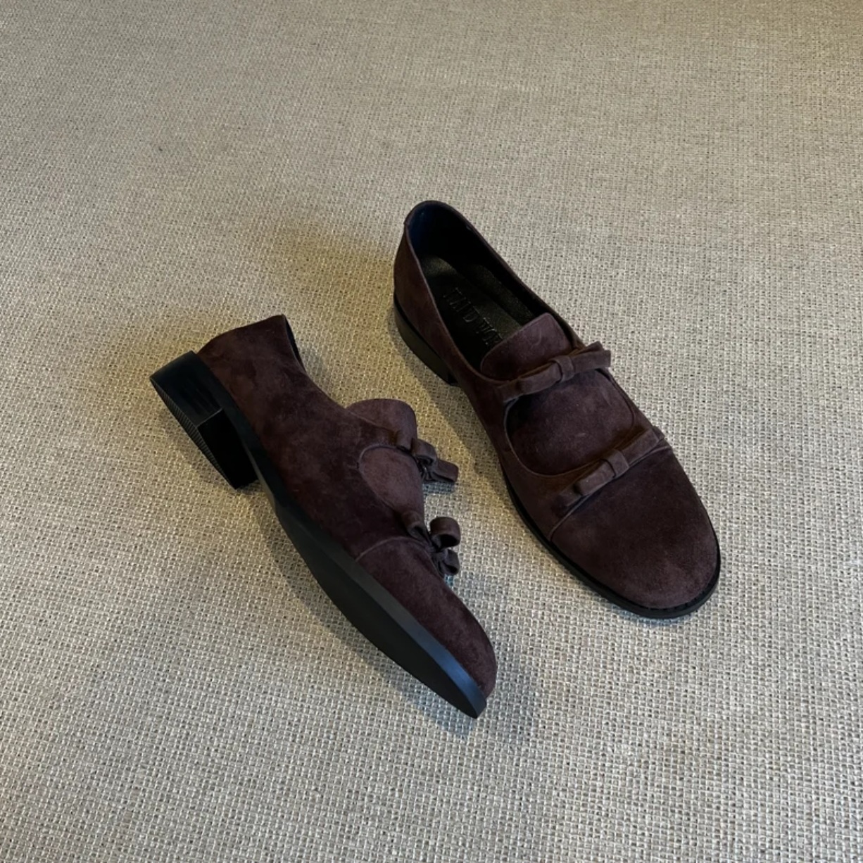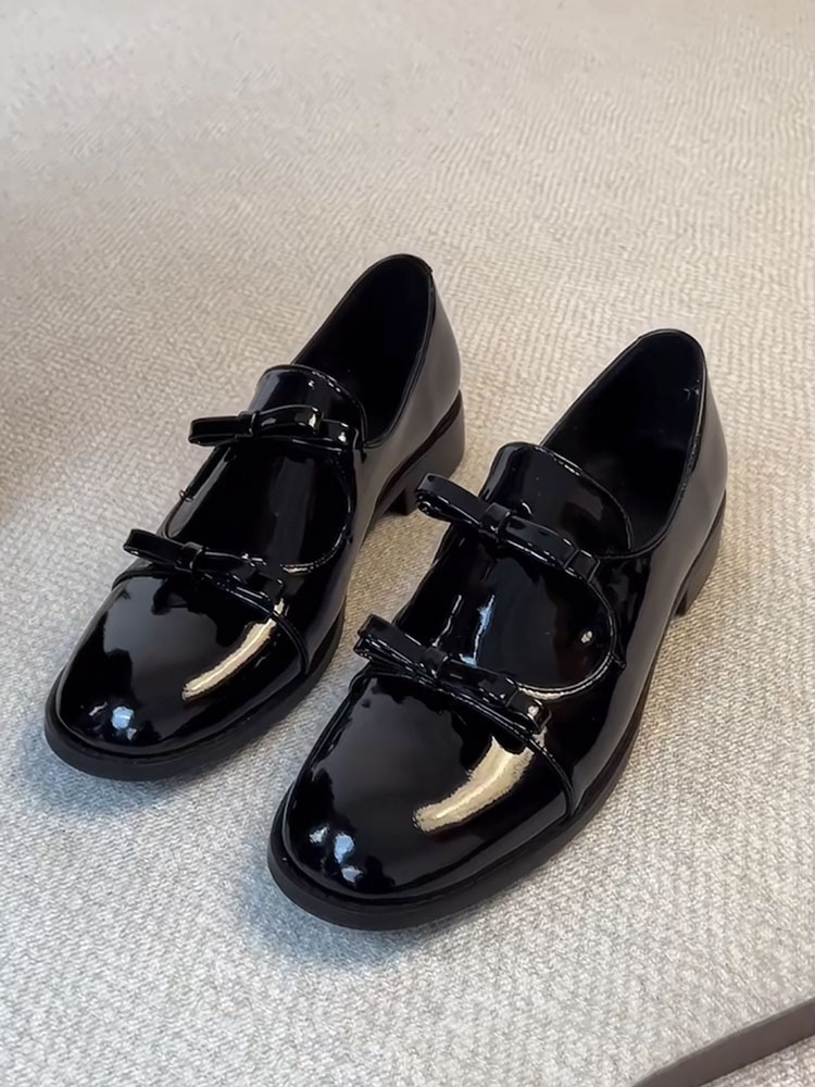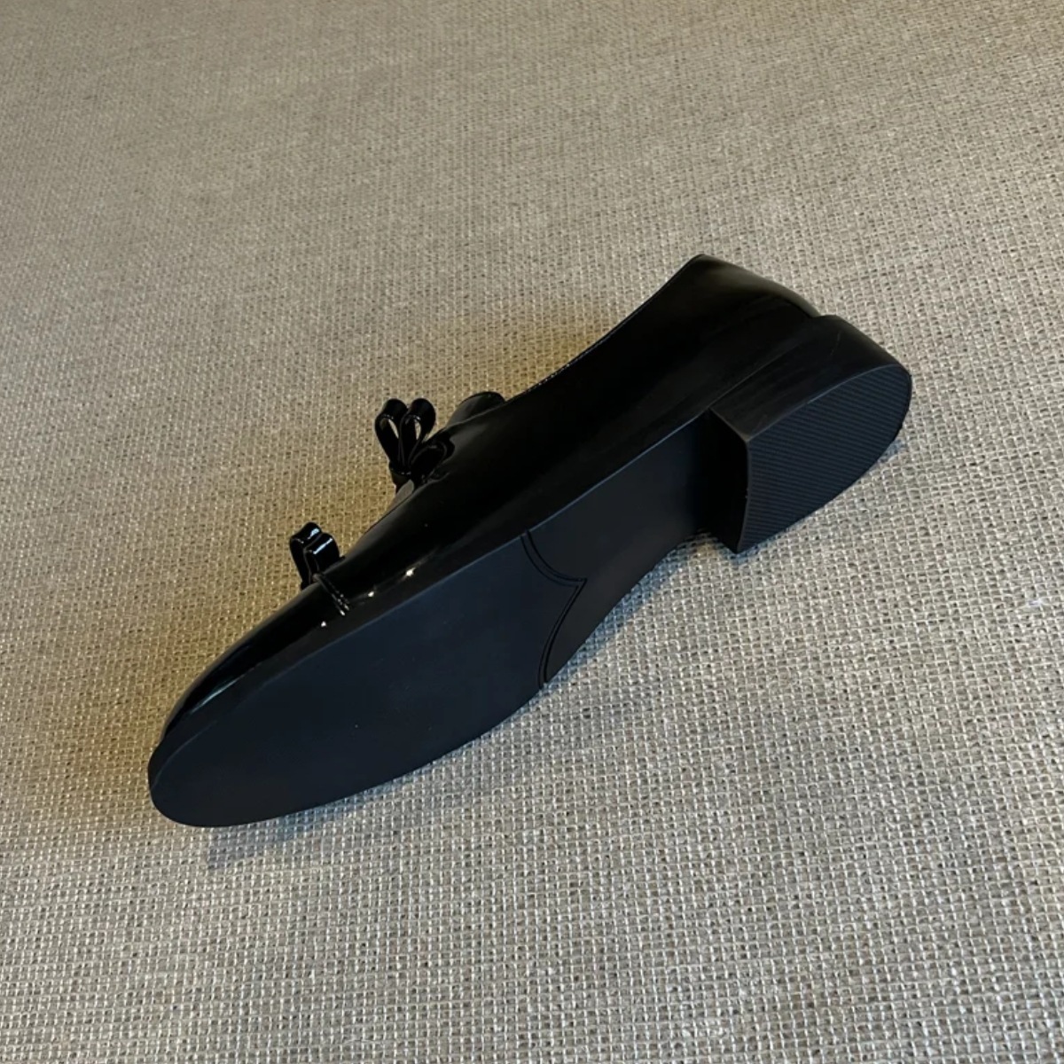 정품 가죽 레트로 리본 두꺼운 밑창 작은 가죽 신발, 다용도 라운드 토 슬립온 로퍼, 플랫 슈즈스토어 가기