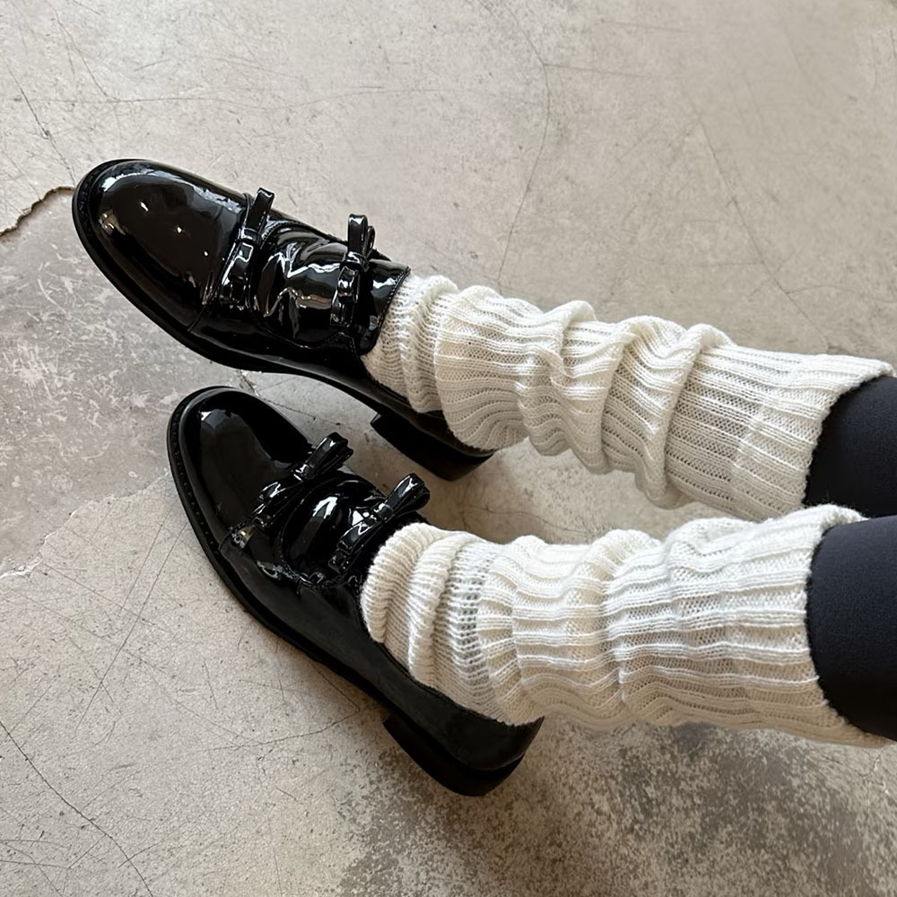 정품 가죽 레트로 리본 두꺼운 밑창 작은 가죽 신발, 다용도 라운드 토 슬립온 로퍼, 플랫 슈즈