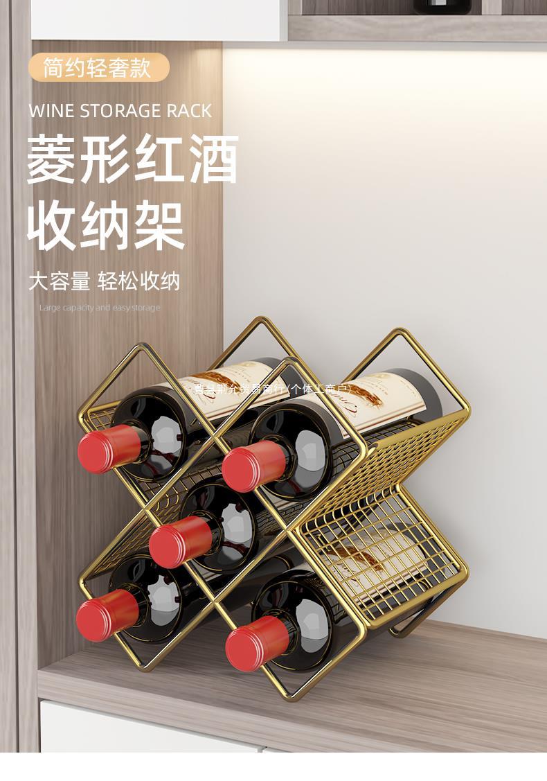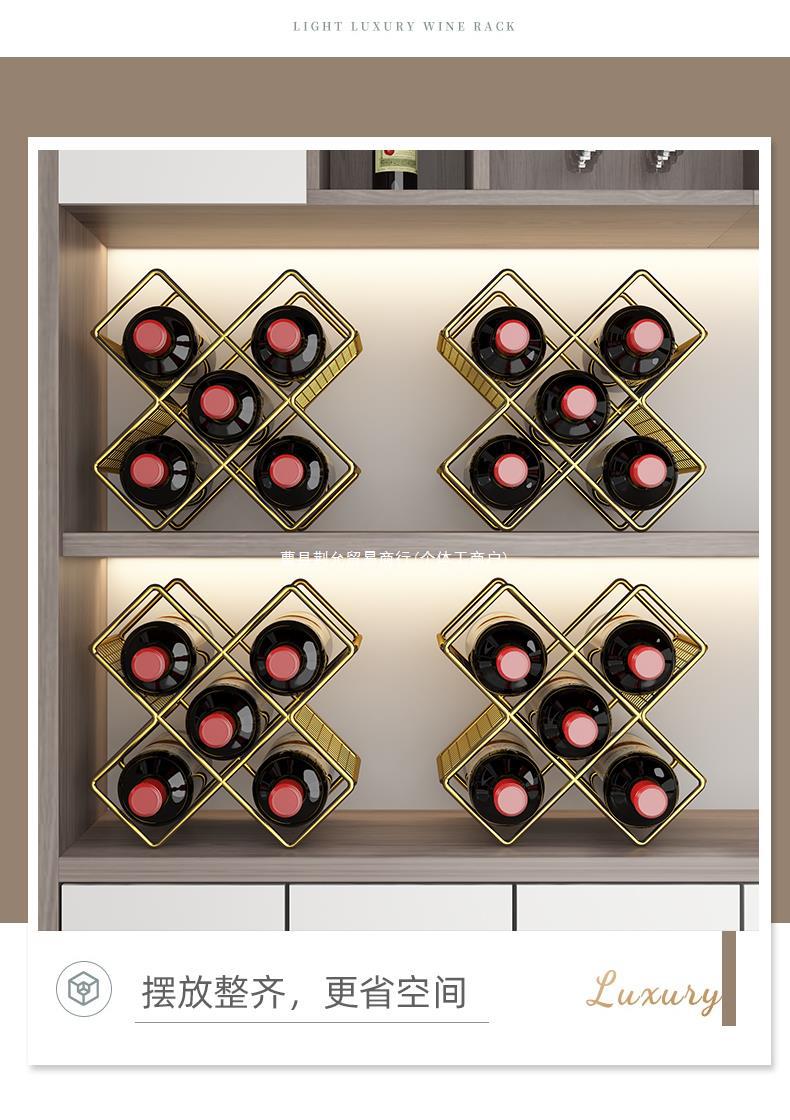 Jingyun 레드 와인 랙 라이트 럭셔리 가정용 와인 랙 장식품 디스플레이 랙 와인 캐비닛 스토리지 랙 체크 무늬 Jueqin스토어 가기