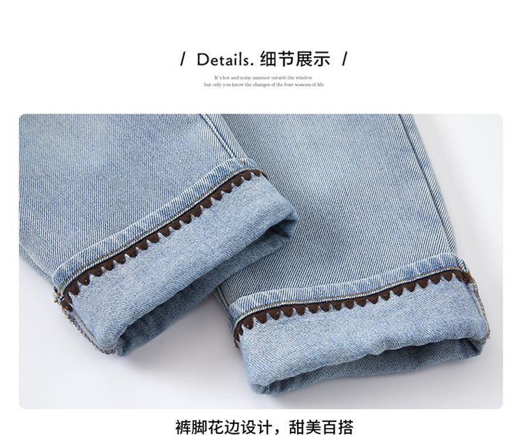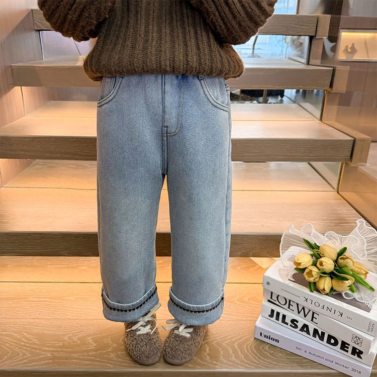 여아용 기모 바지 가을 겨울 2025 신상 아동 겨울 청바지 두꺼운 중소형 어린이용 스트레이트 와이드 팬츠스토어 가기