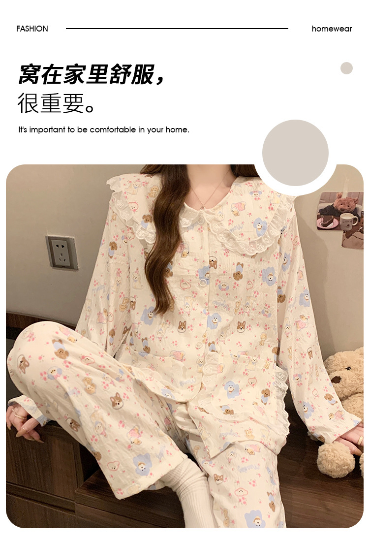 새로운 만화 레이스 인형 칼라 구름 면화 긴 소매 잠옷 여성의 봄과 가을 겨울 달콤한 바람 홈 의류 도매스토어 가기