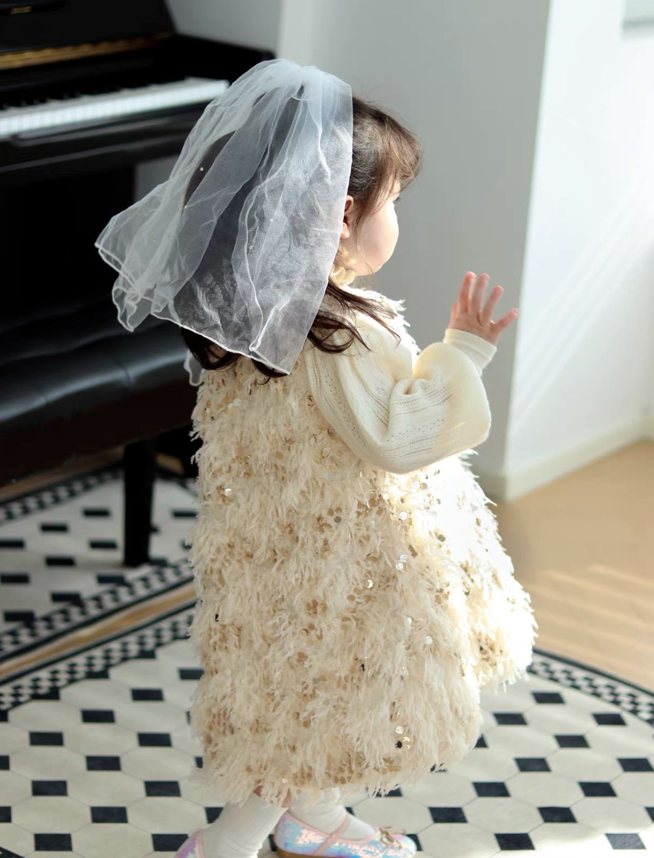 한국 스타일 소녀의 가을과 겨울 귀 튀김 랜턴 슬리브 칼라 스웨터 퀼트 스킨 깃털 조끼 스커트 투피스 세트 스커트스토어 가기