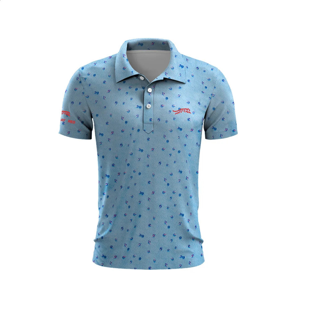 타이거 우즈 골프 스트라이프 남자 여름 골프 티셔츠 탑 골프 클럽 버클 티셔츠 폴로