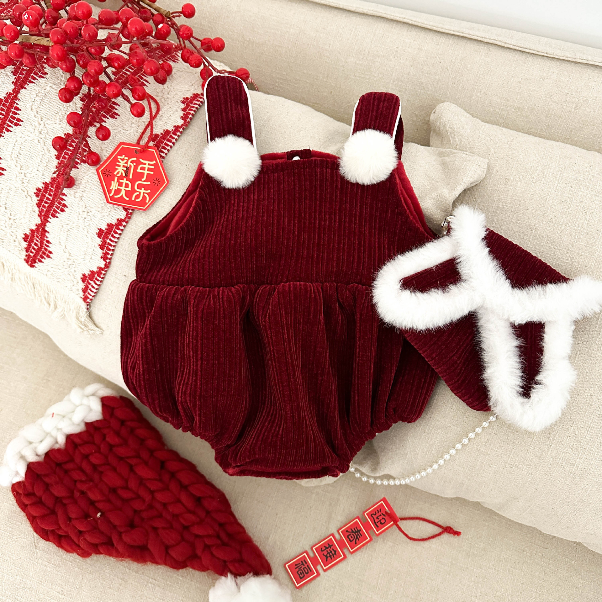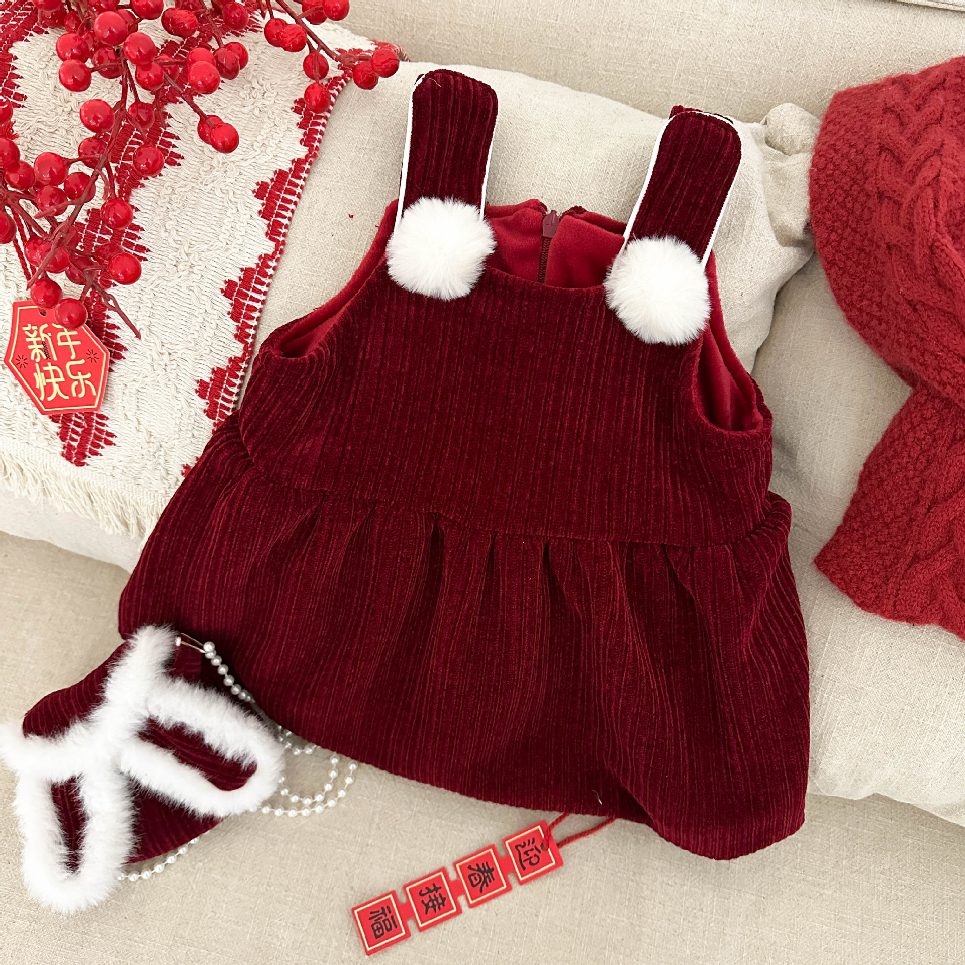 아기의 가을과 겨울 옷 아기 소녀의 외출 기모 포장 의류 크리스마스 원피스 세트 겨울 새해 인사말 옷