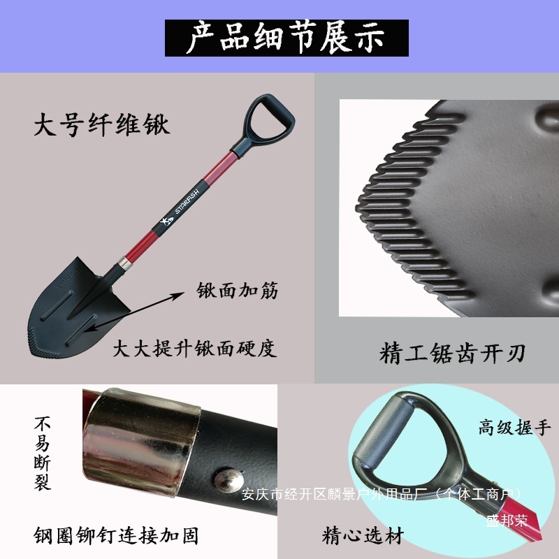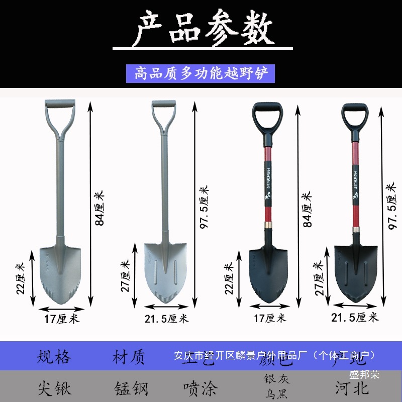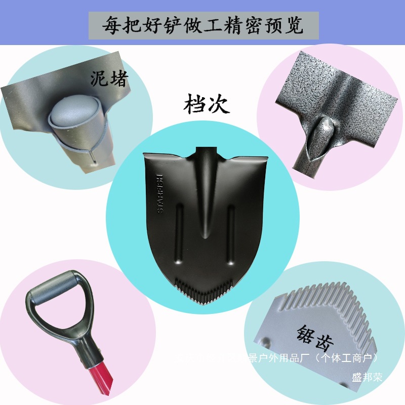 캠핑 담금질 구조 크로스 컨트리 등반 작은 망간 강철 원예 도구 삽 자동차 야외 모래 파기 다기능