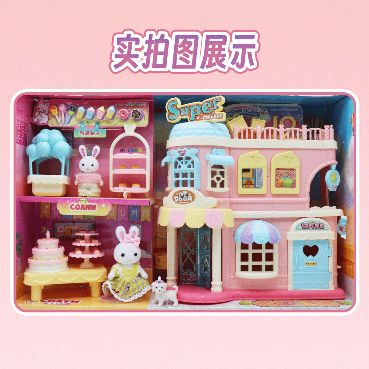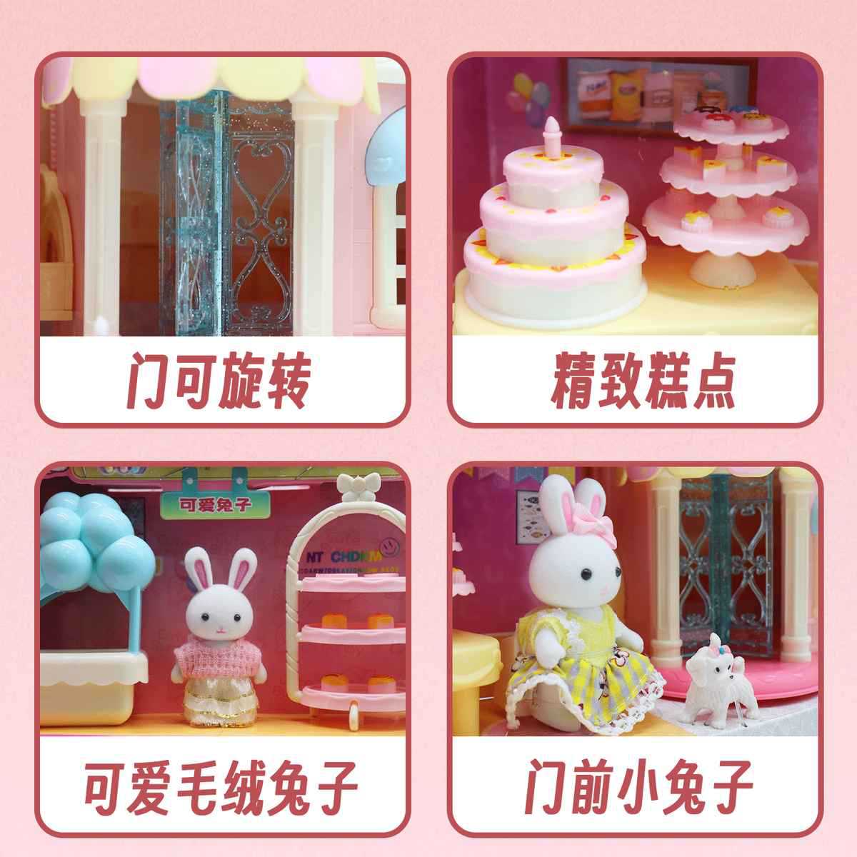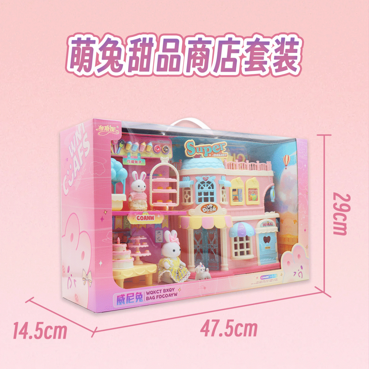 푸우 토끼 놀이 홈 장난감 소녀 귀여운 토끼 디저트 가게 세트 소녀 생일 선물 장면 장난감스토어 가기