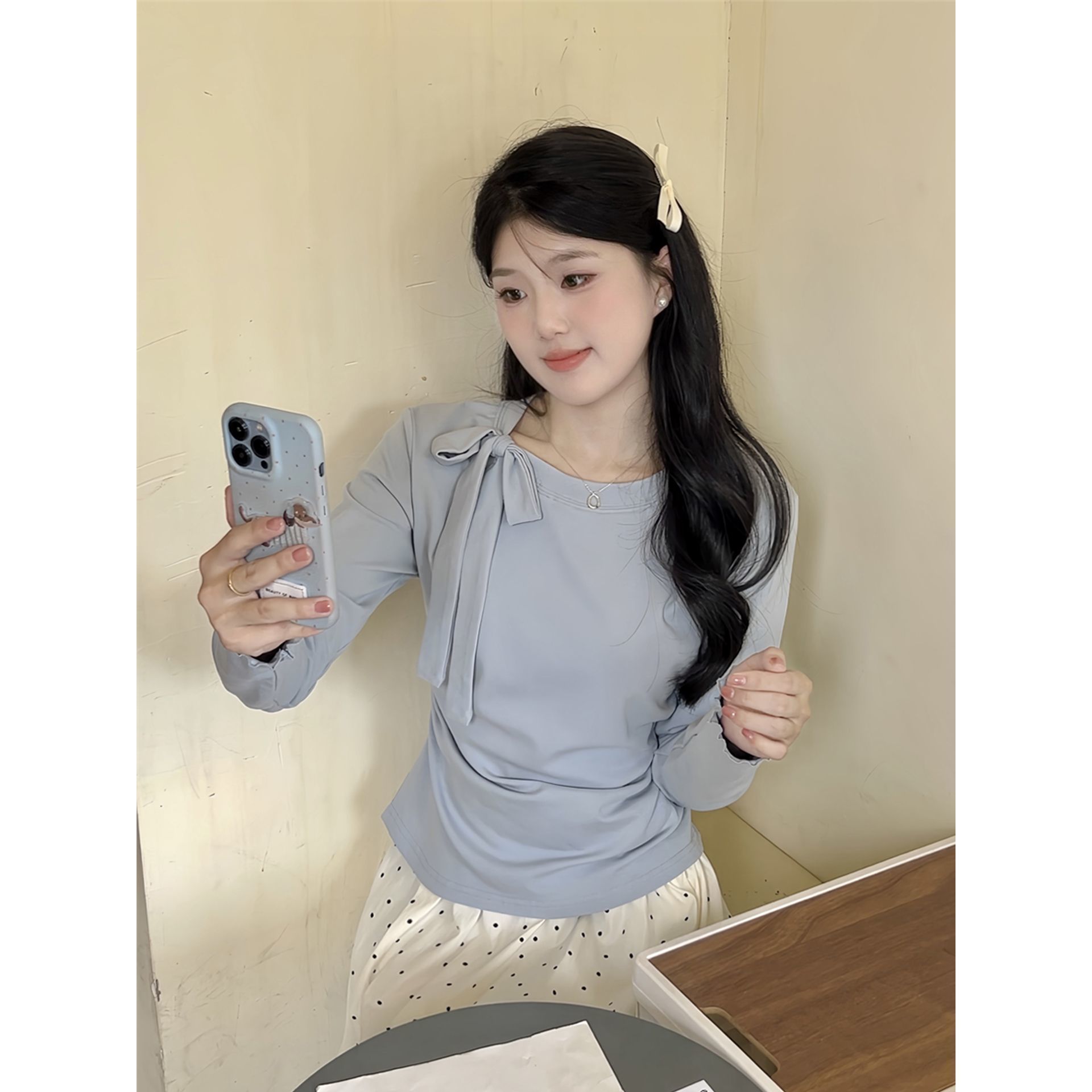 가을 하이 엔드 활 스트랩 긴팔 내면베이스 셔츠 우아한 착용 독특한 디자인 슬림 핏 탑스토어 가기