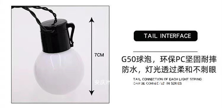 • [캠프장식] 5cm 흰색 공 따뜻한 빛❤50.2m 램프 - 플러그인 유형 - 직렬 포트 포함