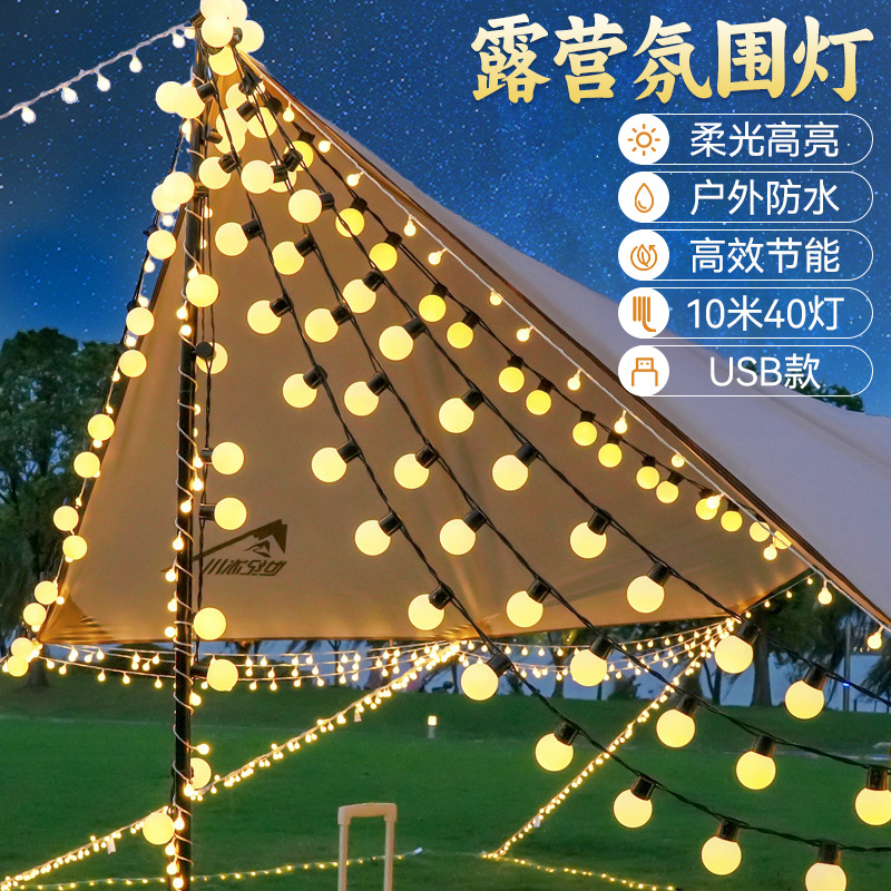 장식 분위기 램프 스톨 스트링 캠핑 태양 캐노피 텐트 야외 램프 야시장 공 방수 컬러 램프 충전스토어 가기