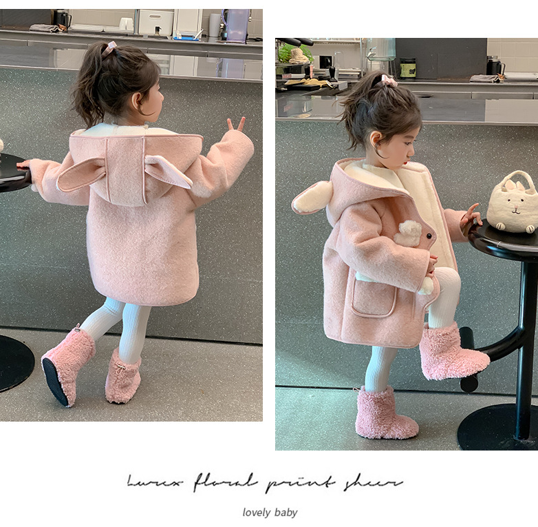 여아 코트 가을 겨울 2025 새로운 스타일의 퀼트 모피 일체형 아동 겨울 코트 플러스 벨벳 두꺼운 모직 코트스토어 가기