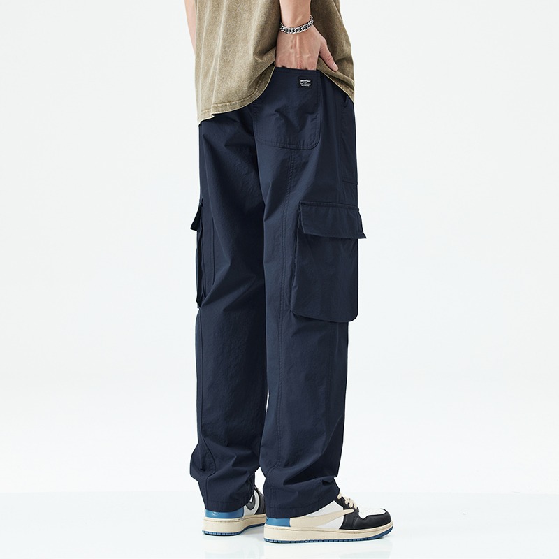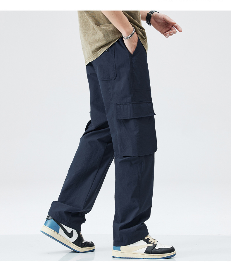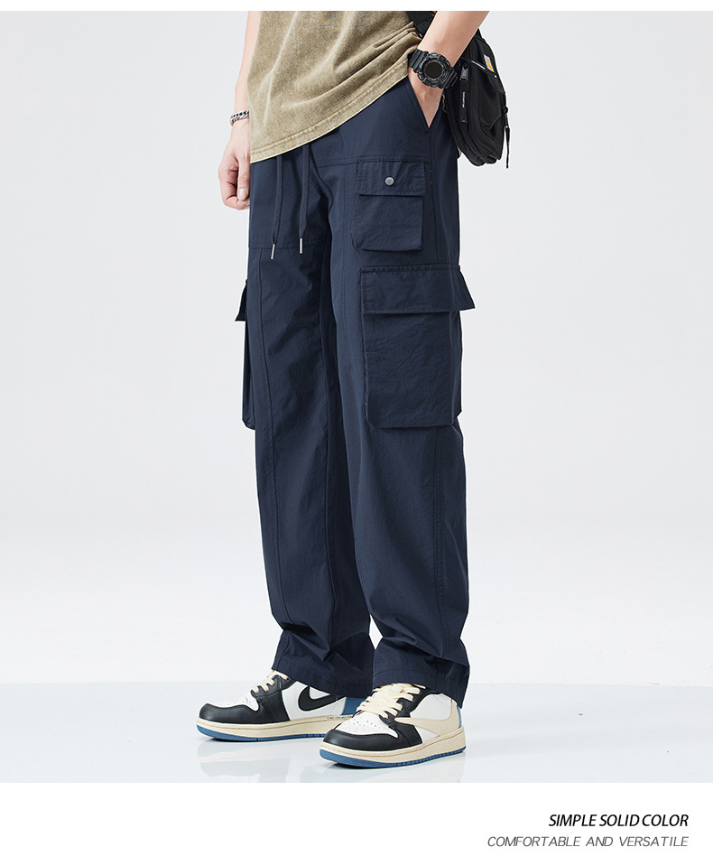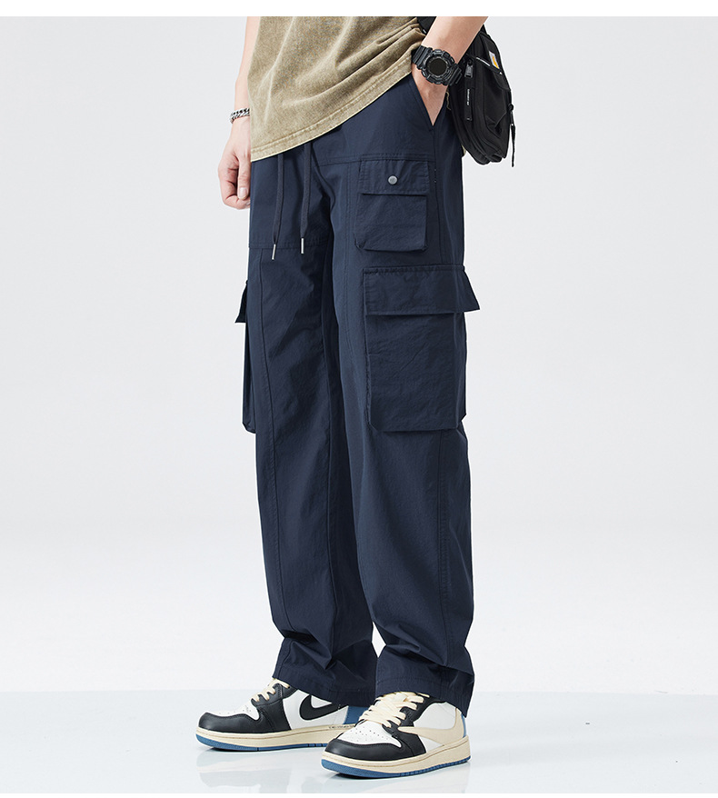 가을 2024 새로운 멀티 포켓 야외 기능성 작업복 바지 남성 유행 브랜드 아메리칸 스타일 레트로 스트레이트 레그 와이드 레그 캐주얼 바지스토어 가기