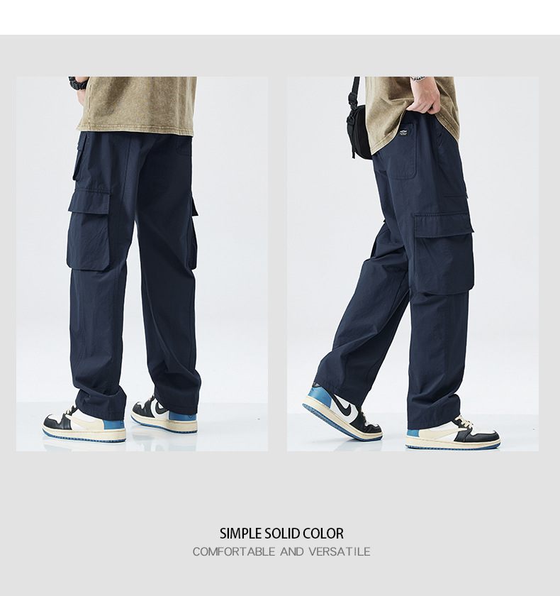 가을 2024 새로운 멀티 포켓 야외 기능성 작업복 바지 남성 유행 브랜드 아메리칸 스타일 레트로 스트레이트 레그 와이드 레그 캐주얼 바지