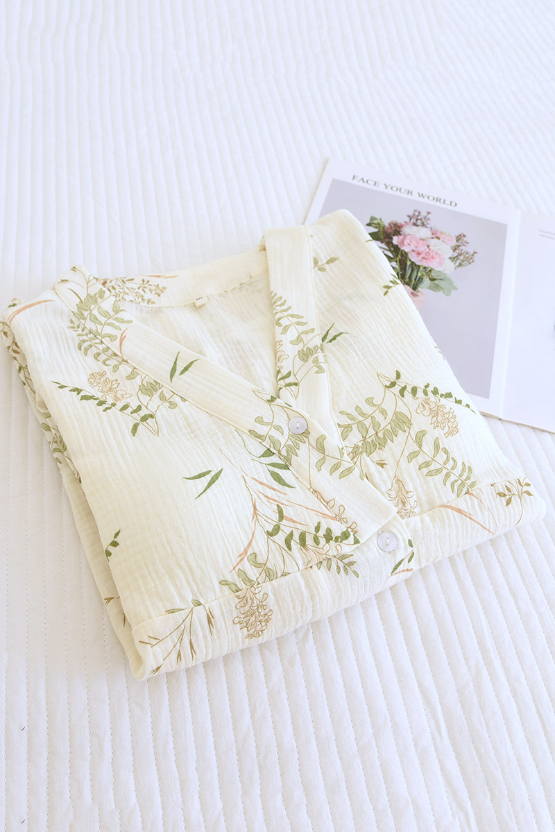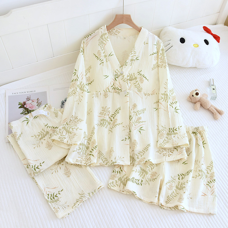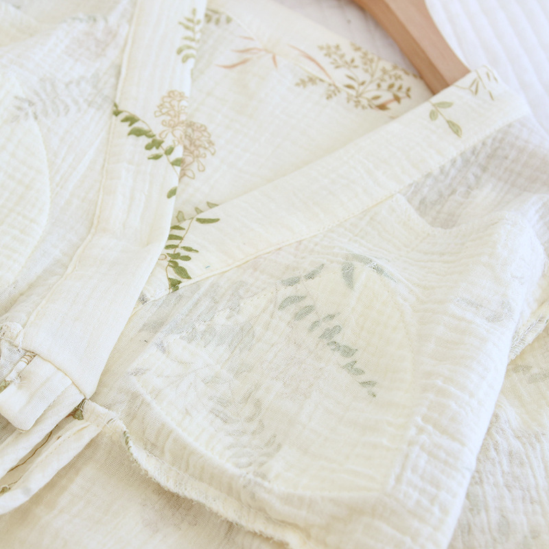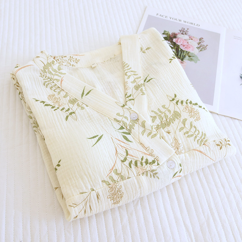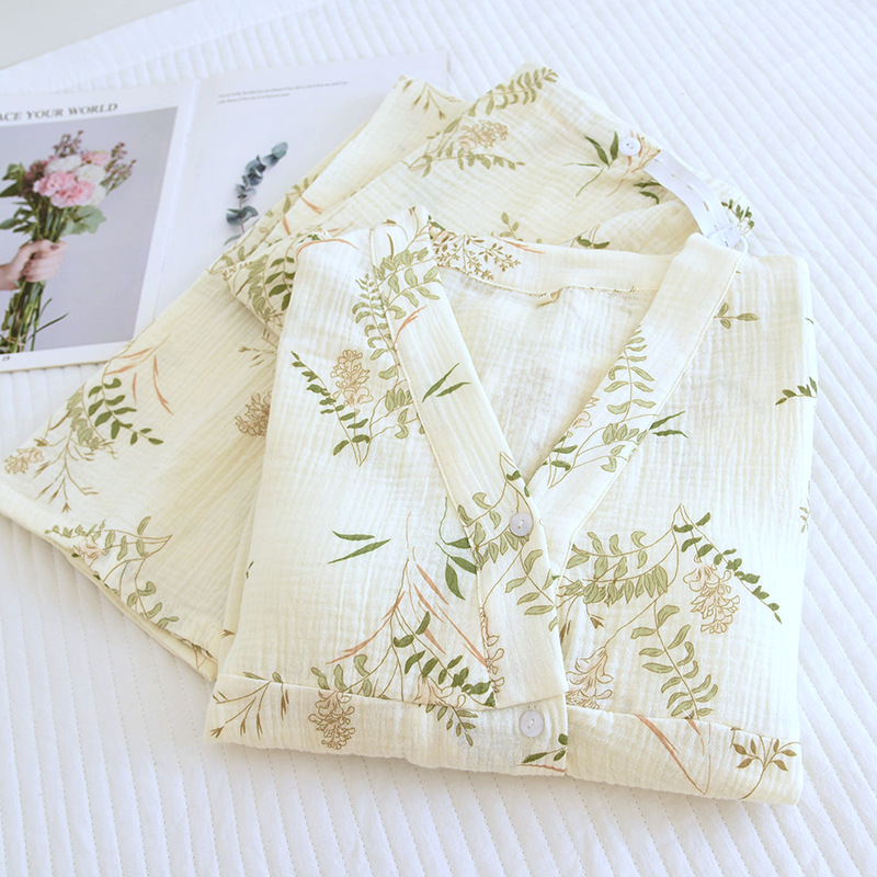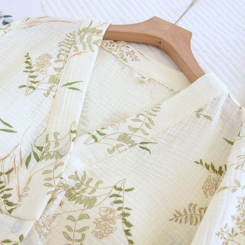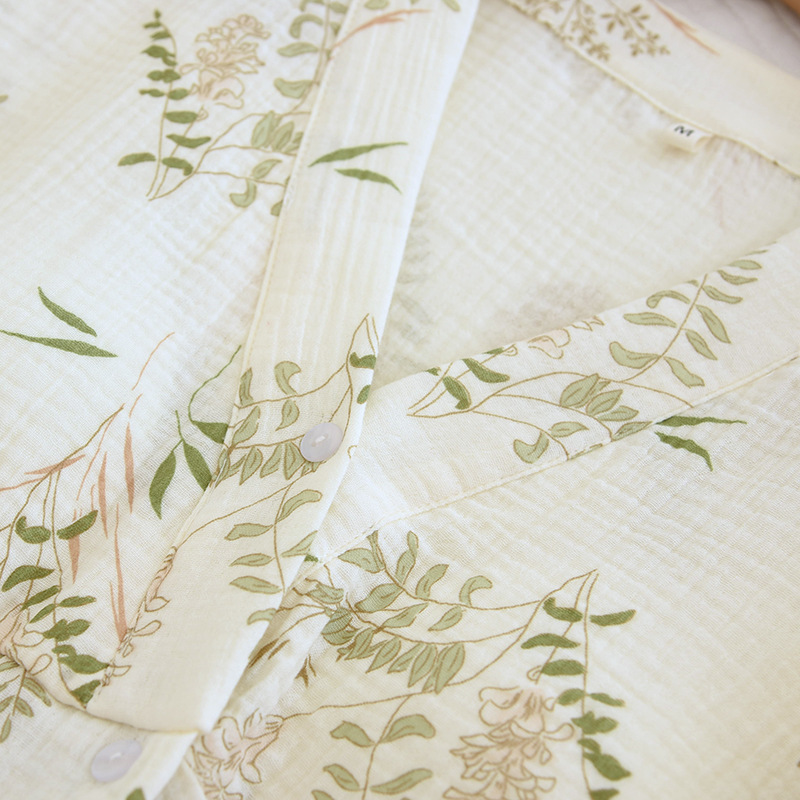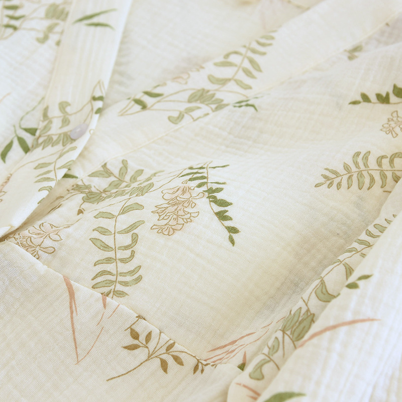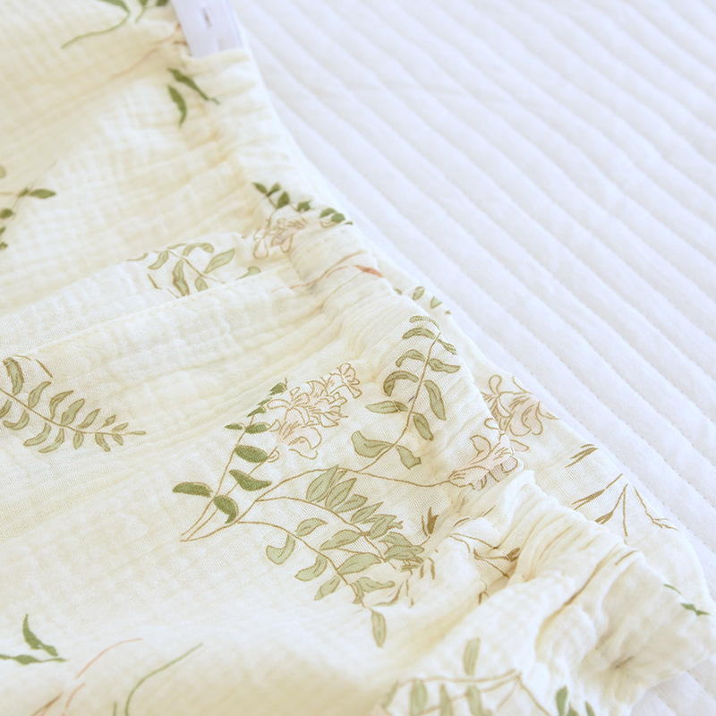 목가적 인 벨 플라워 코튼 크레페 여성 여름 봄과 가을 조정 가능한 바지 세트 착용 브래지어 없음스토어 가기