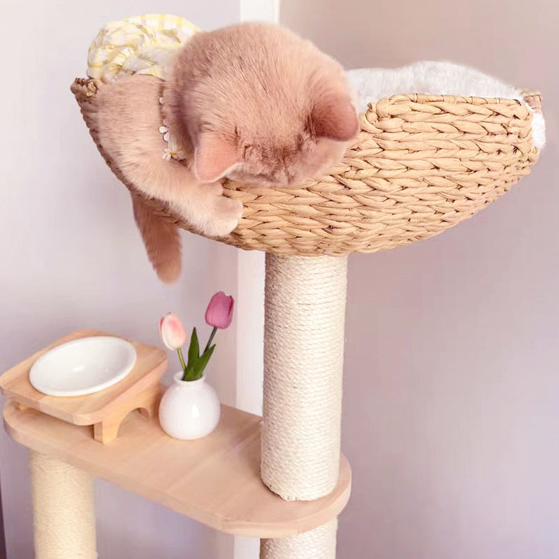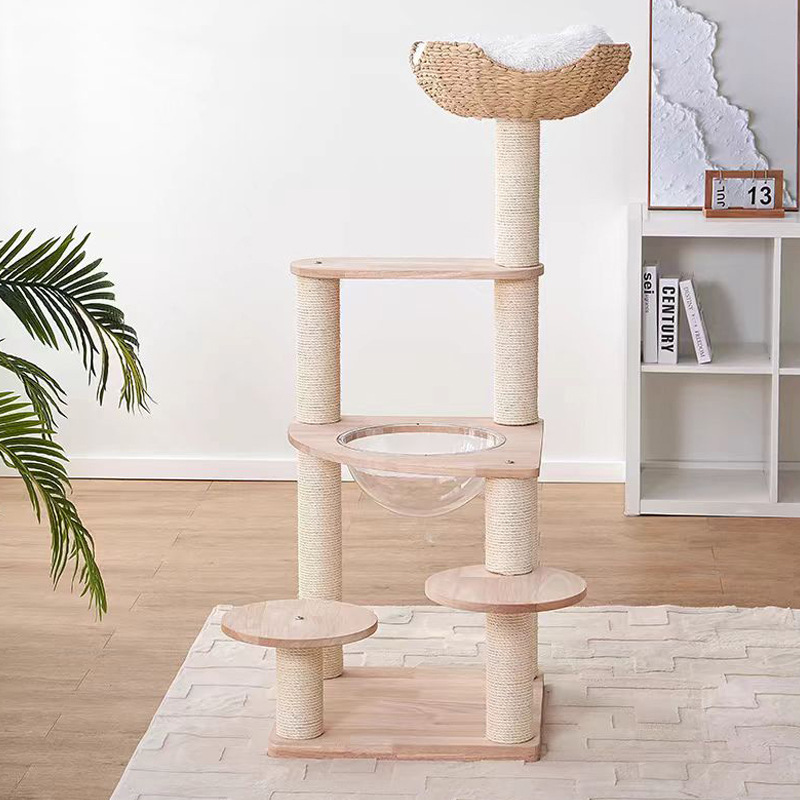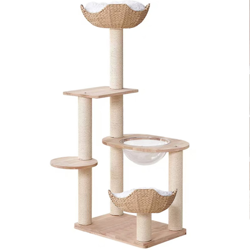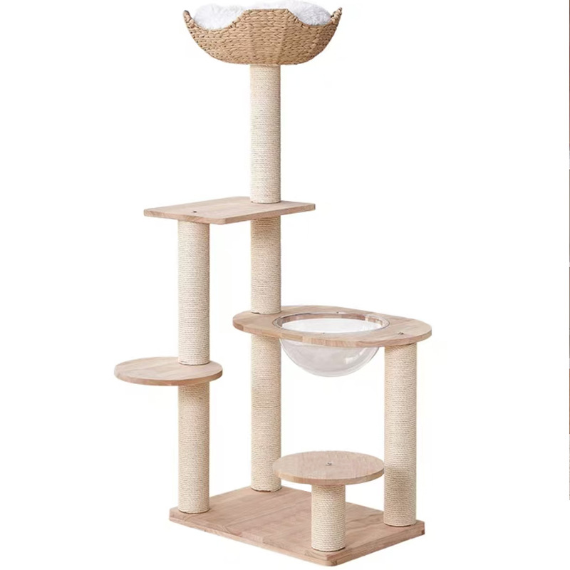 고양이 등반 프레임 단단한 나무 공간 캡슐 고양이 쓰레기 고양이 나무 통합 큰 점프 플랫폼 기둥 안정화 고양이 장난감