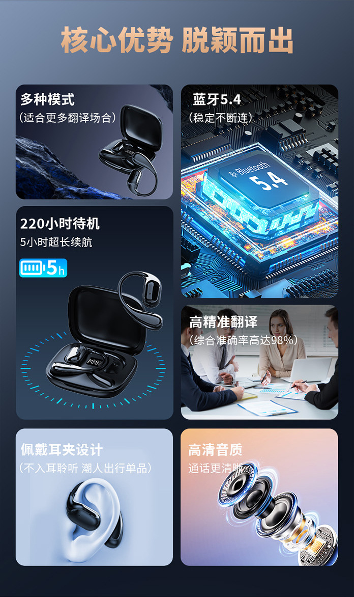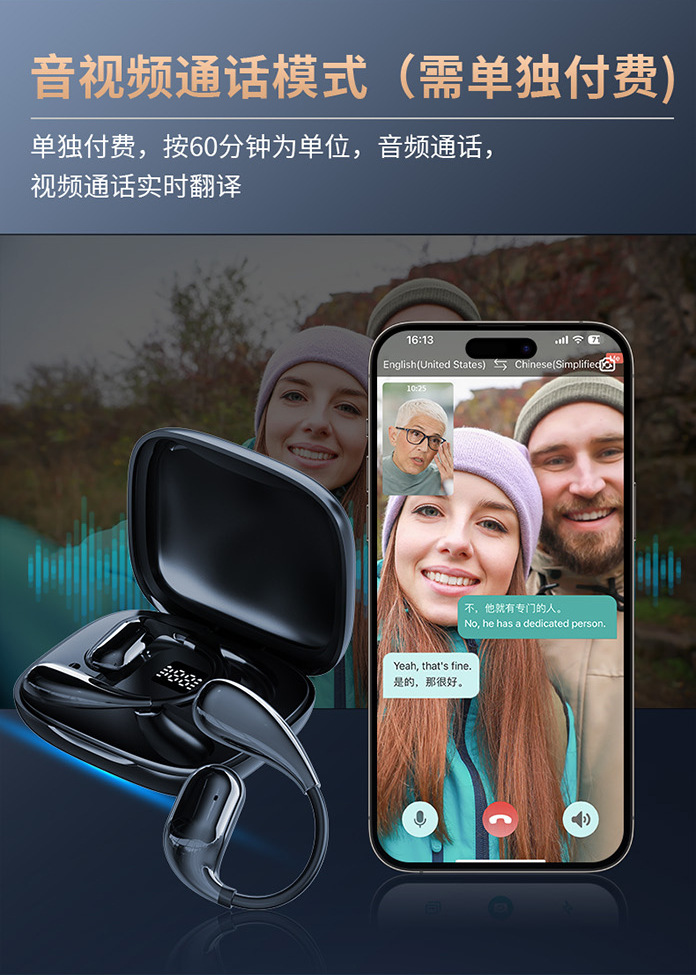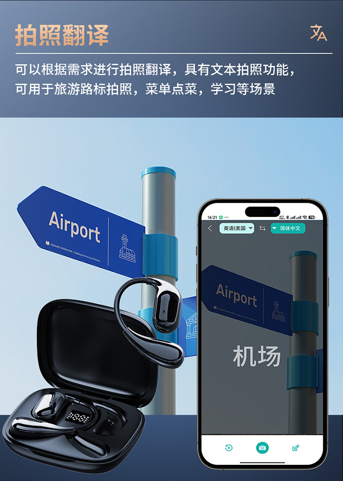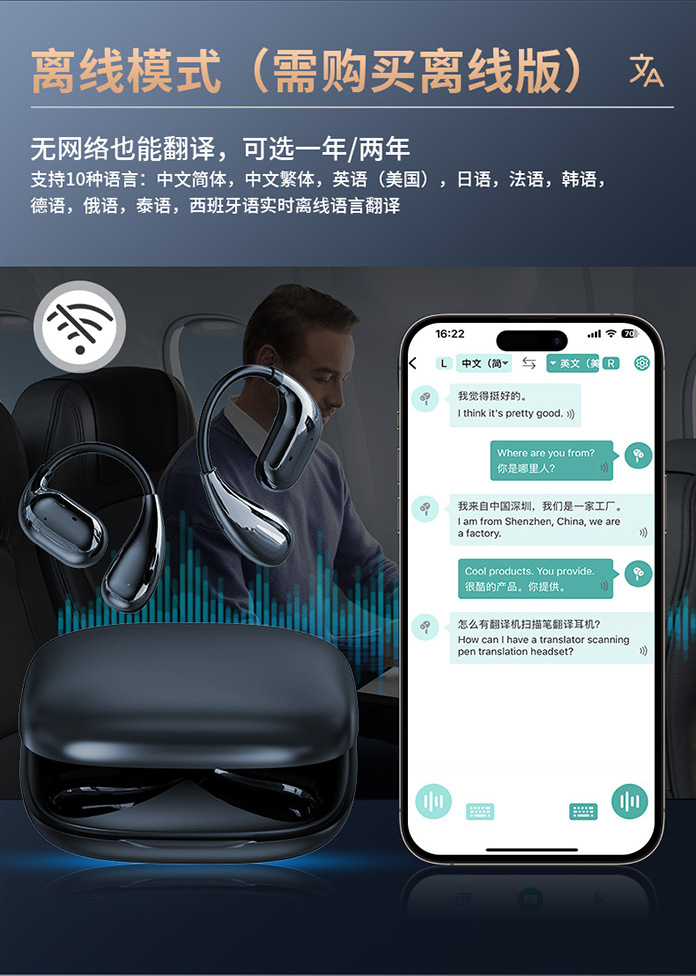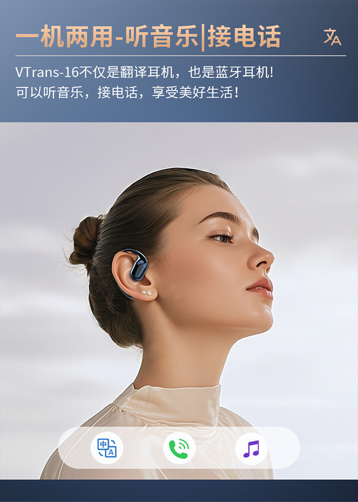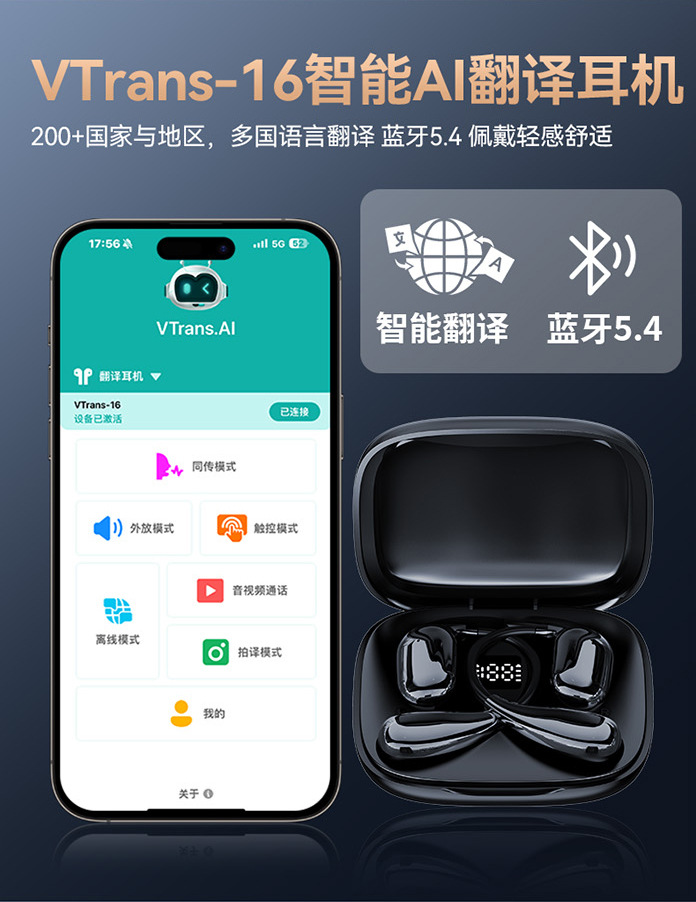 국경 간 대외 무역 V16 지능형 번역 헤드셋 동시 통역 다국어 실시간 오프라인 번역 헤드셋 Bluetooth