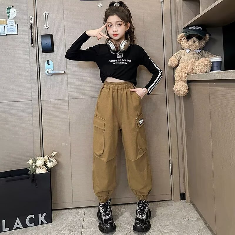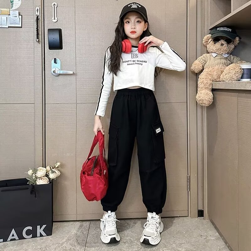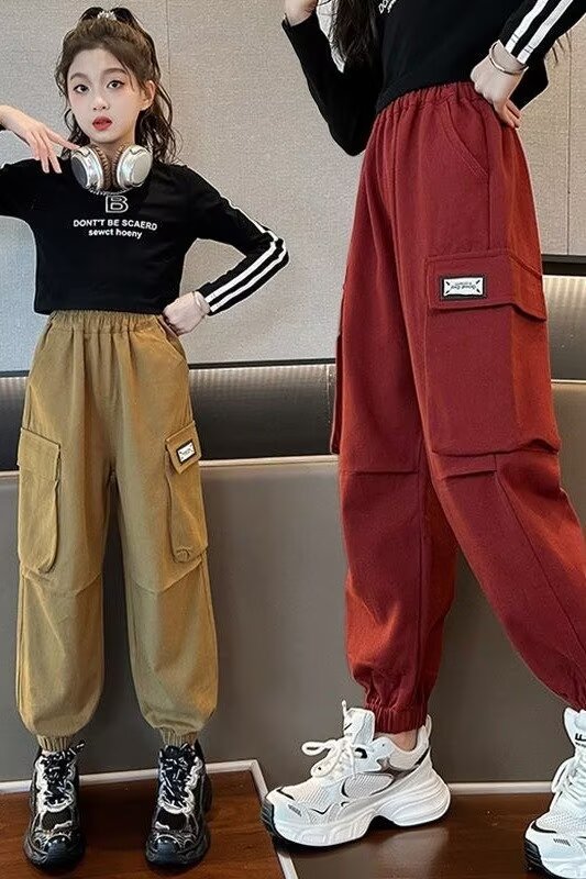 소녀의 봄과 가을 새로운 코일 바지 큰 어린이 느슨한 바지 어린이 2024 봄과 가을 캐주얼 스포츠 발 바지스토어 가기
