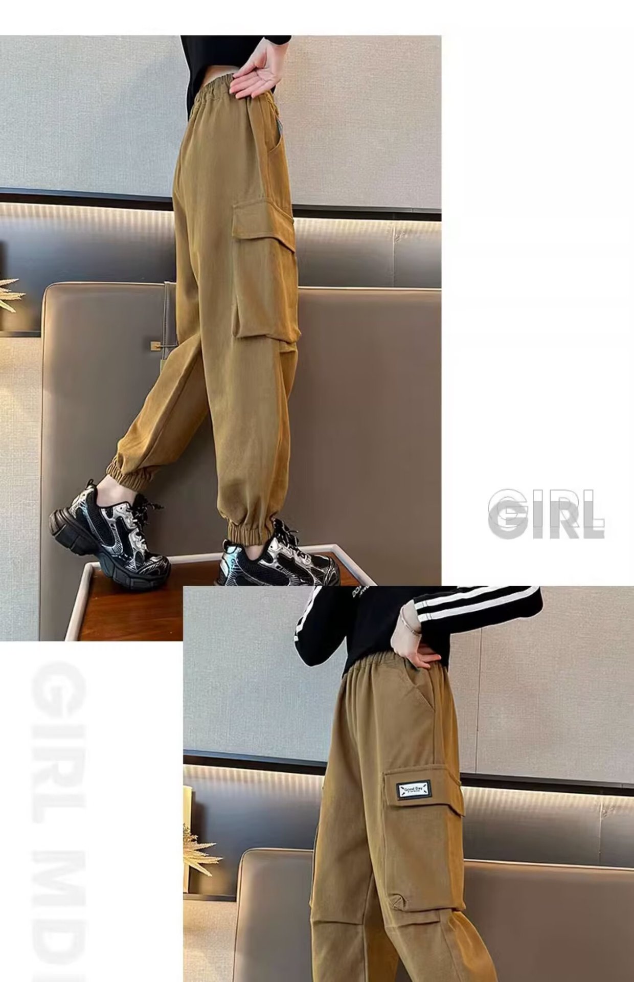 소녀의 봄과 가을 새로운 코일 바지 큰 어린이 느슨한 바지 어린이 2024 봄과 가을 캐주얼 스포츠 발 바지