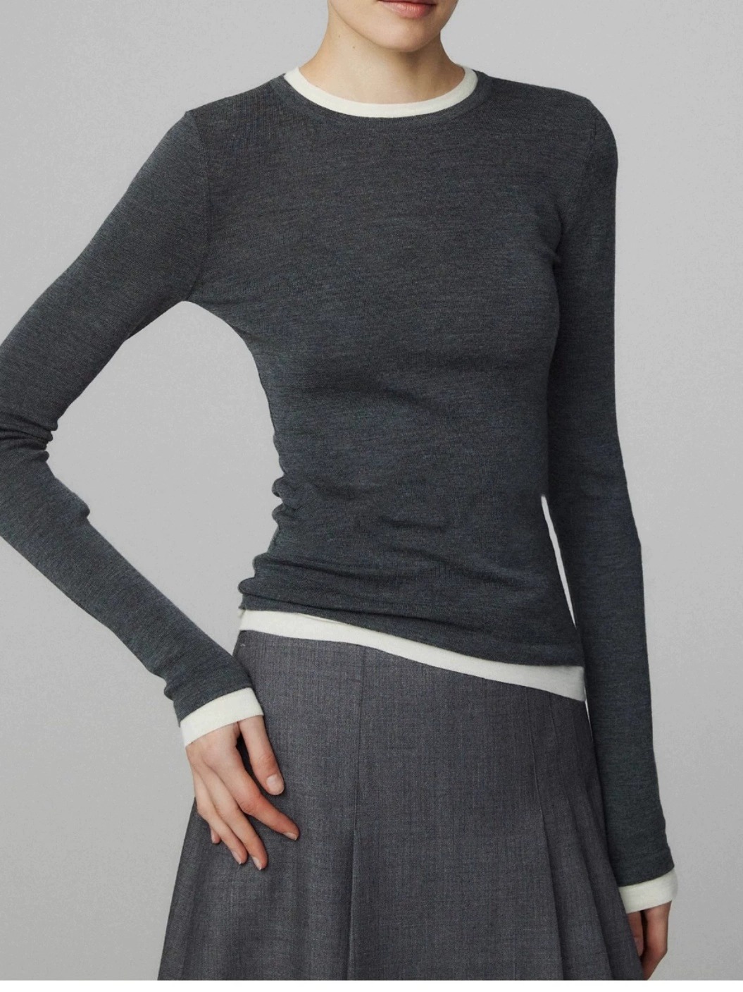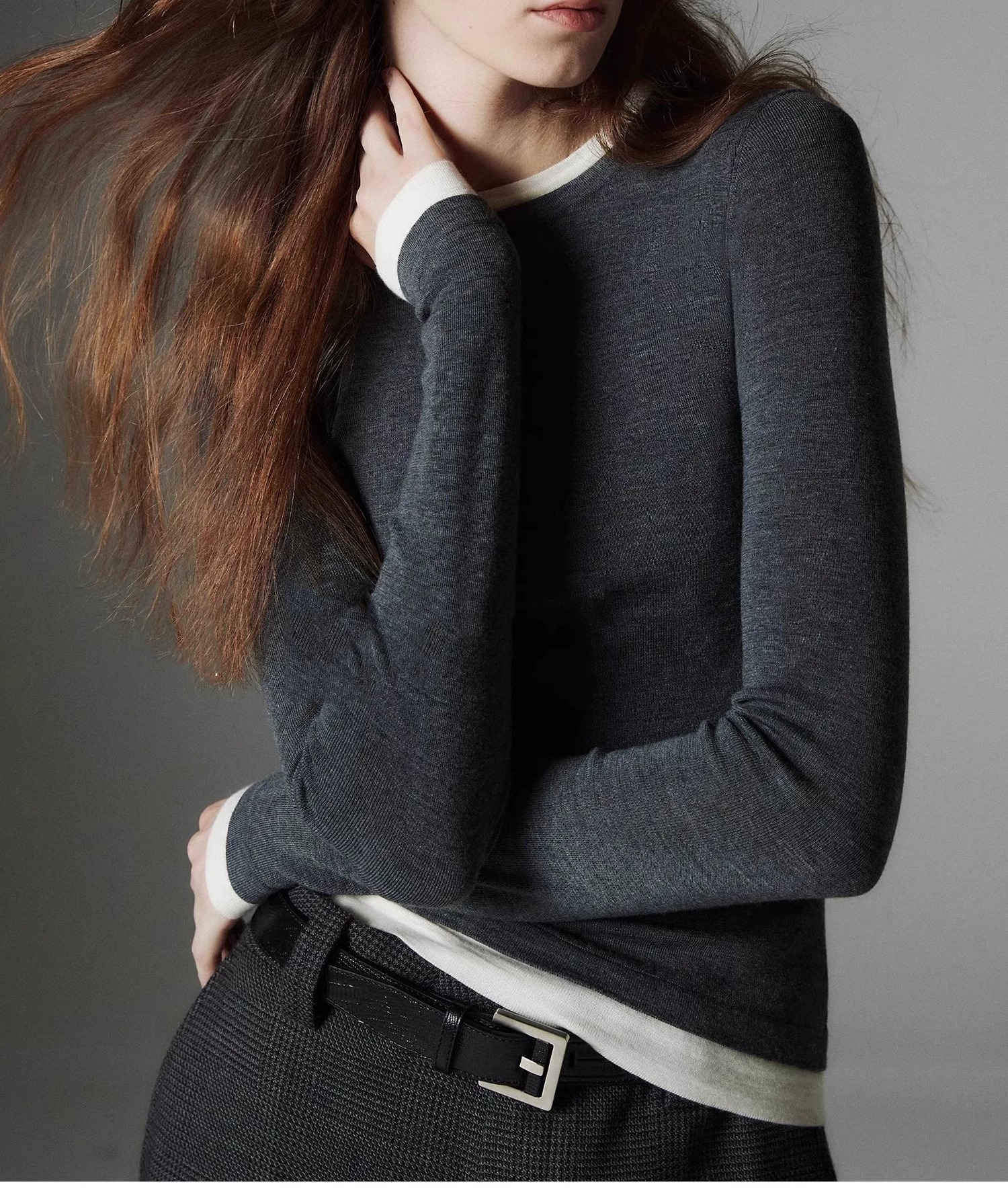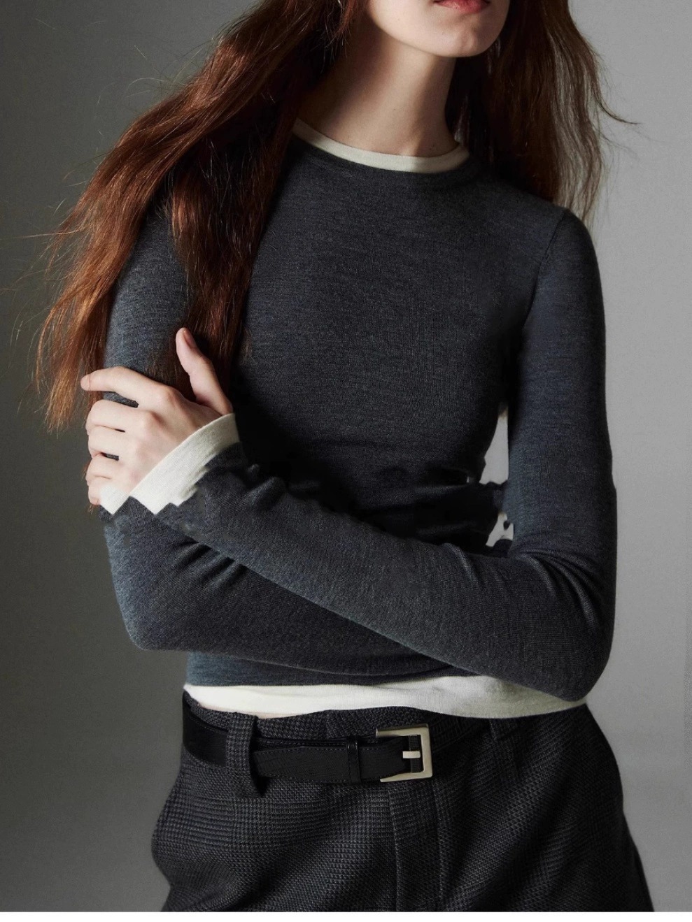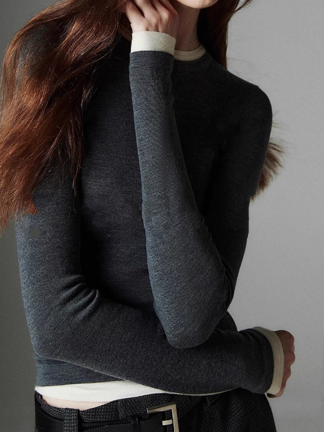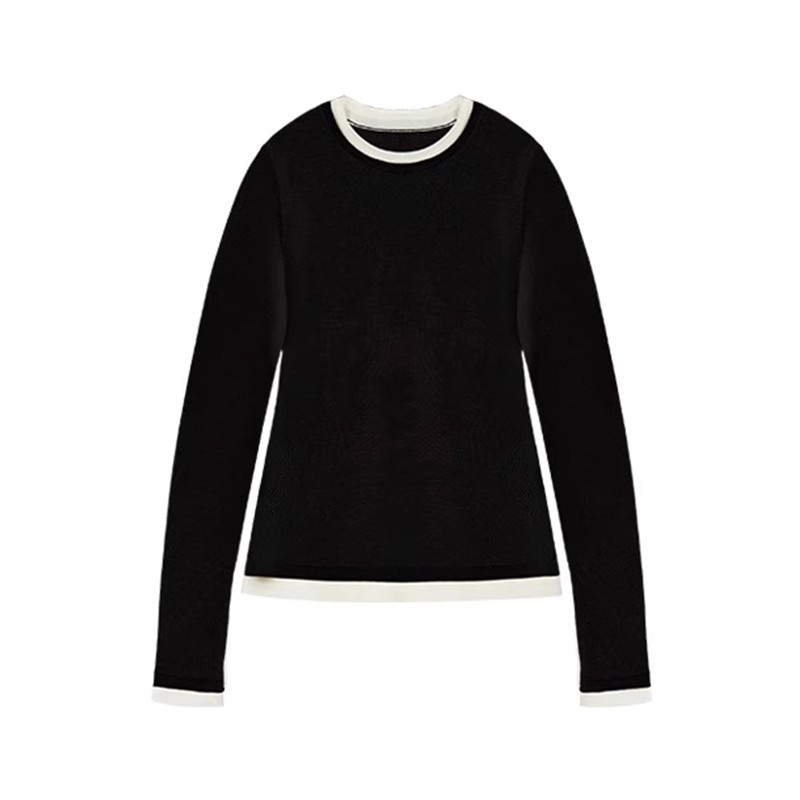하이 엔드 콘트라스트 컬러 베이스 셔츠 여성의 가을과 겨울 골드 울 120 년대 세탁 대비 컬러 가짜 투피스 멀티 칼라 니트스토어 가기