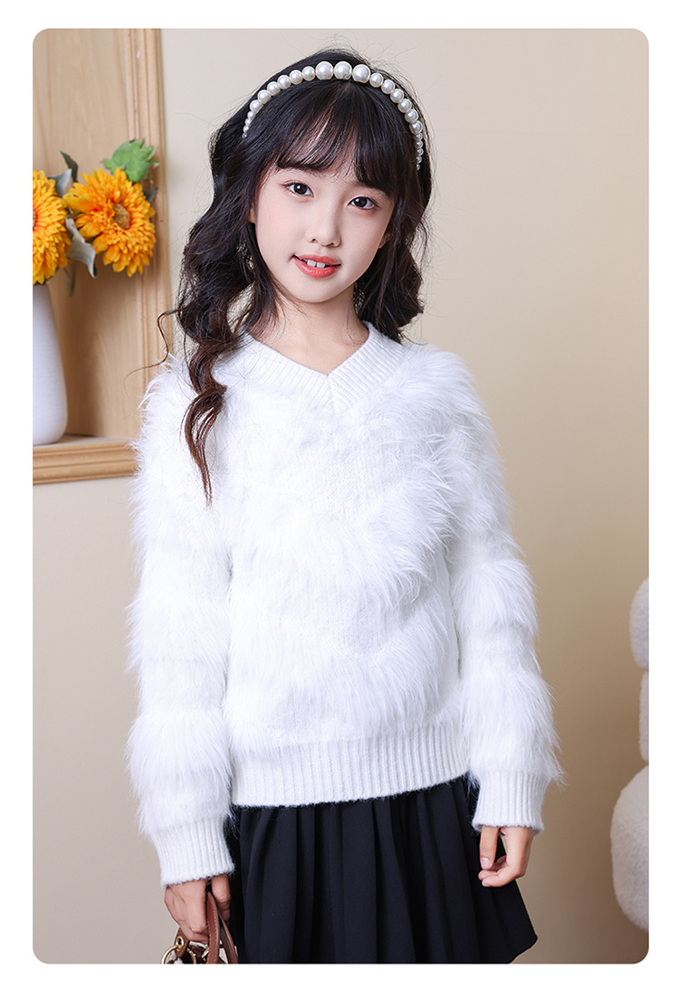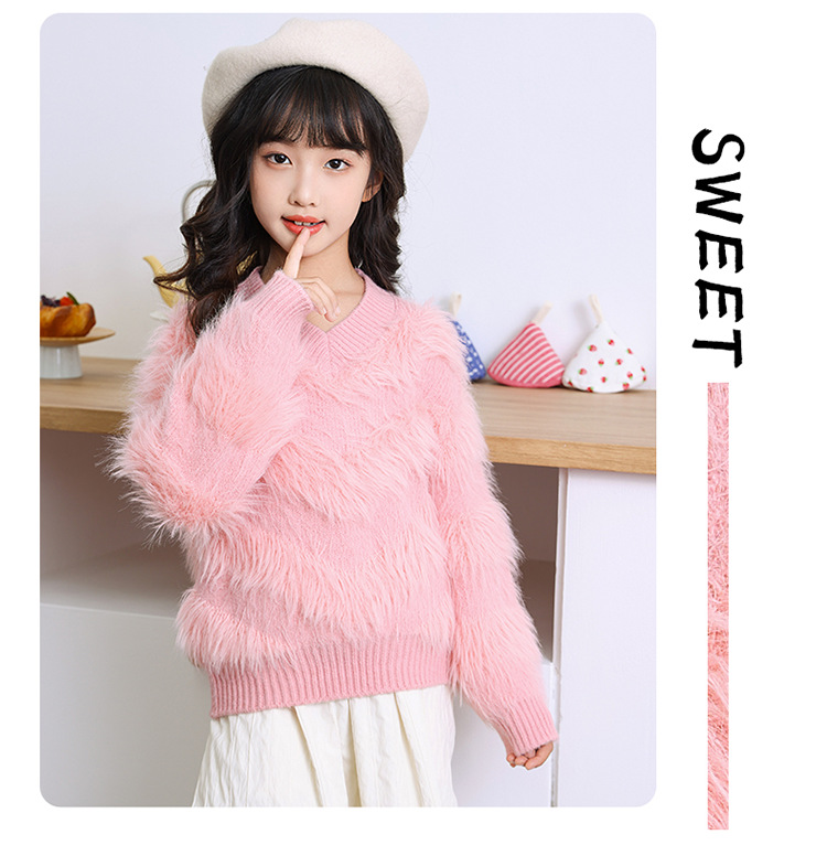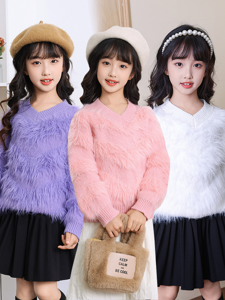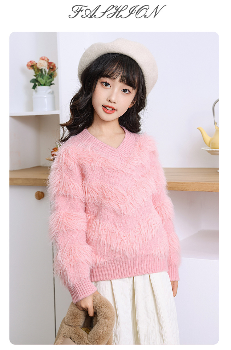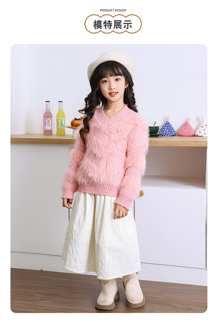 소녀 스웨터 2024 새로운 가을과 겨울 두꺼운 풀오버 소녀의 해 스타일 서양식 코트 어린이 느슨한 니트 스웨터