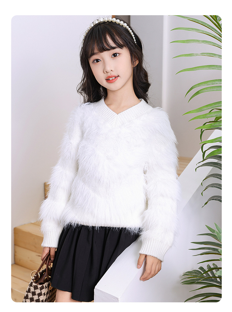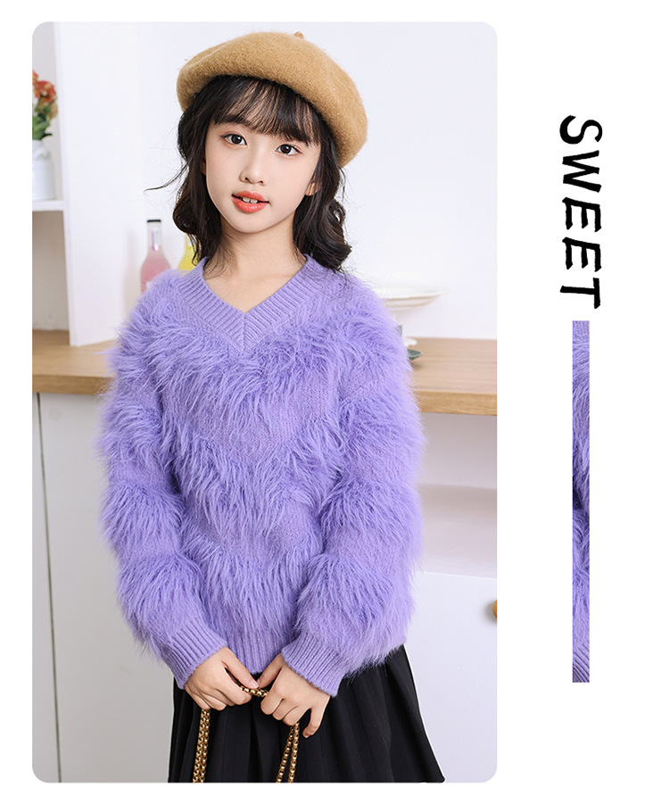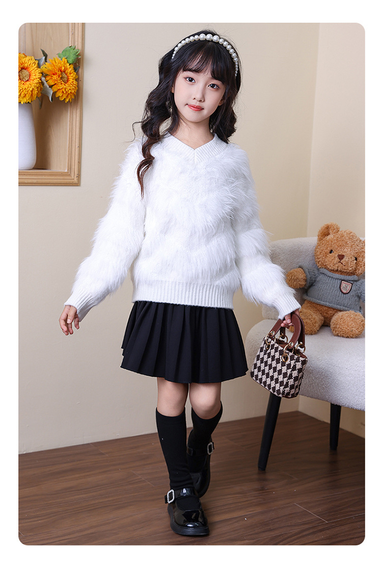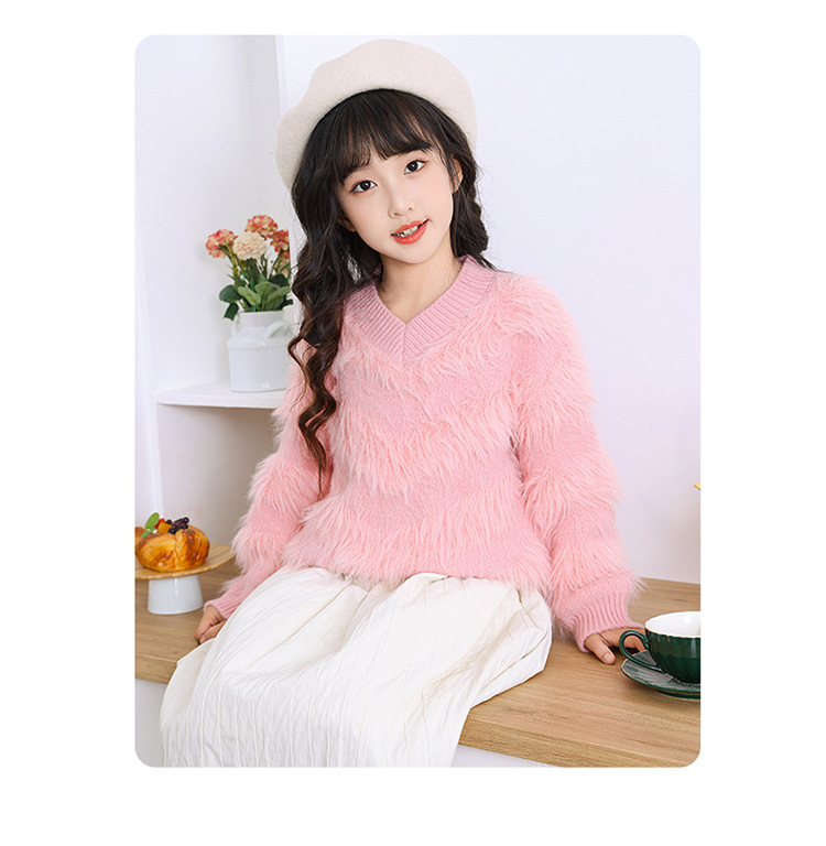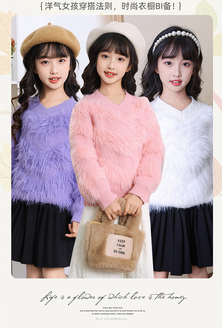 소녀 스웨터 2024 새로운 가을과 겨울 두꺼운 풀오버 소녀의 해 스타일 서양식 코트 어린이 느슨한 니트 스웨터