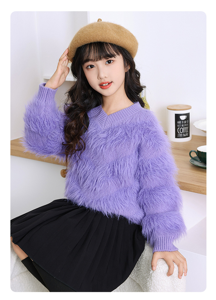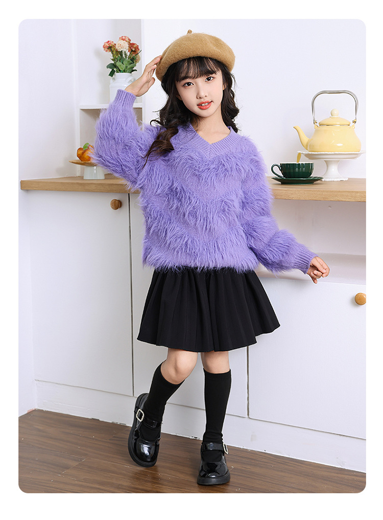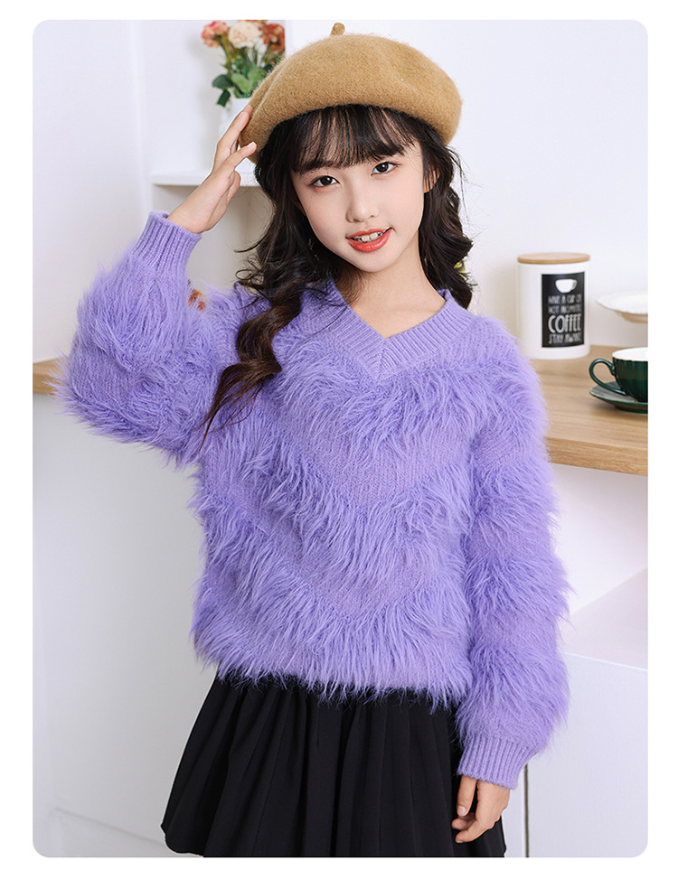• 모조 밍크 보라색 치킨 하트 풀오버
