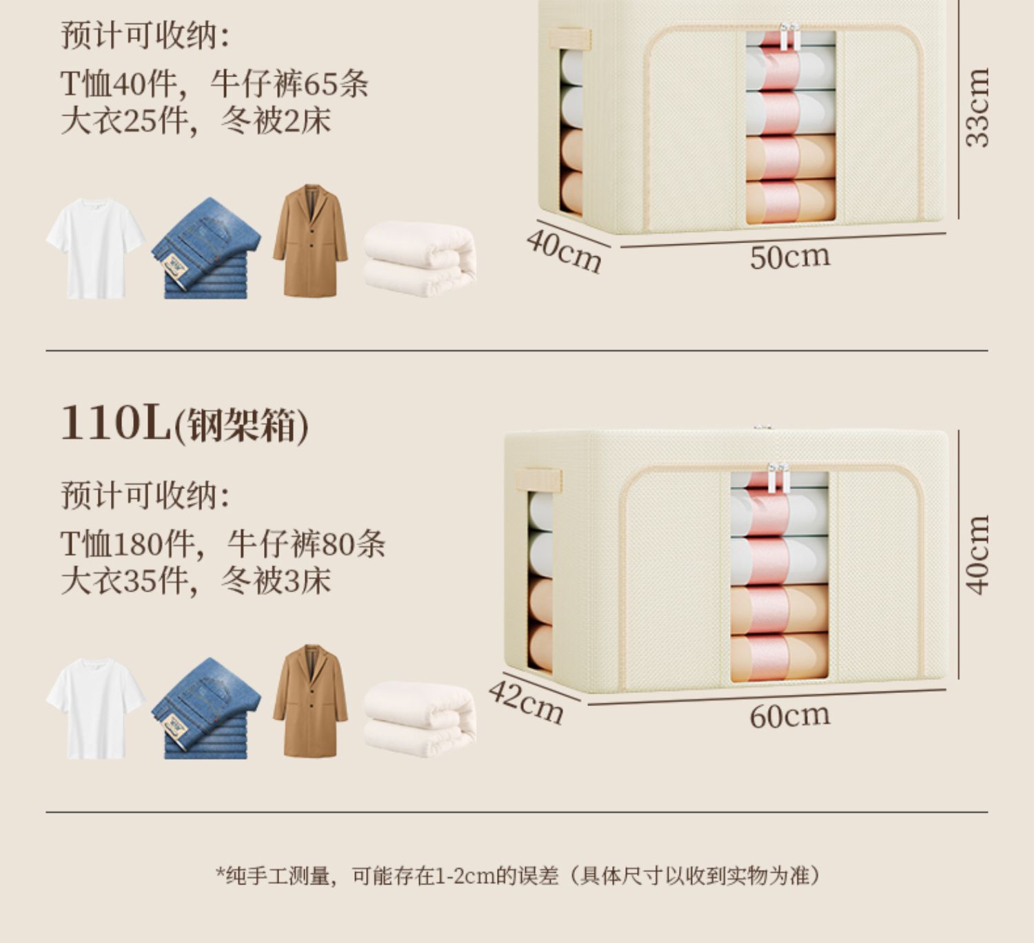 저장 상자 가정용 대용량 옷장 옷 퀼트 바지 저장 상자 직물 접히는 저장 상자스토어 가기