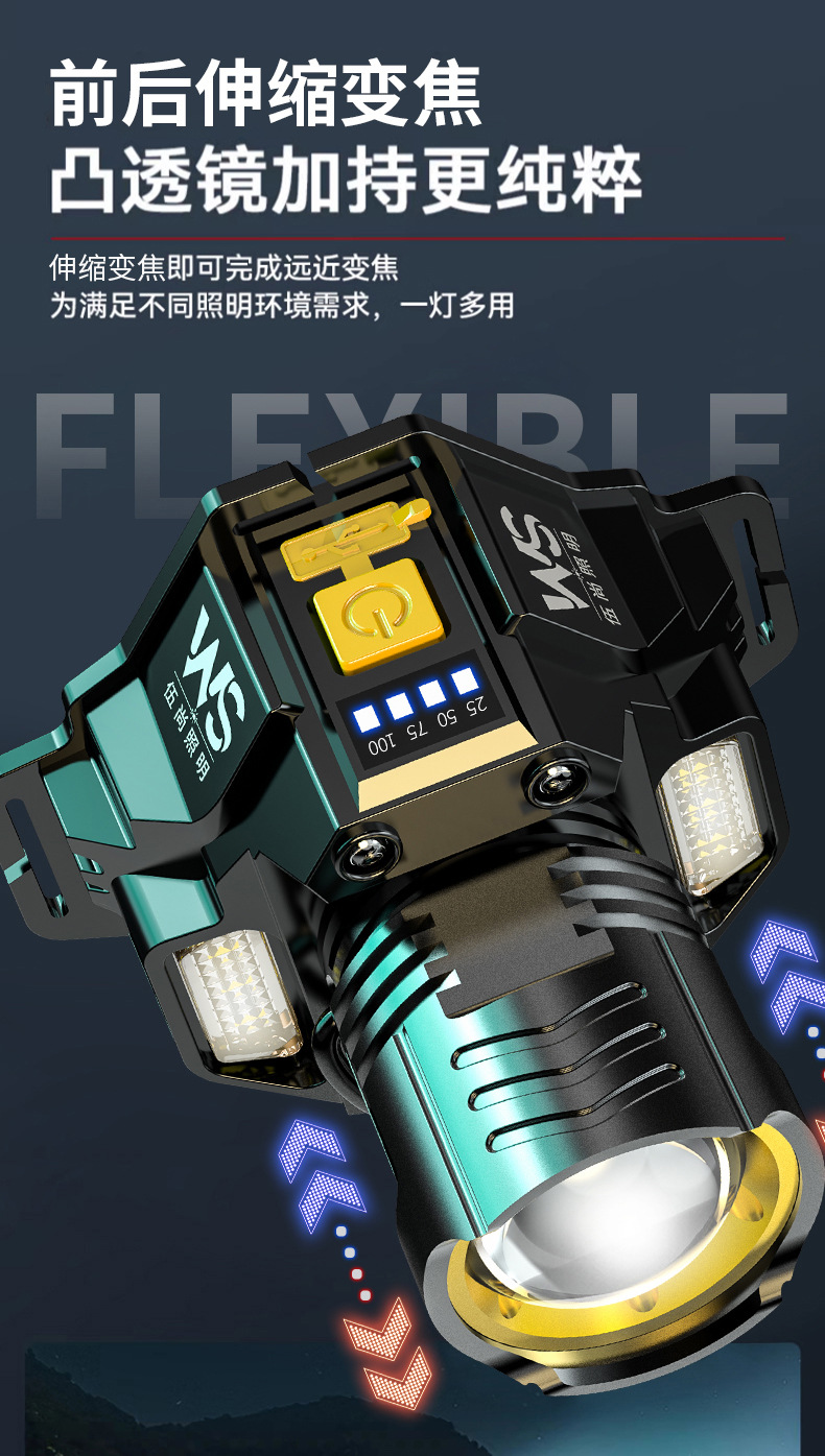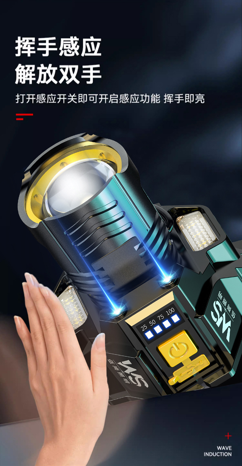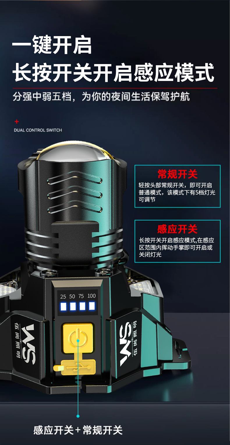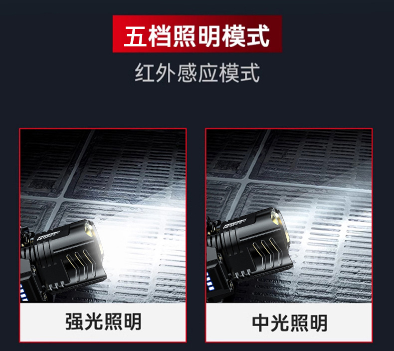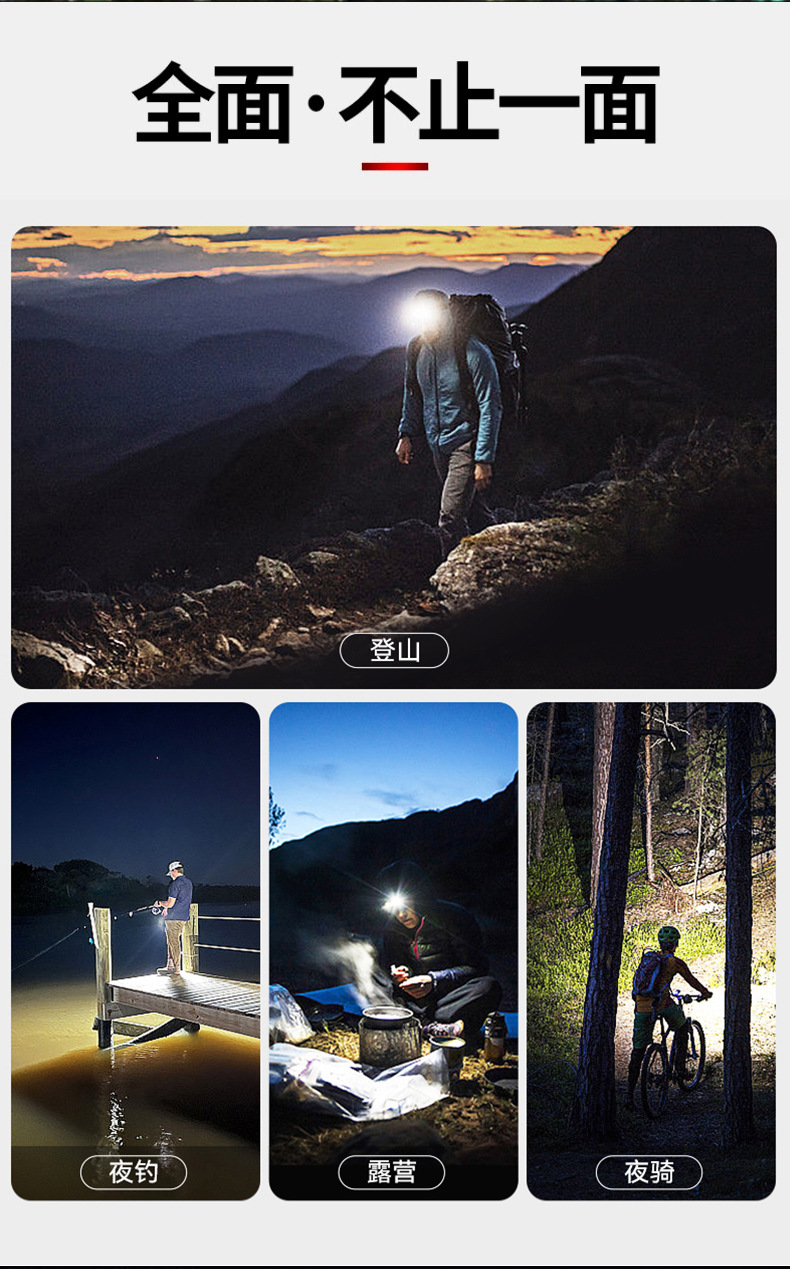 큰 승객 국경 슈퍼 밝은 빛 밤 낚시 유도 광산 USB 충전 비상 지능형 헤드 장착 야외 조명