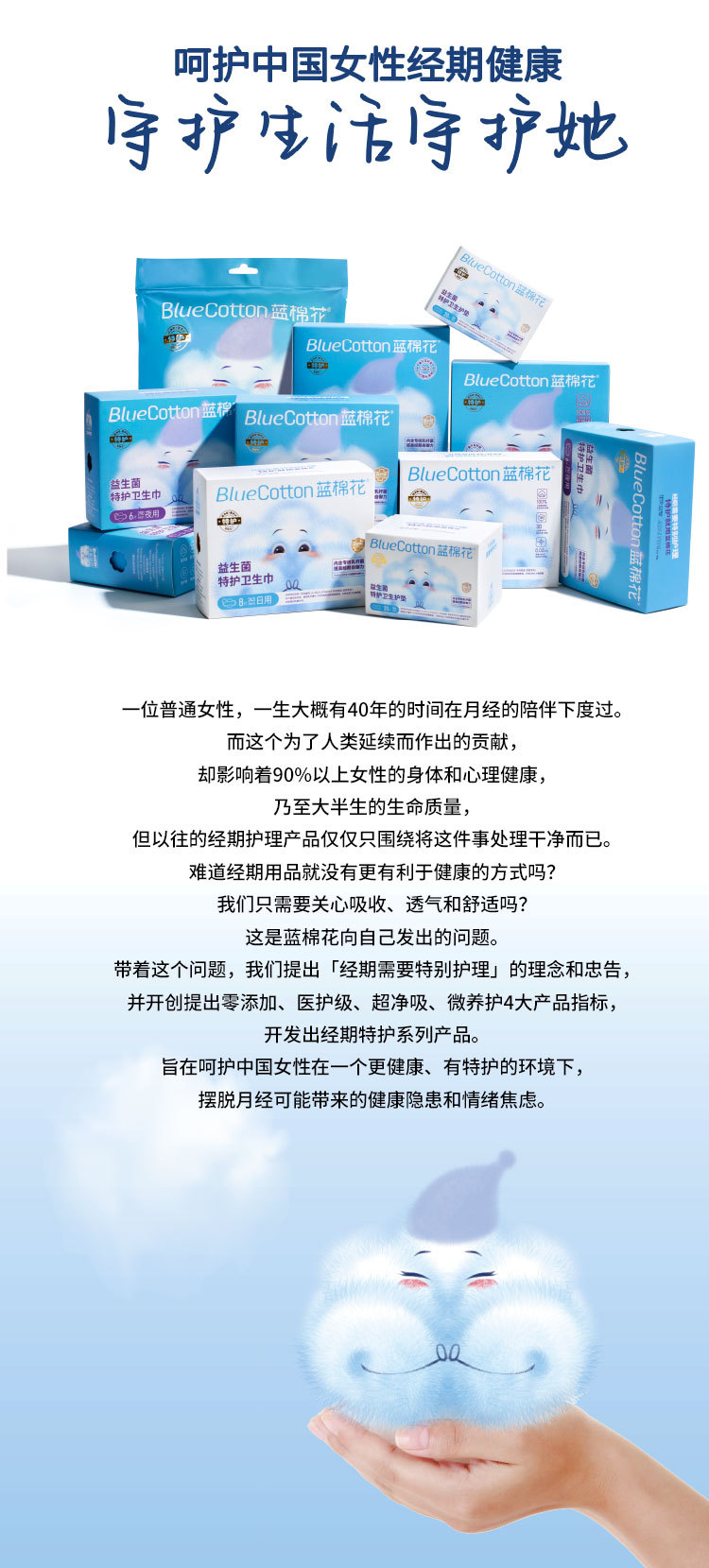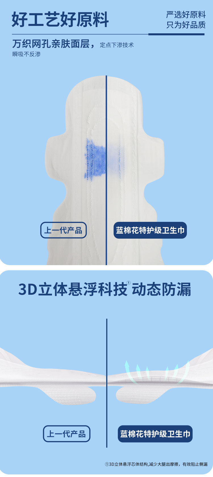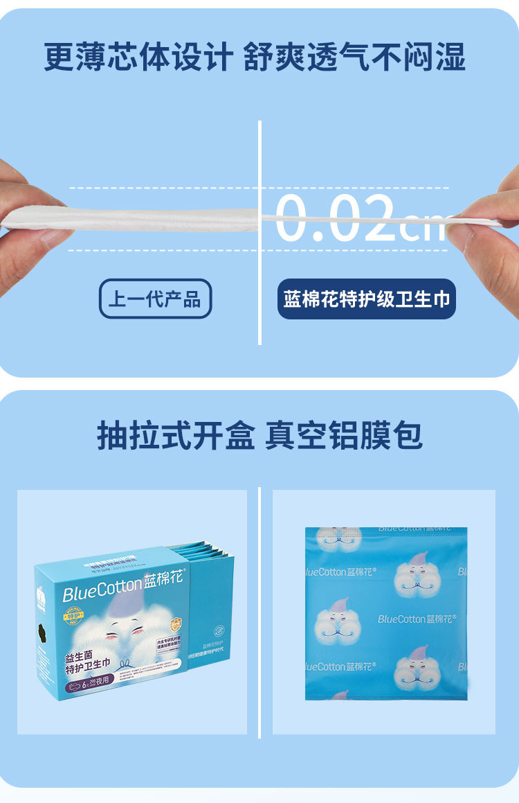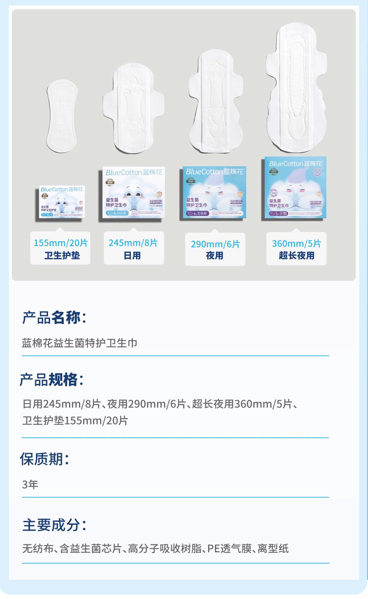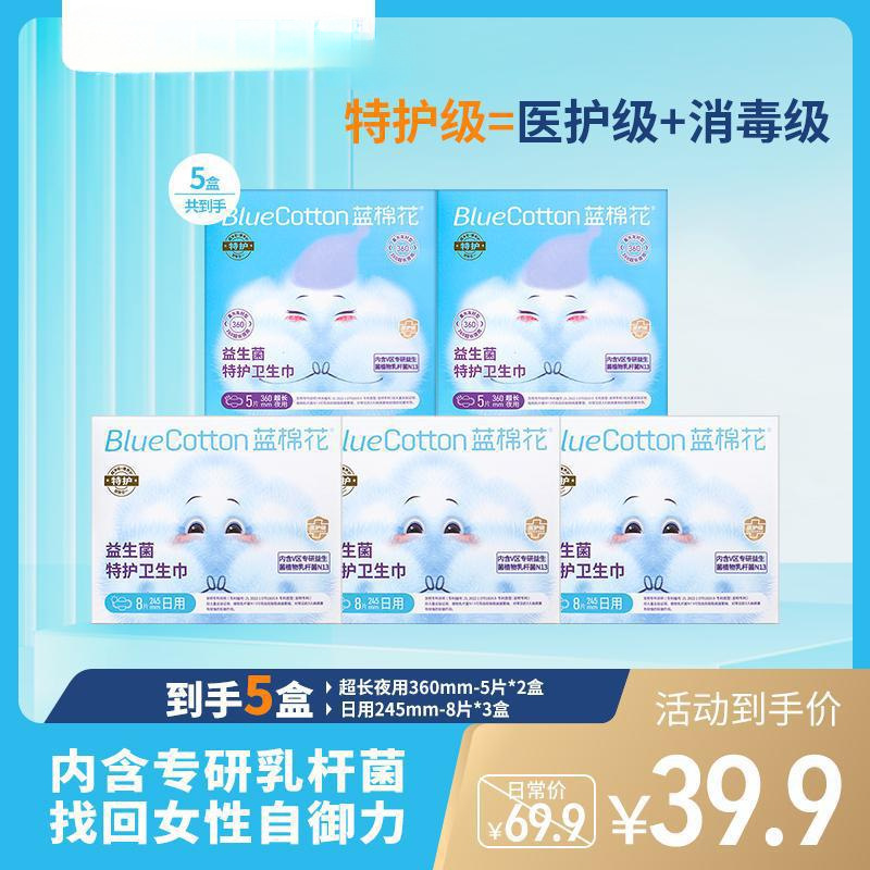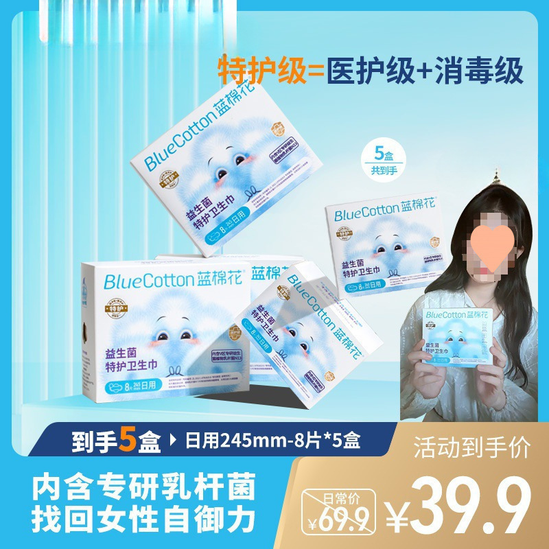 블루 코튼 특수 케어 프로 바이오 틱 생리대 휴대용 독립적 인 항균 냄새 습기 방지 우송료 세대