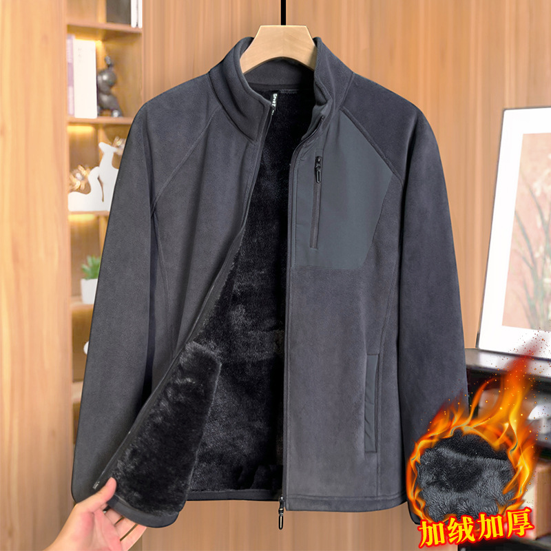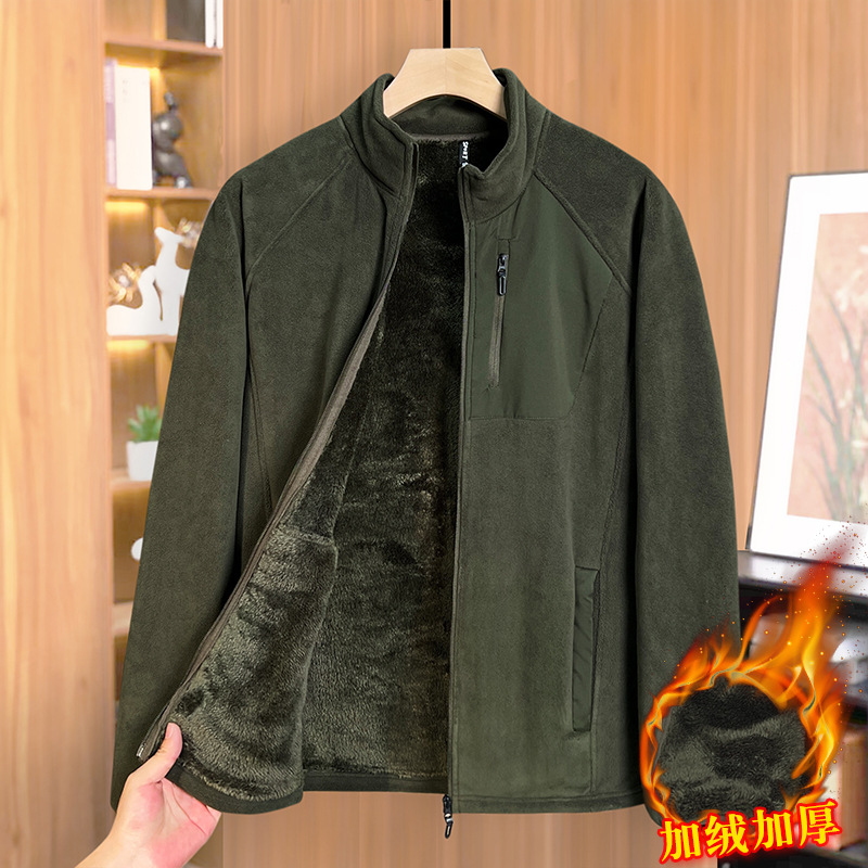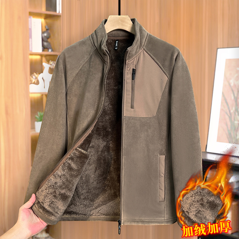 중년 아버지 겨울 코트 따뜻한 카디건 스웨터 작은면 패딩 재킷 가을과 겨울 남성 기모 두꺼운 양털 코트