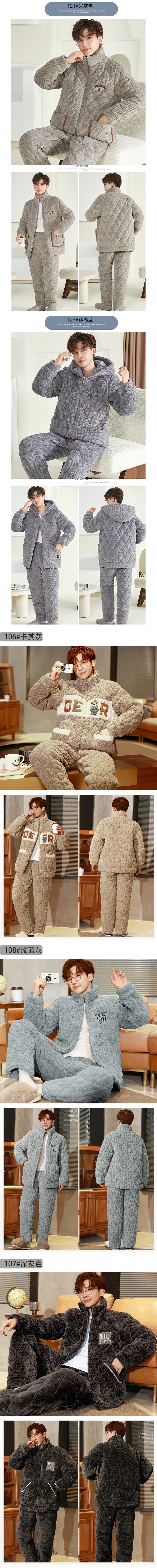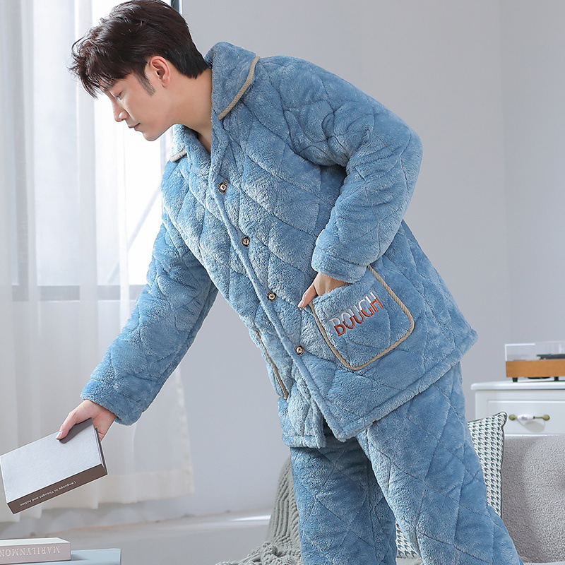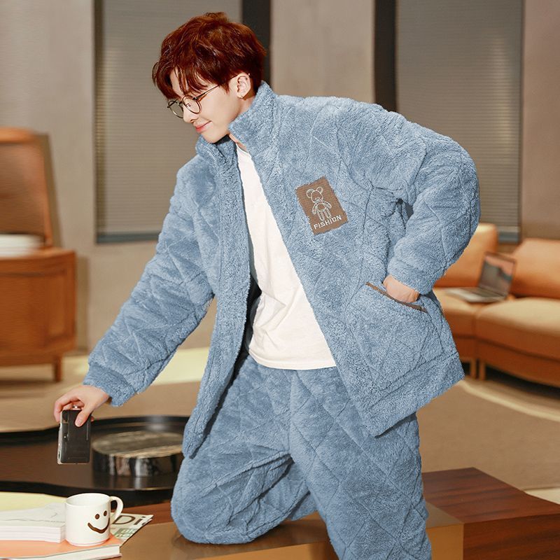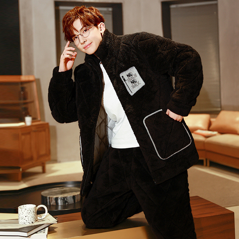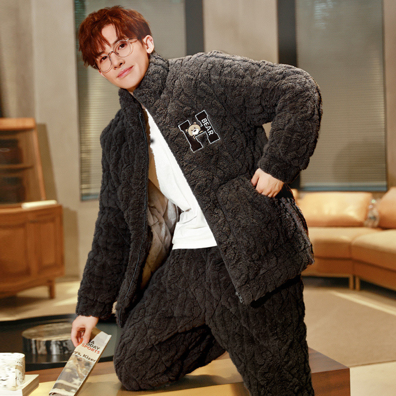 잠옷 남자의 가을과 겨울 두꺼운 기모 산호 양털 3 층 면화 자켓 남자의 겨울 슈퍼 두꺼운 따뜻한 집 옷스토어 가기