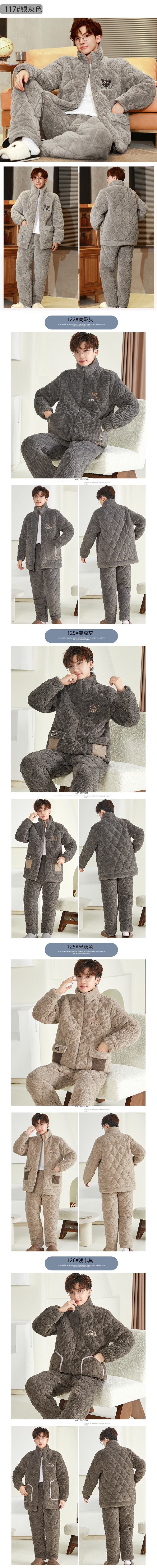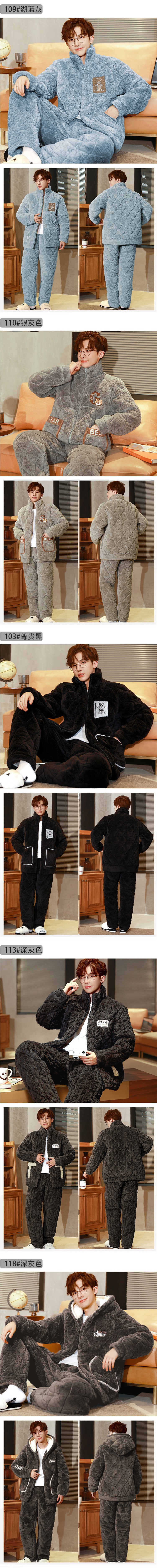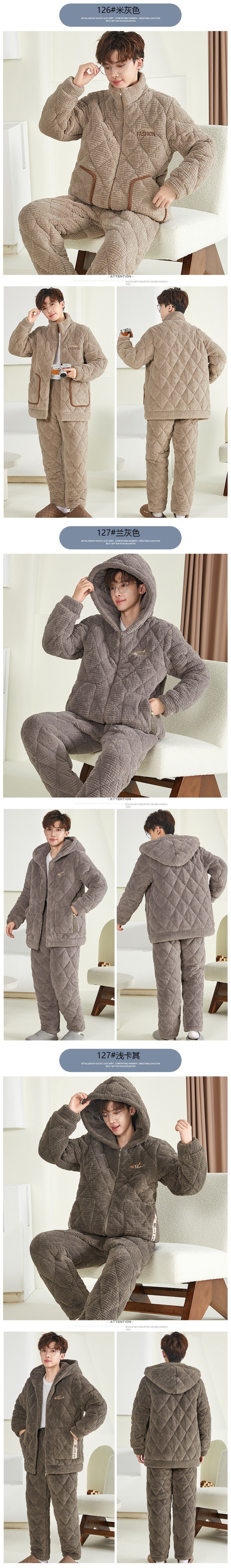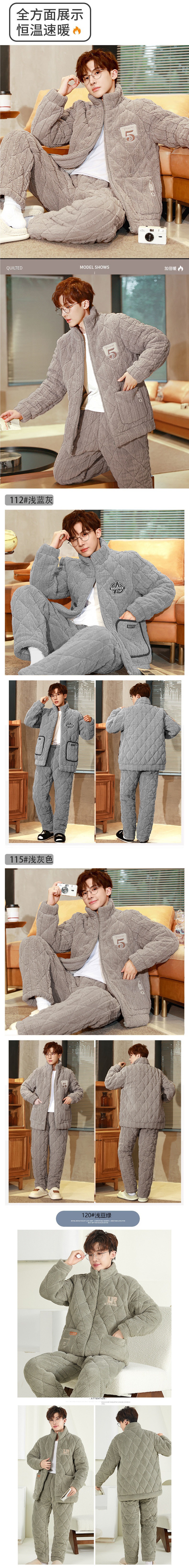 잠옷 남자의 가을과 겨울 두꺼운 기모 산호 양털 3 층 면화 자켓 남자의 겨울 슈퍼 두꺼운 따뜻한 집 옷스토어 가기