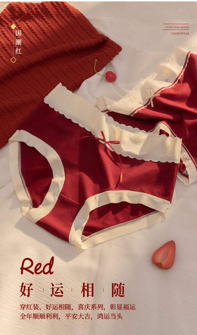 브닝 니언 레드 언더웨어 여성용 미드 웨이스트 편안한 추적없는 스테레오 타입 안티 러닝 그래 핀 항 박테리아 크로트 여성 브리프스토어 가기