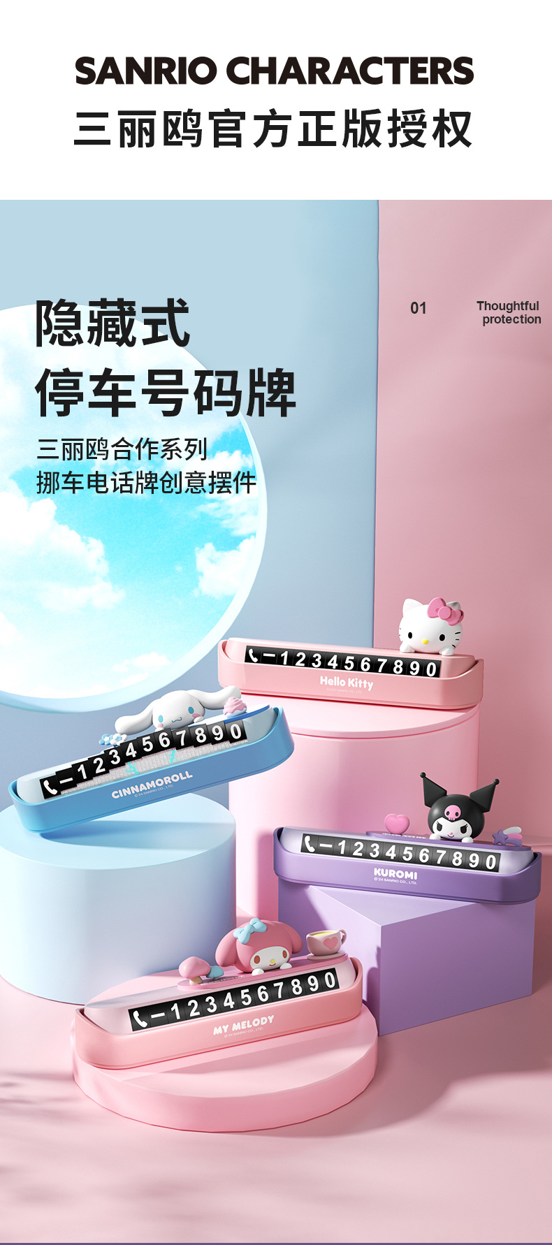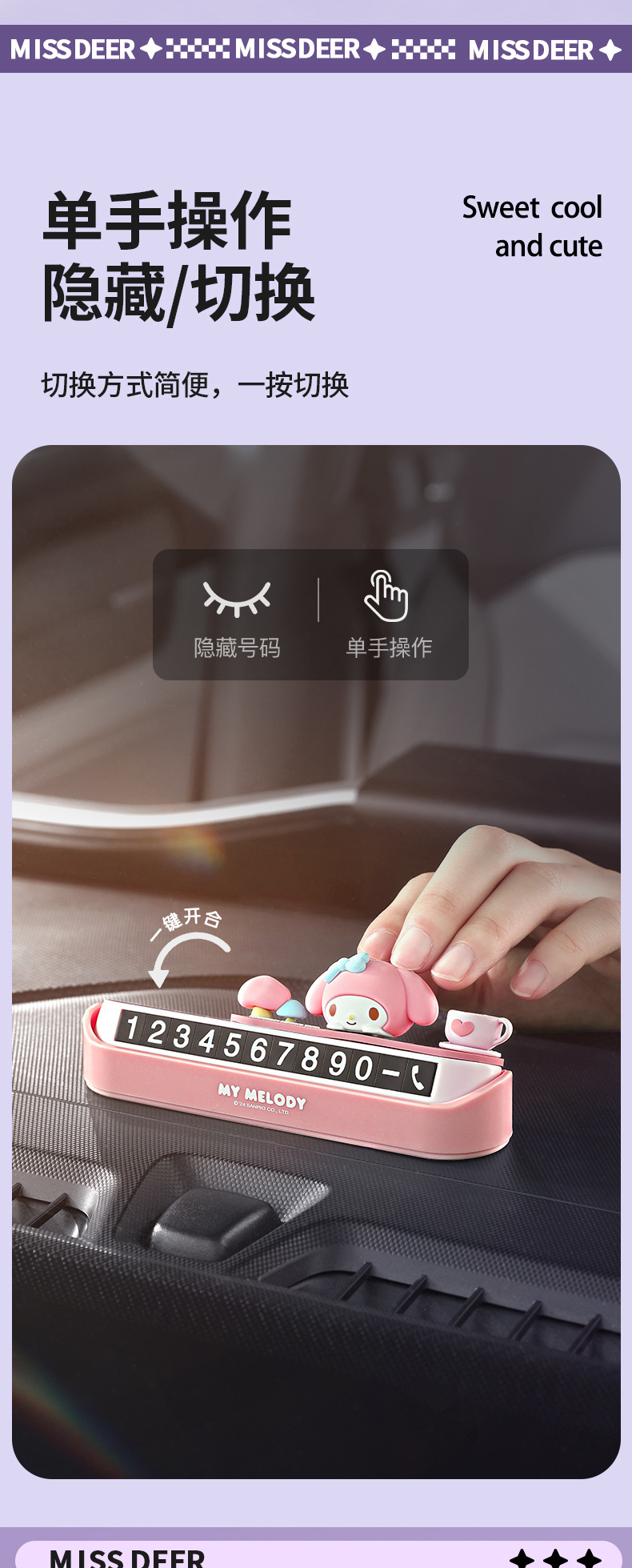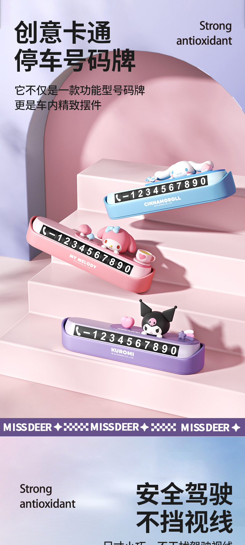 산리오 휴대 전화 번호판 임시 주차 번호판 소녀 귀여운 자동차 주차 번호판은 번호판을 움직이기 위해 숨길 수 있습니다