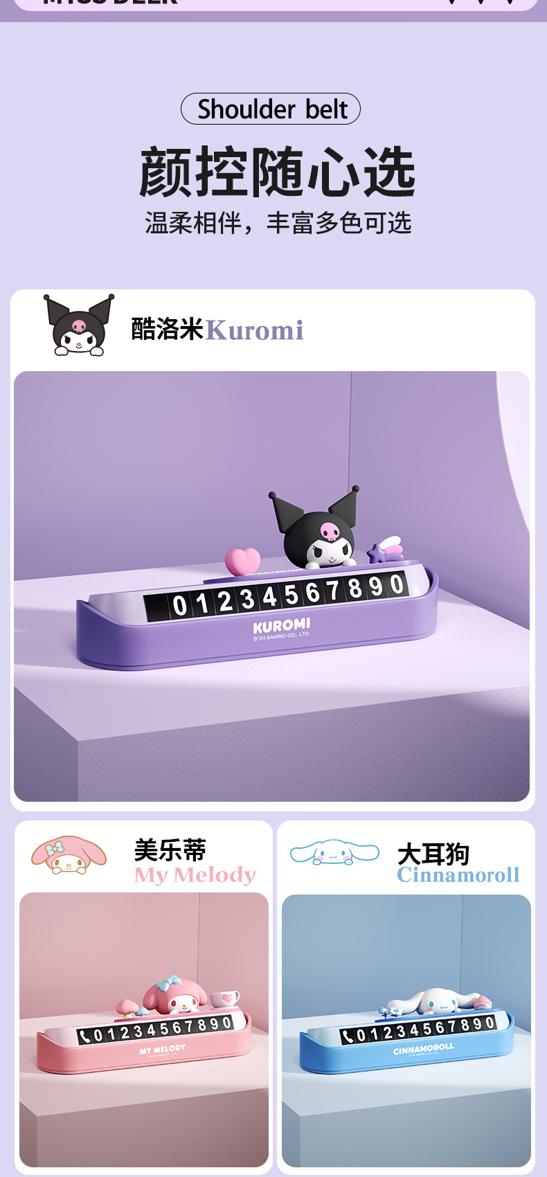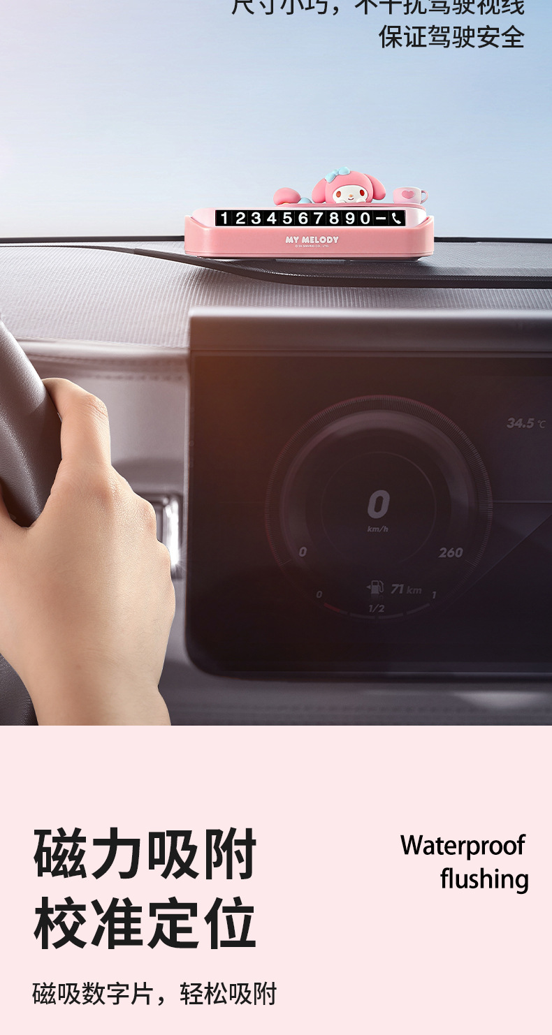산리오 휴대 전화 번호판 임시 주차 번호판 소녀 귀여운 자동차 주차 번호판은 번호판을 움직이기 위해 숨길 수 있습니다스토어 가기