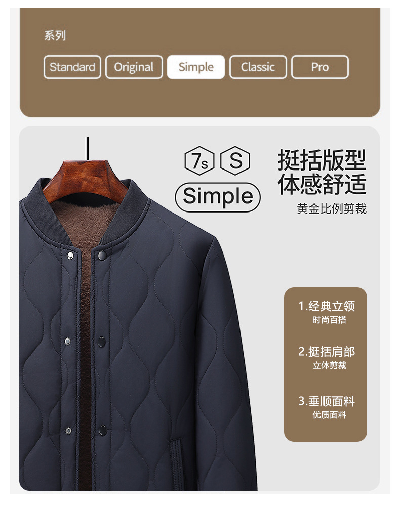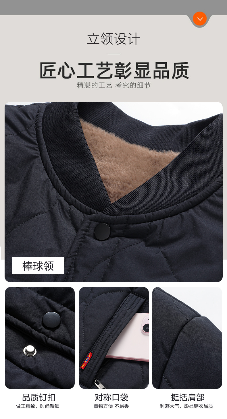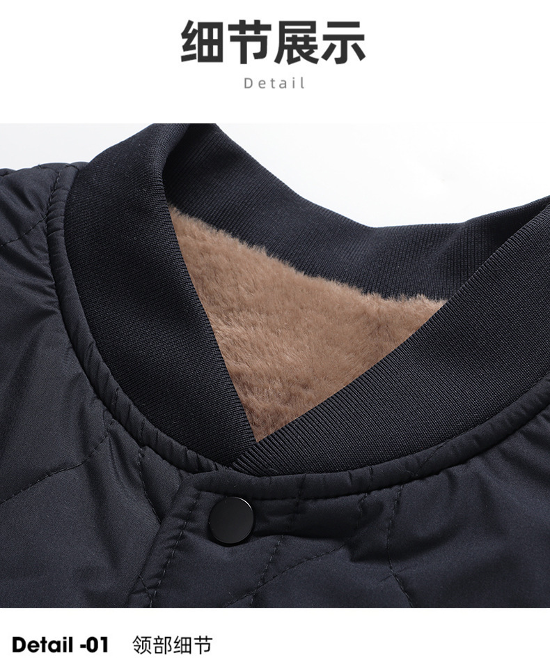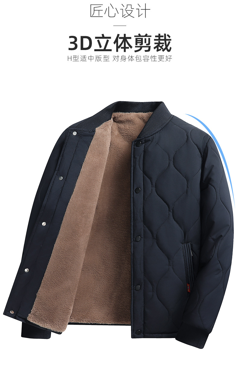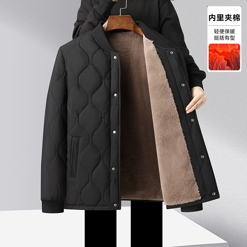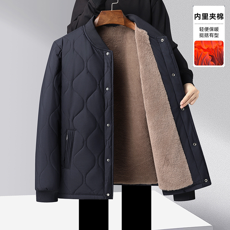 가을과 겨울을위한 코튼 패딩 재킷 남성용 스탠딩 칼라 얇은면 패딩 재킷, 중년 및 노인 60 할아버지의 70 년 된 두꺼운 양고기 양모 면봉 재킷