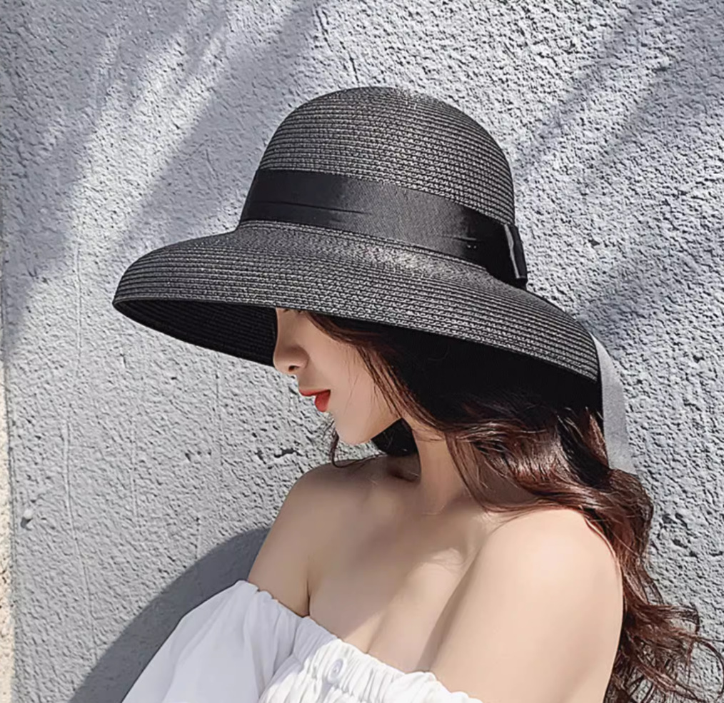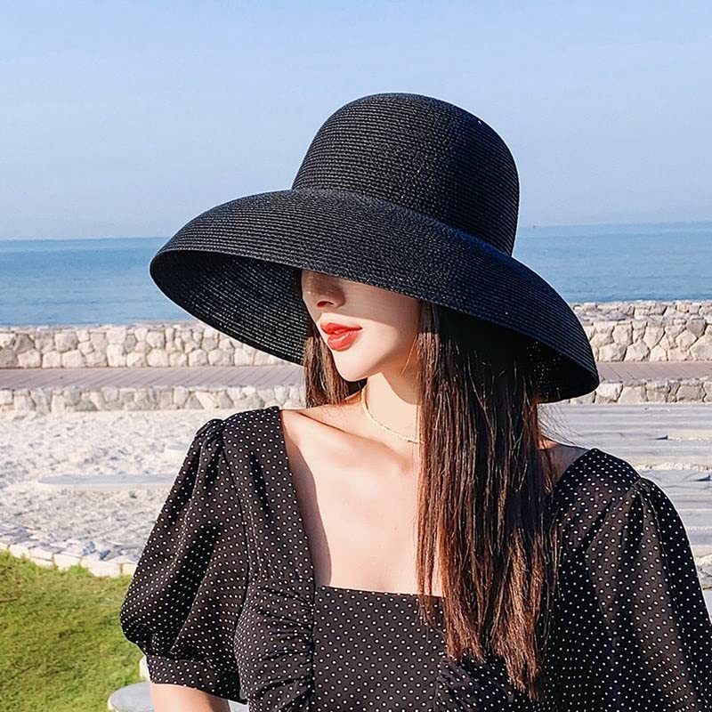 여성 비치 모자 와이드 브림 썬 밀짚 모자 여름 모자 햇빛 여행 접이식 브림 여름 UV 모자