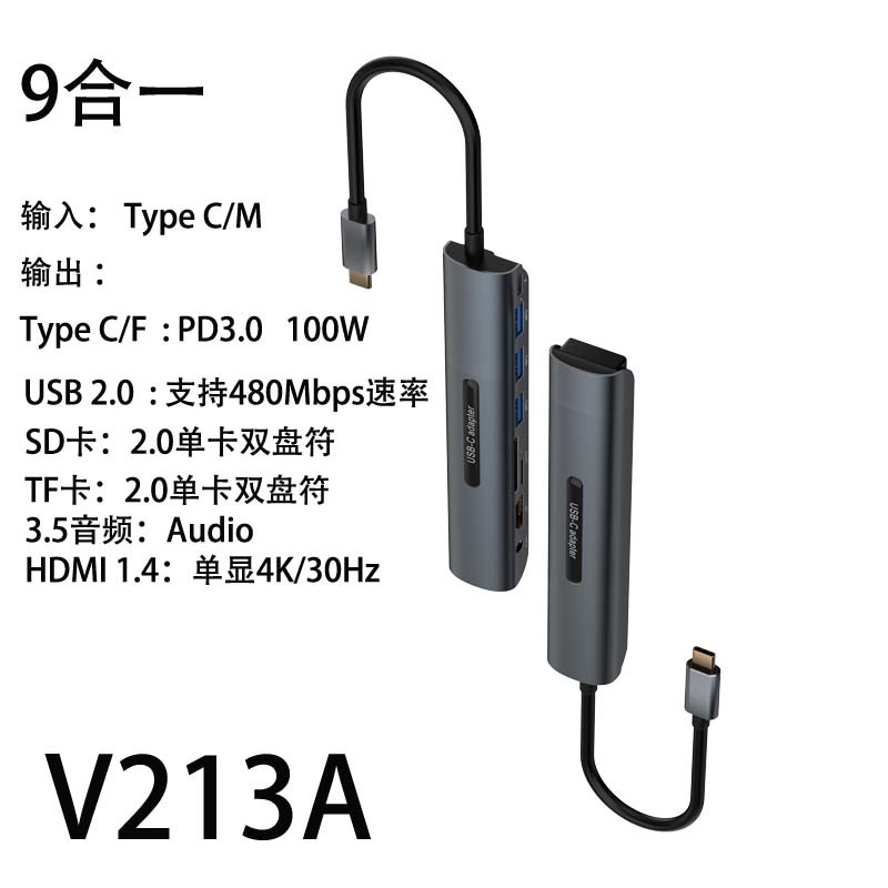 Type-C 확장기 USB3.0 분배기 HDMI 다중 인터페이스 기가비트 네트워크 포트 허브 변환기 AI 확장 도크