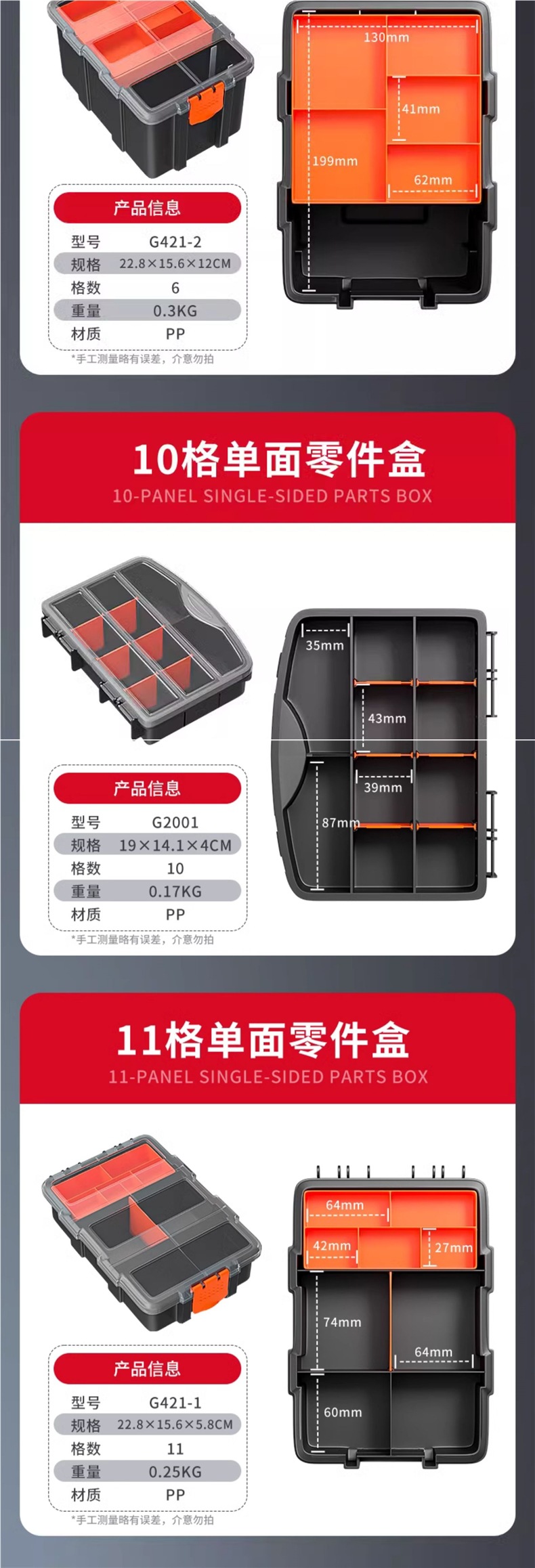 • [업그레이드되고 두꺼워진 11그리드] 단면 부품박스 - 탈부착 가능 - 파손보장