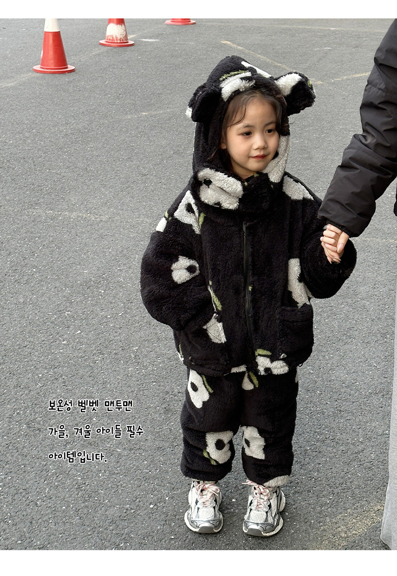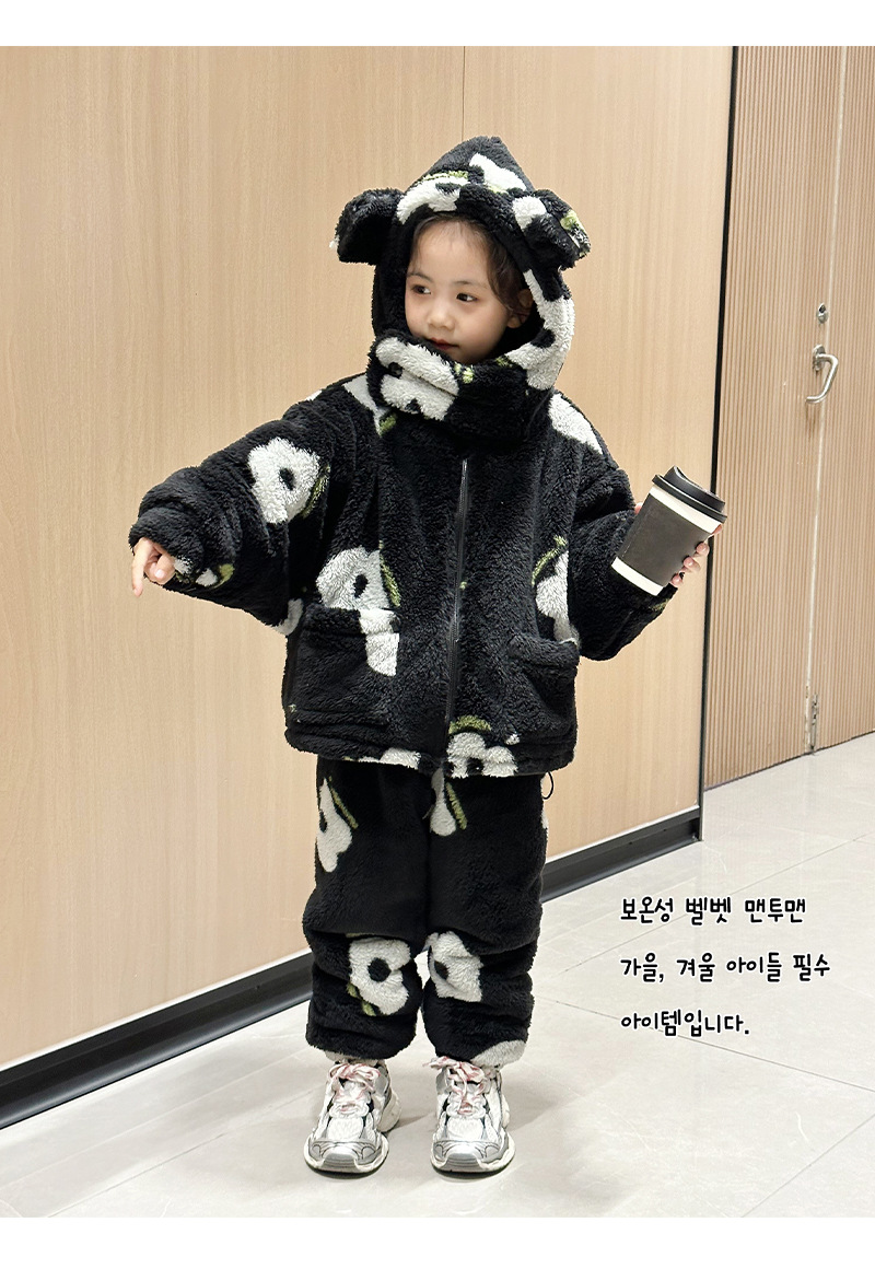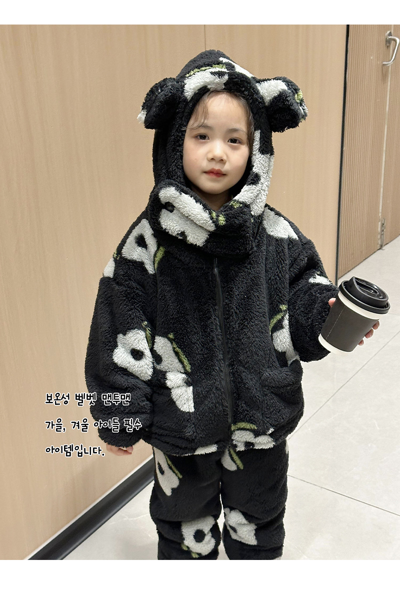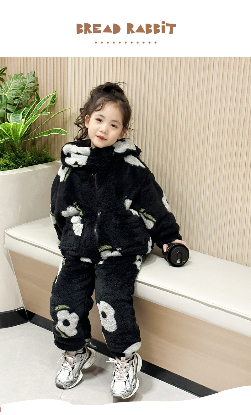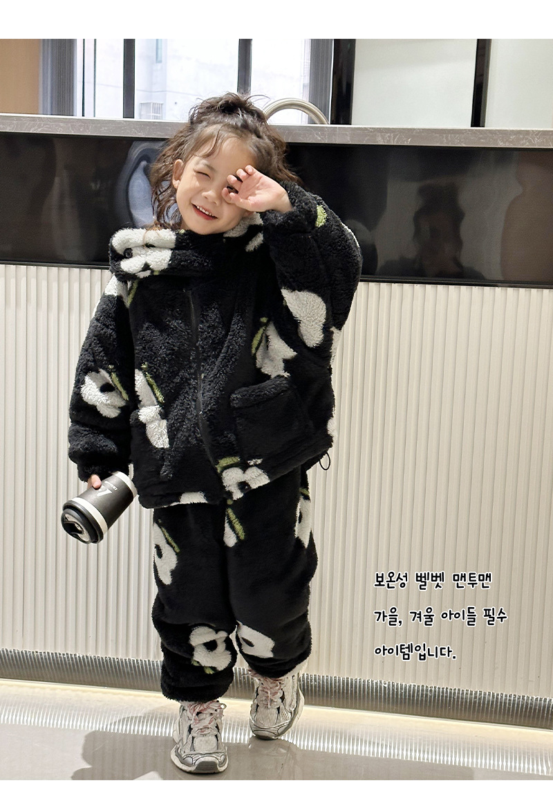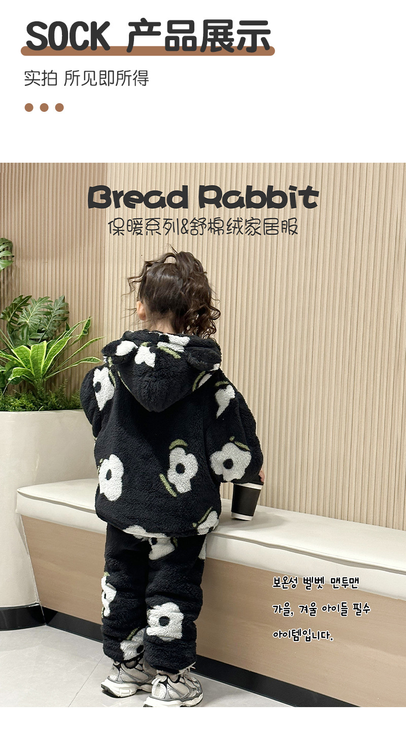 2024 가을과 겨울 흑백 어린이 기모 두꺼운 따뜻한 세트 2 피스 도매 소녀 홈 의류 세트스토어 가기