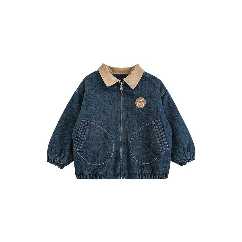 우리부이 남아용 2025 신상 배색 라펠 레트로 데님 재킷 겨울 패션 따뜻한 아동용 상의