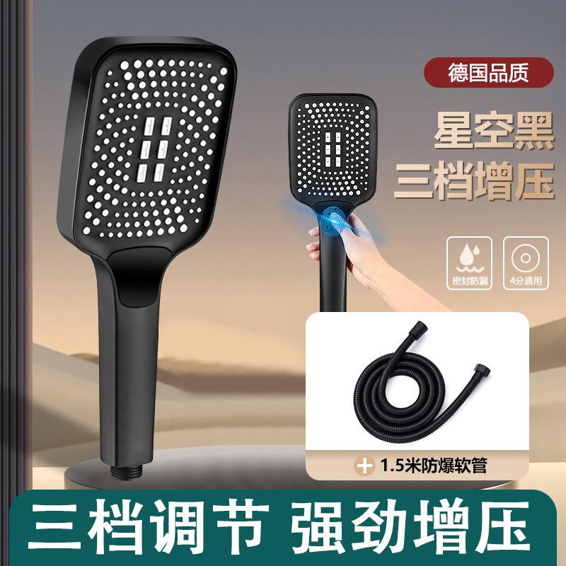 • [스타리 스카이 블랙] 부스터 샤워 - 2m 스테인레스 스틸 호스 - 브래킷